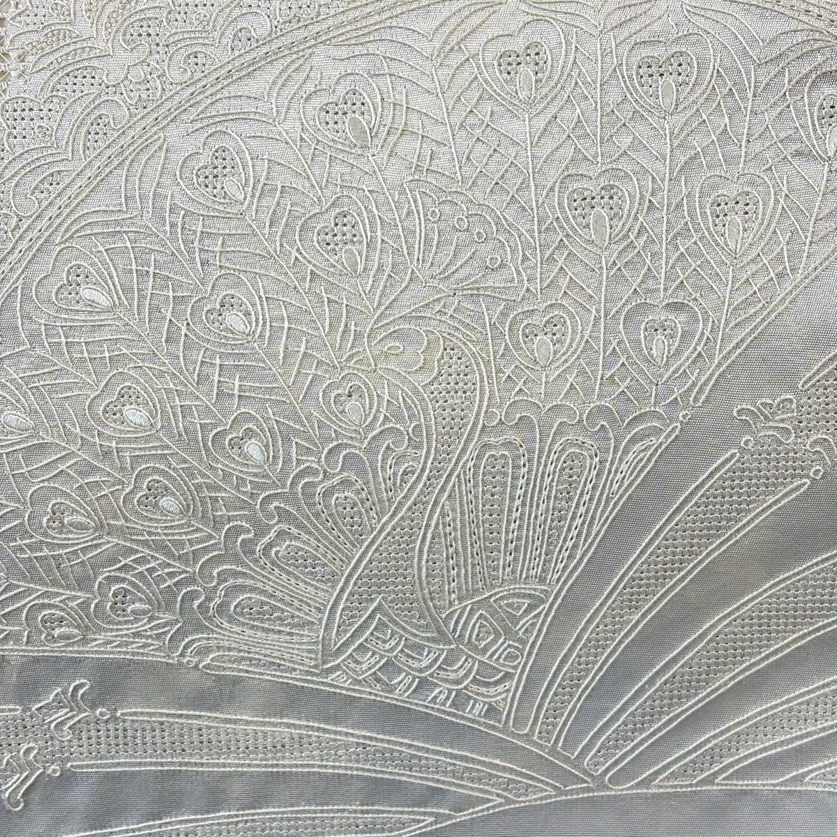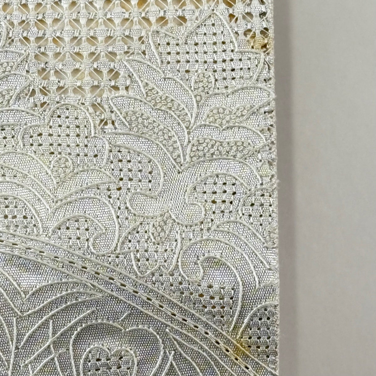 50%OFF 【美品】 袋帯 名品 草花 刺繍 灰白 六通 正絹 K50