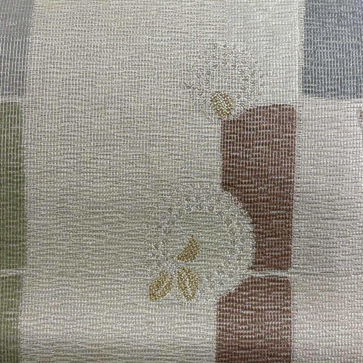 50%OFF 袋帯 名品 本泥染 菱 草花 金糸 箔 灰白 六通 正絹 K50