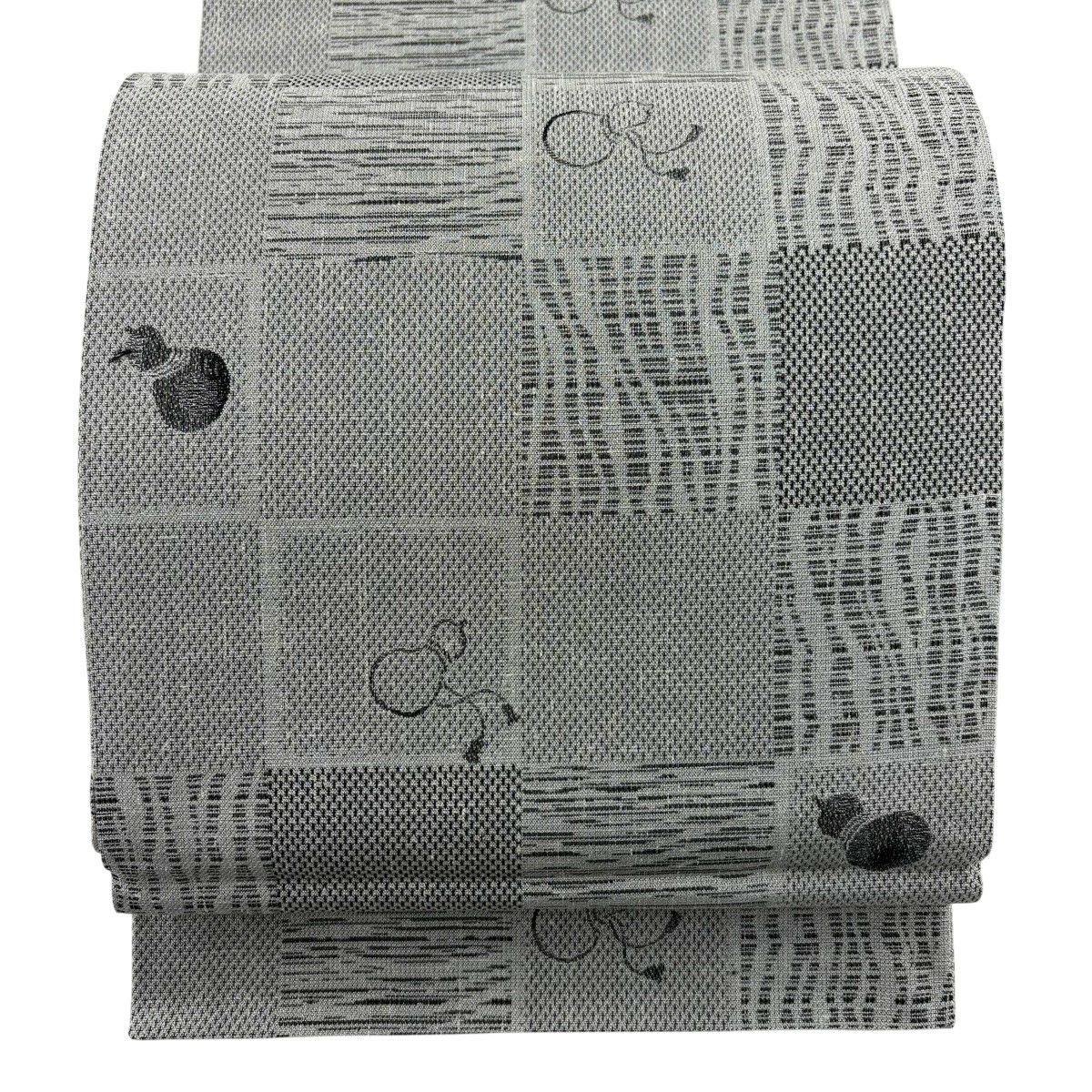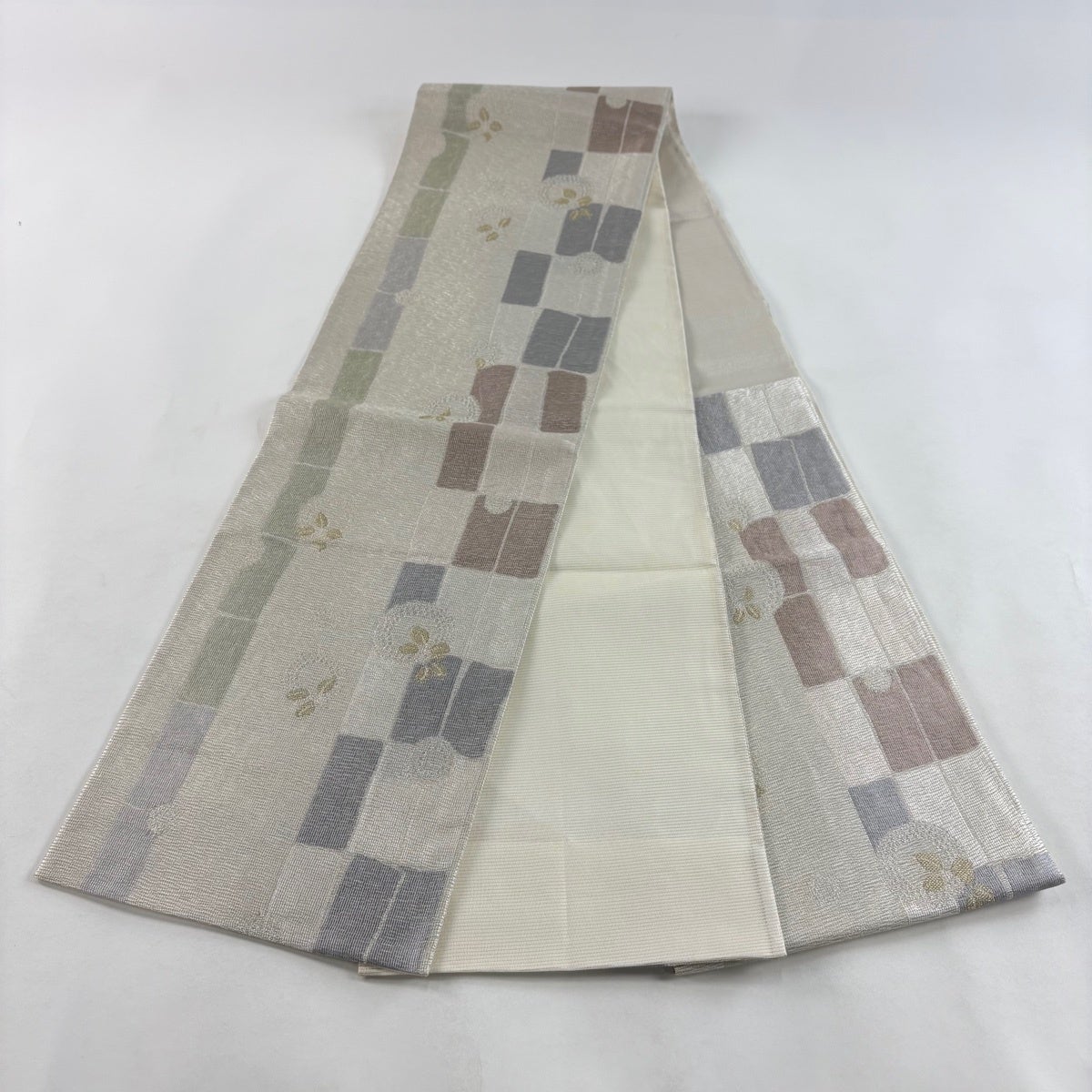 50%OFF 【美品】 袋帯 名品 一蔵 格子 幾何学 灰白 六通 正絹 K50