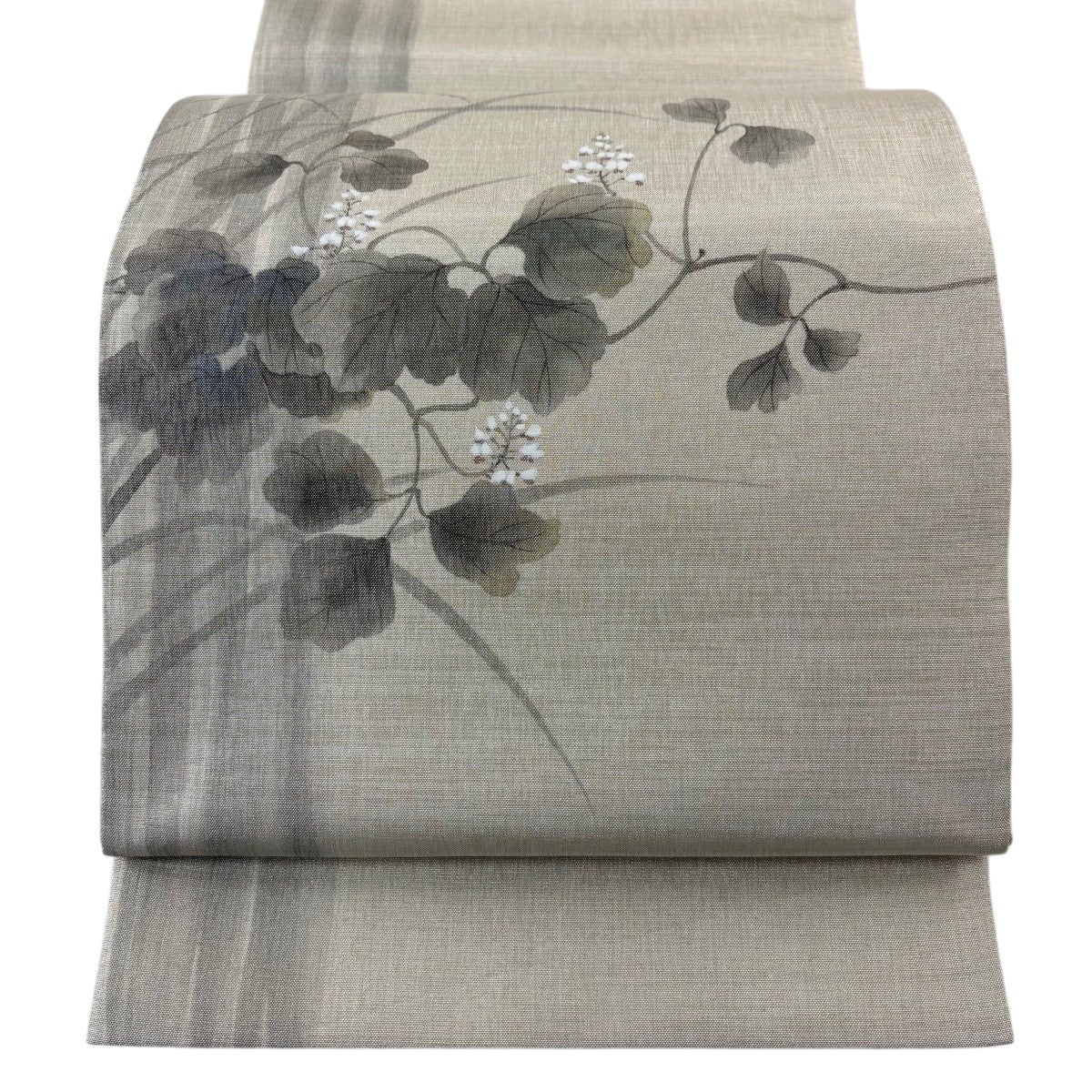 50%OFF 名古屋帯 秀品 夏帯 風景 山並み 銀糸 箔 灰白 正絹 K50