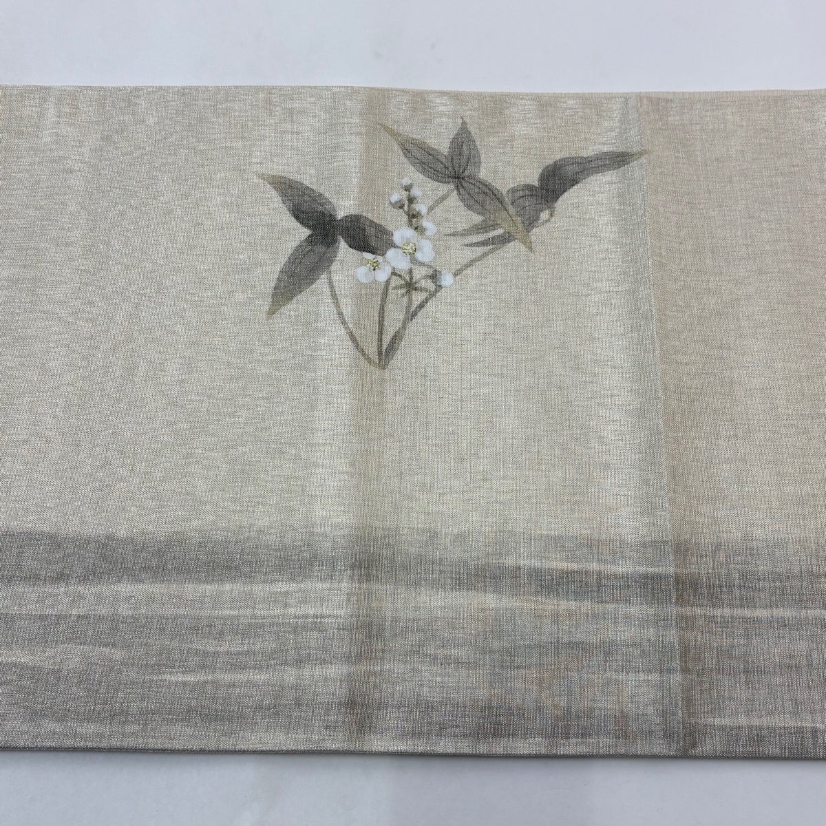 30%OFF 名古屋帯 秀品 夏帯 菖蒲 橋 螺鈿箔 金銀彩 灰白 正絹 K30