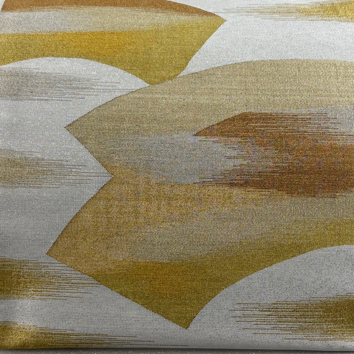 30%OFF 【美品】 袋帯 名品 縞 幾何学 金糸 灰白 全通 正絹 K30