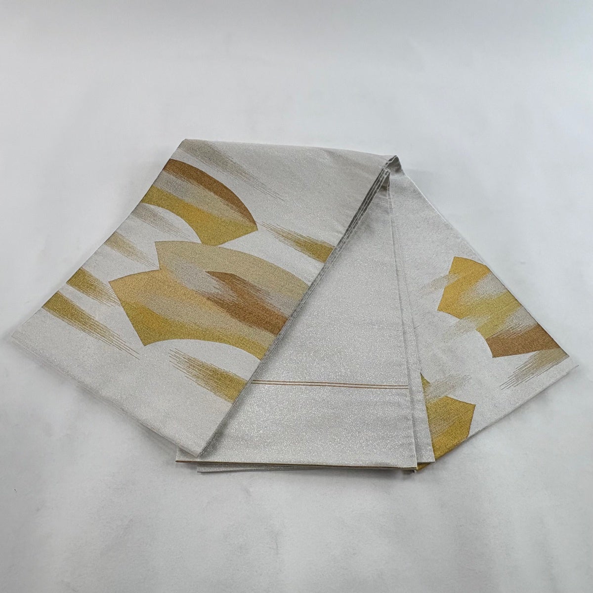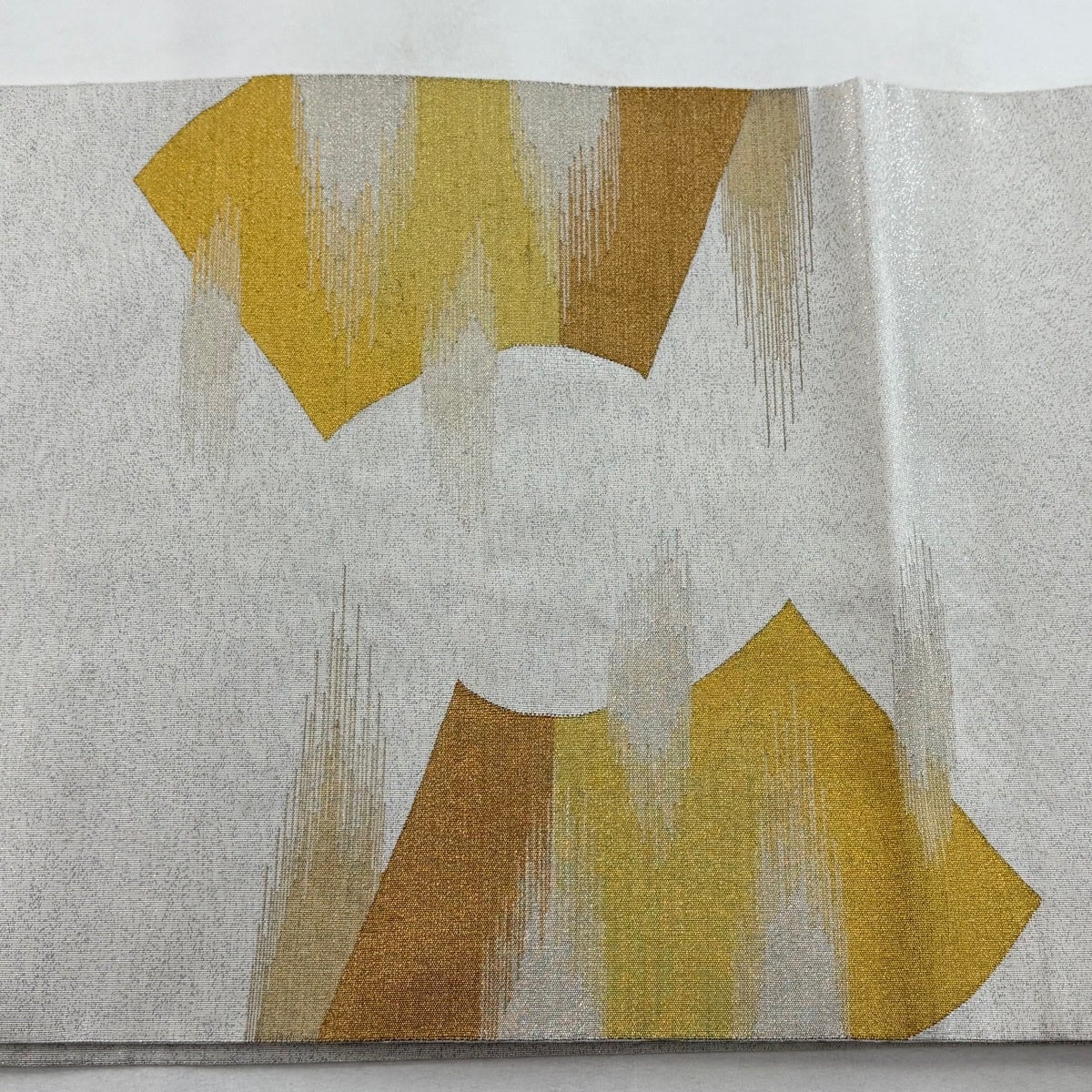 50%OFF 袋帯 秀品 縞 幾何学模様 金糸 灰白 お太鼓柄 正絹 K50