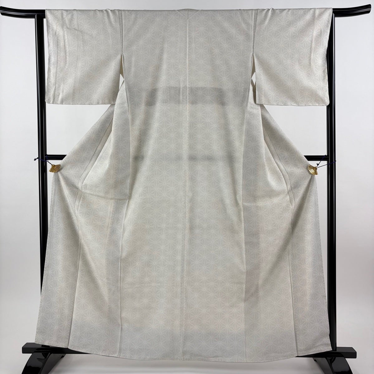 【美品】 塩沢紬 身丈162.5cm 裄丈63.5cm S 袷 塩沢絣 証紙あり 麻の葉 亀甲絣 灰白 正絹 名品