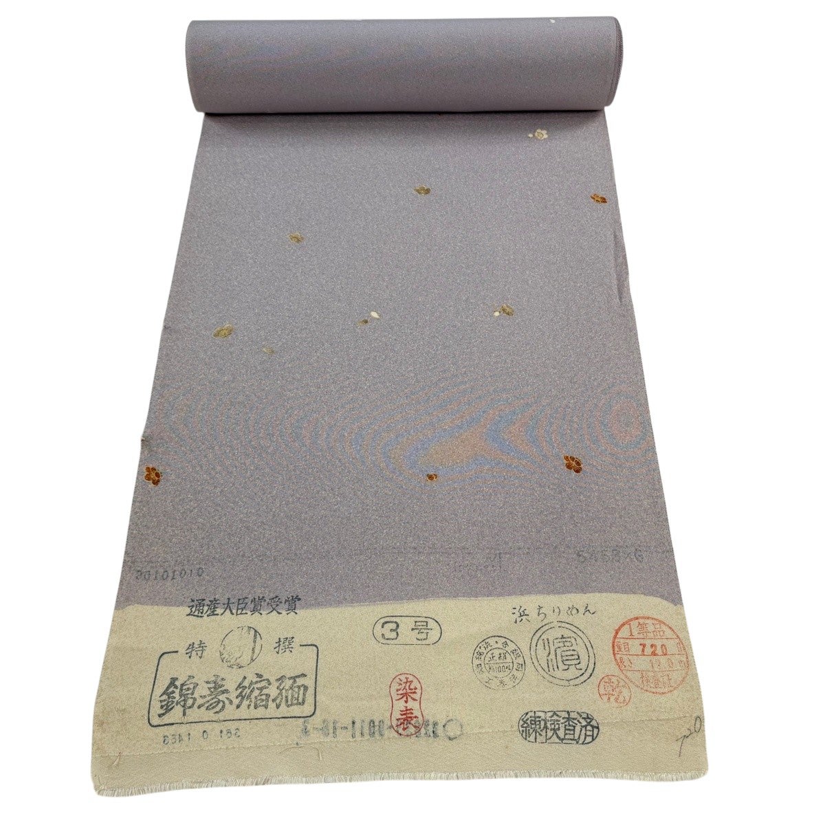 反物 秀品 色無地 地紋 縮緬 灰紫 正絹