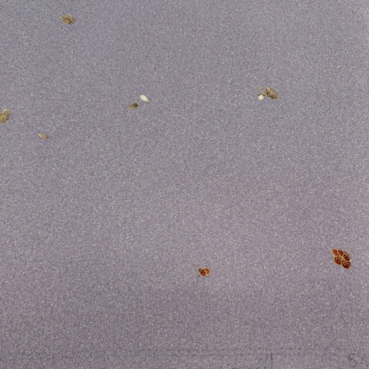 反物 秀品 紬 証紙 草花 垣根 灰紫 正絹