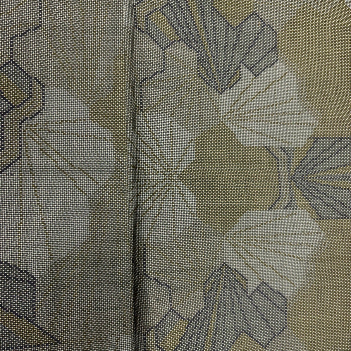 袋帯 秀品 ワンポイント柄 幾何学模様 螺鈿 金彩 灰緑 全通 正絹