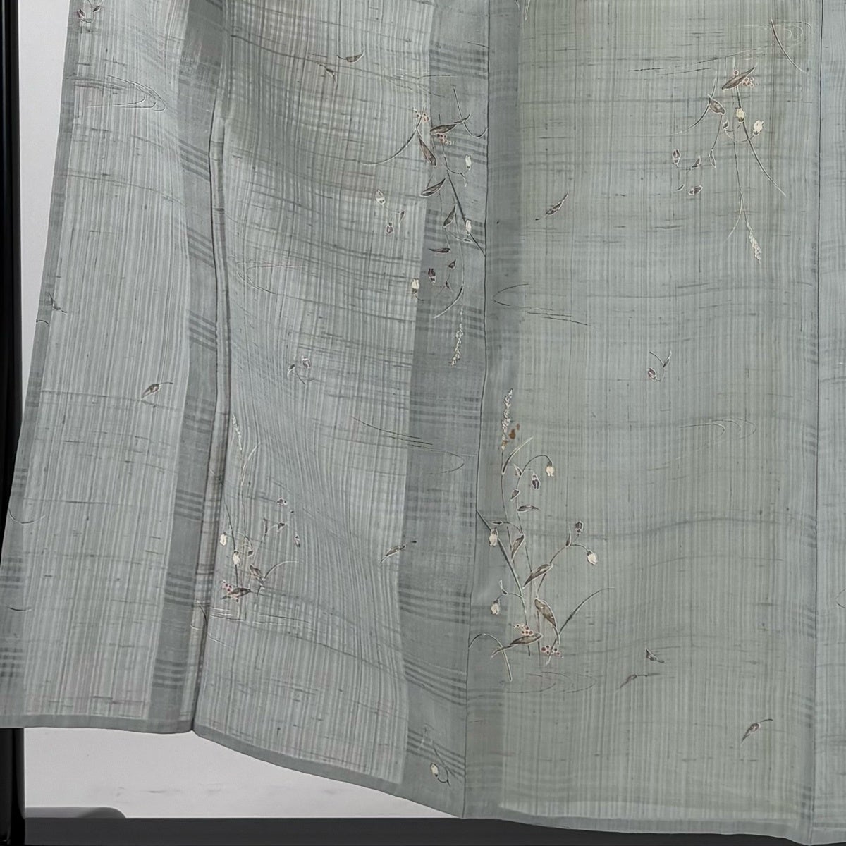 付下げ 身丈160cm 裄丈65cm M 袷 紬地 草花 ぼかし 灰緑 正絹 優品