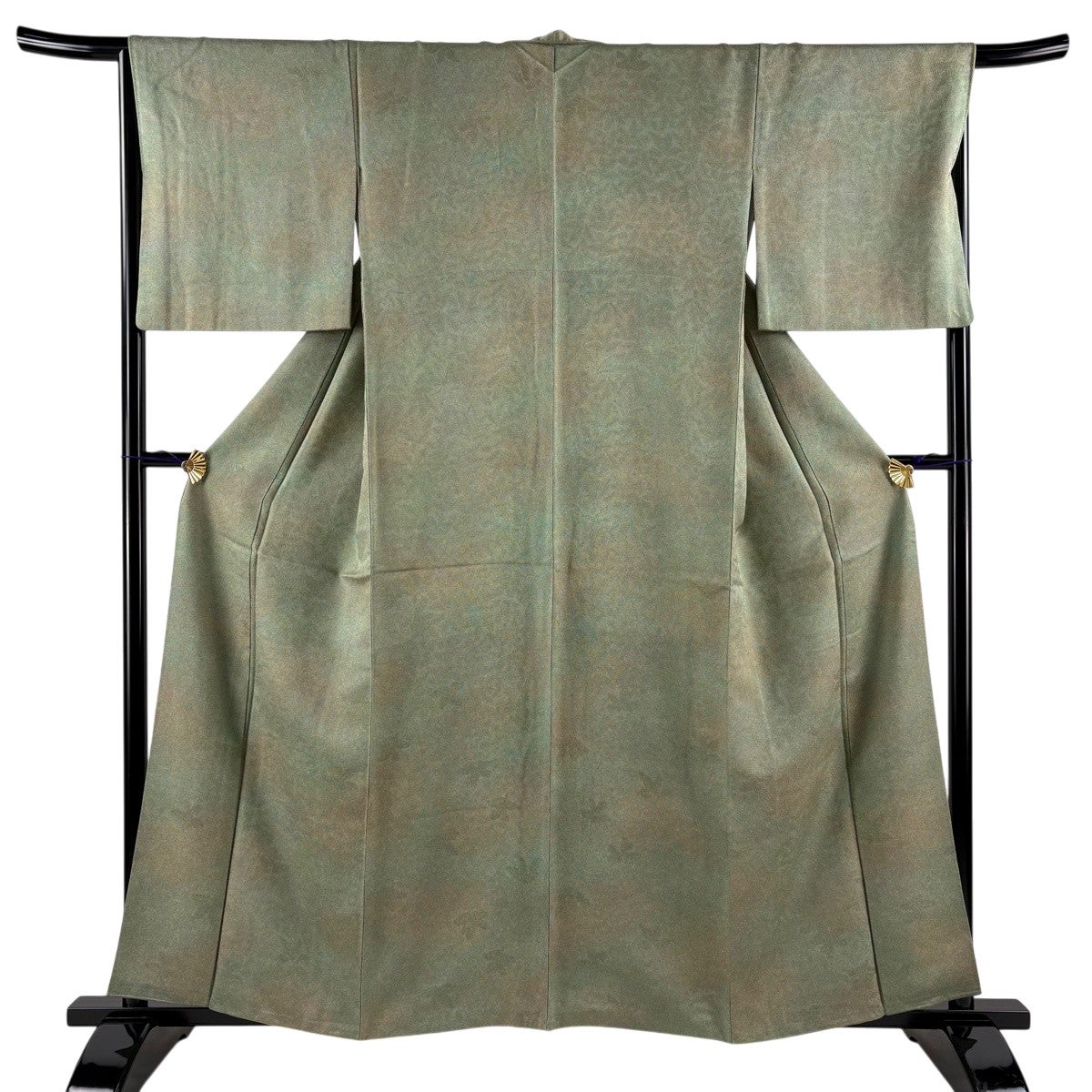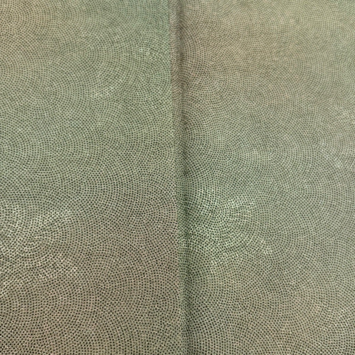 小紋 身丈160.5cm 裄丈68cm L 袷 地紋 ぼかし 灰緑 正絹 秀品 一つ紋