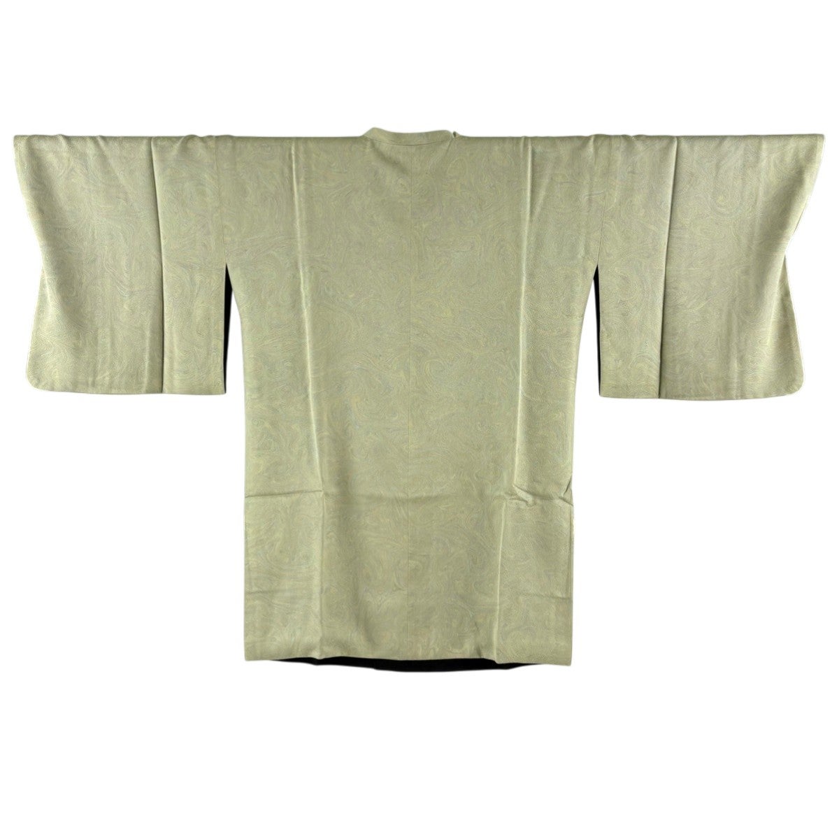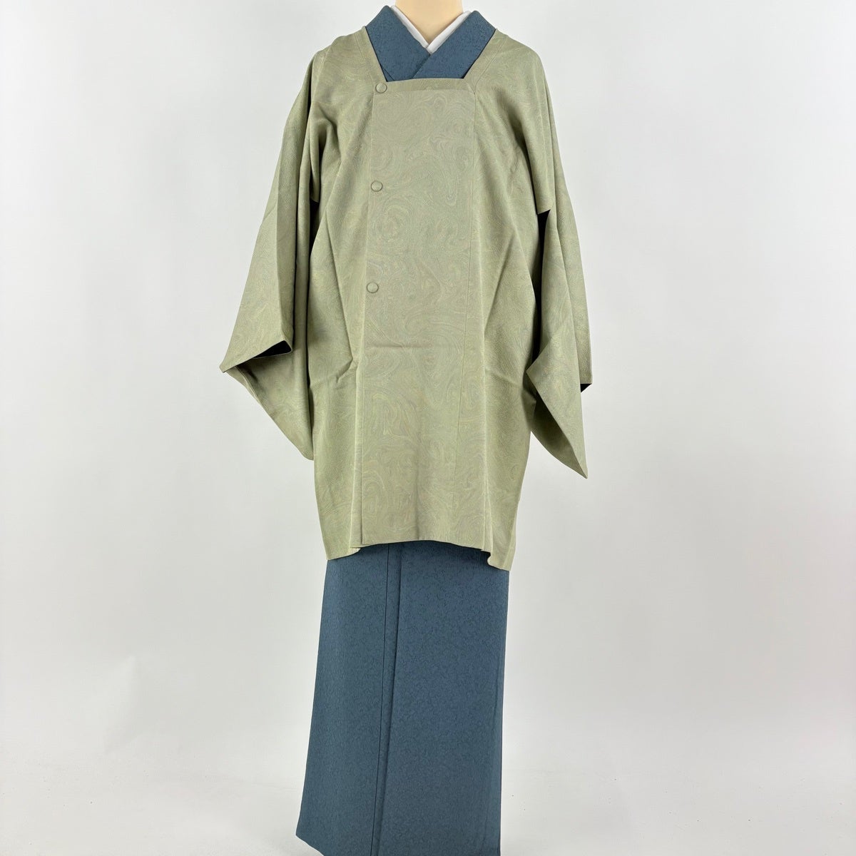 【美品】 道中着 身丈105.5cm 裄丈68cm L 和装コート 幾何学模様 灰緑 正絹 逸品