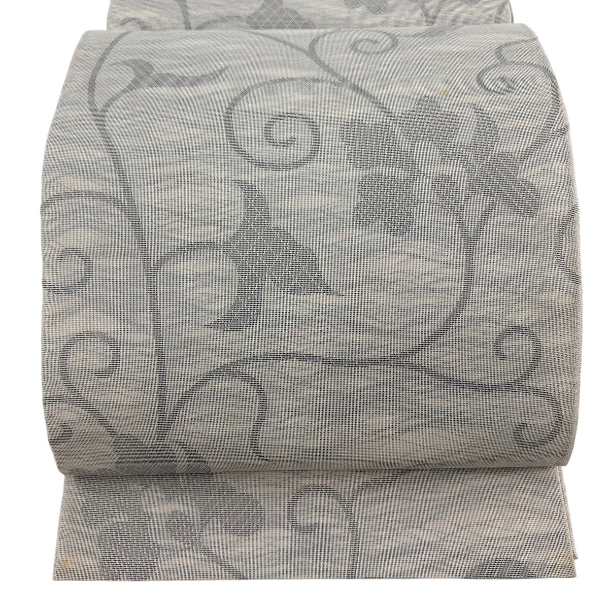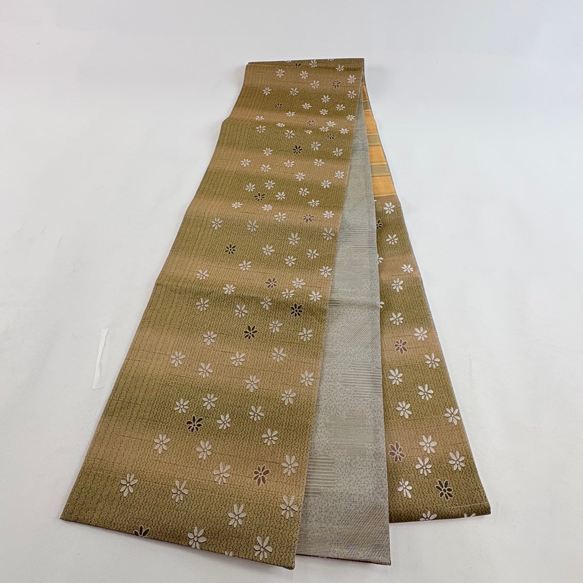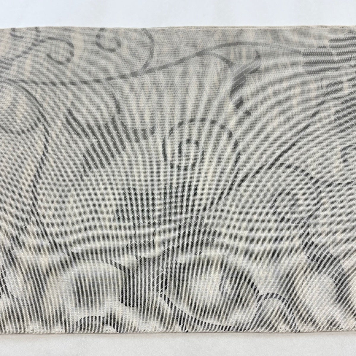 袋帯 秀品 織悦 落款あり 夏帯 花唐草 灰茶 全通 正絹