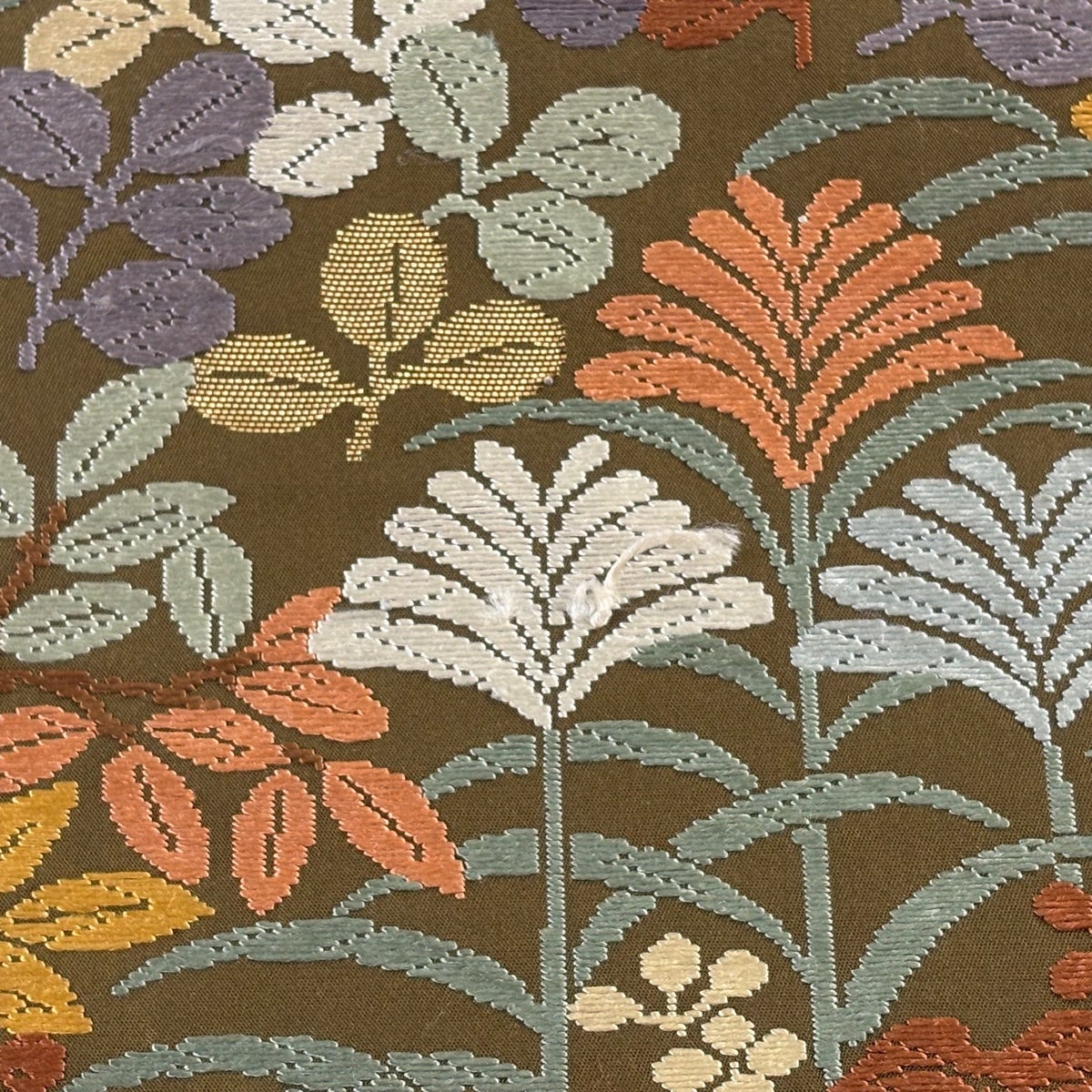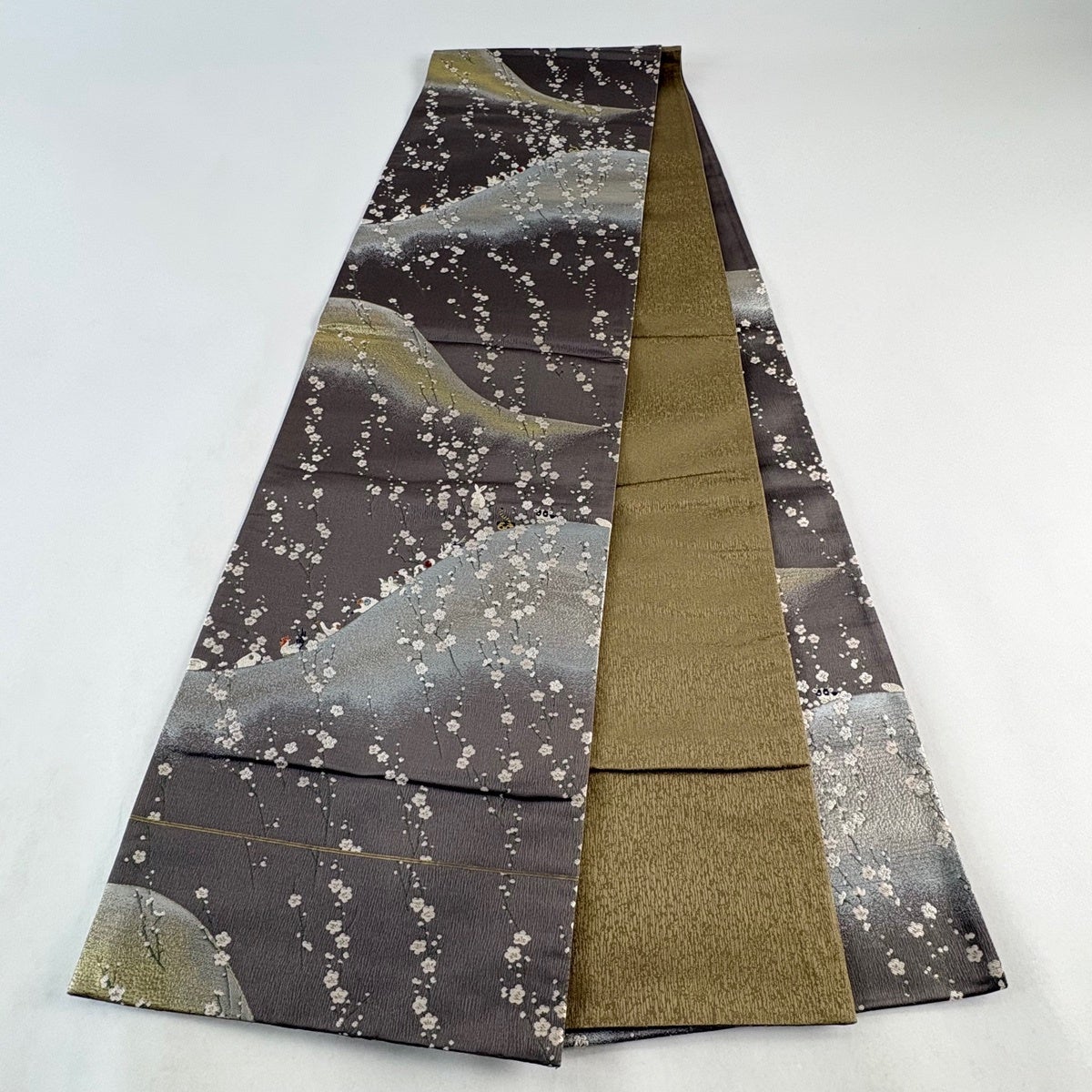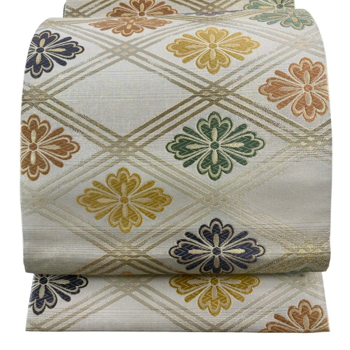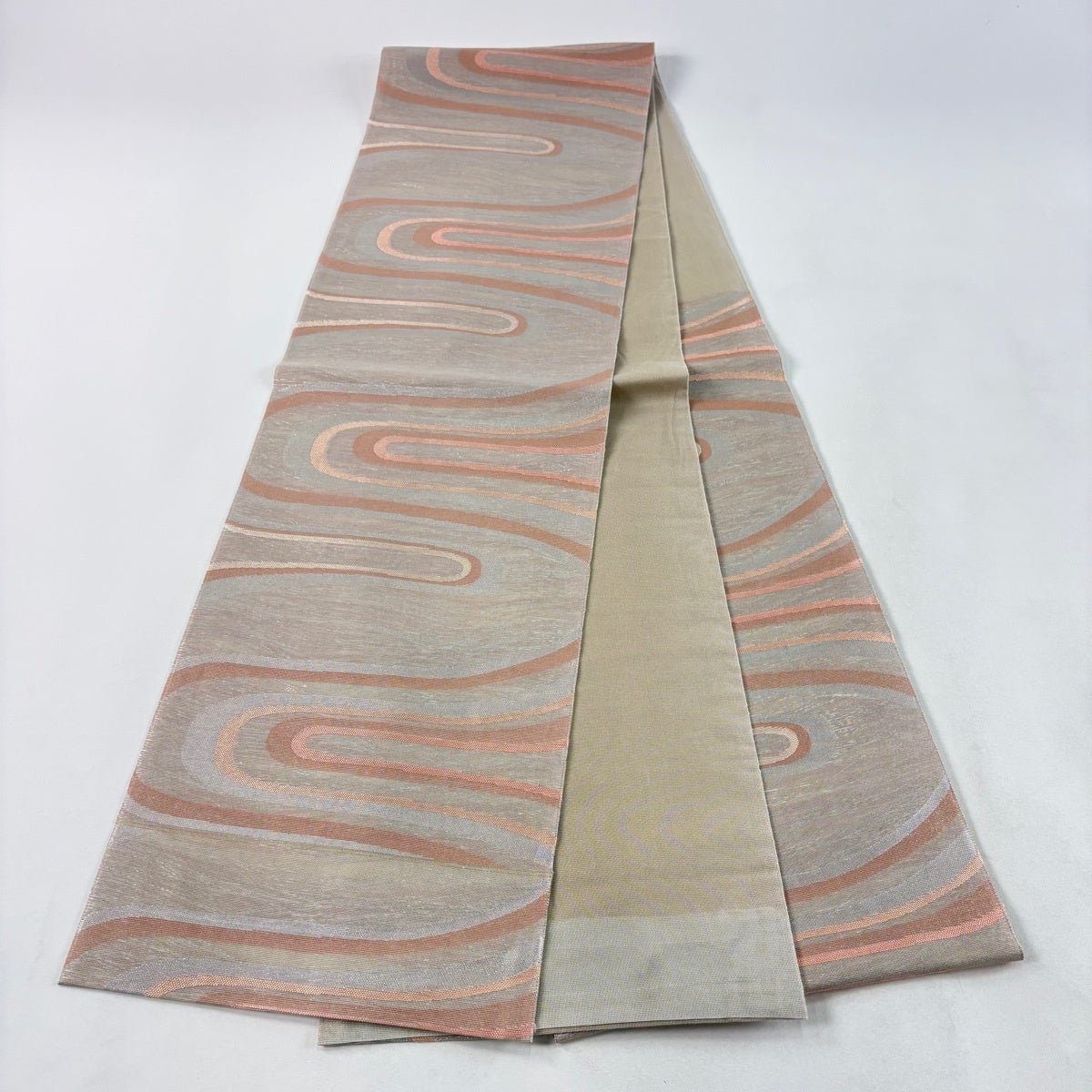 袋帯 秀品 織悦 落款あり 夏帯 花唐草 灰茶 全通 正絹