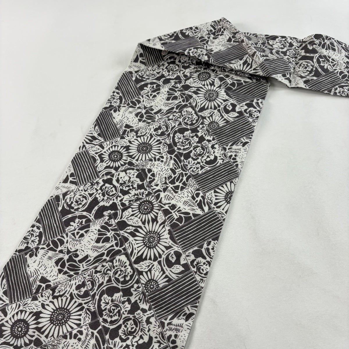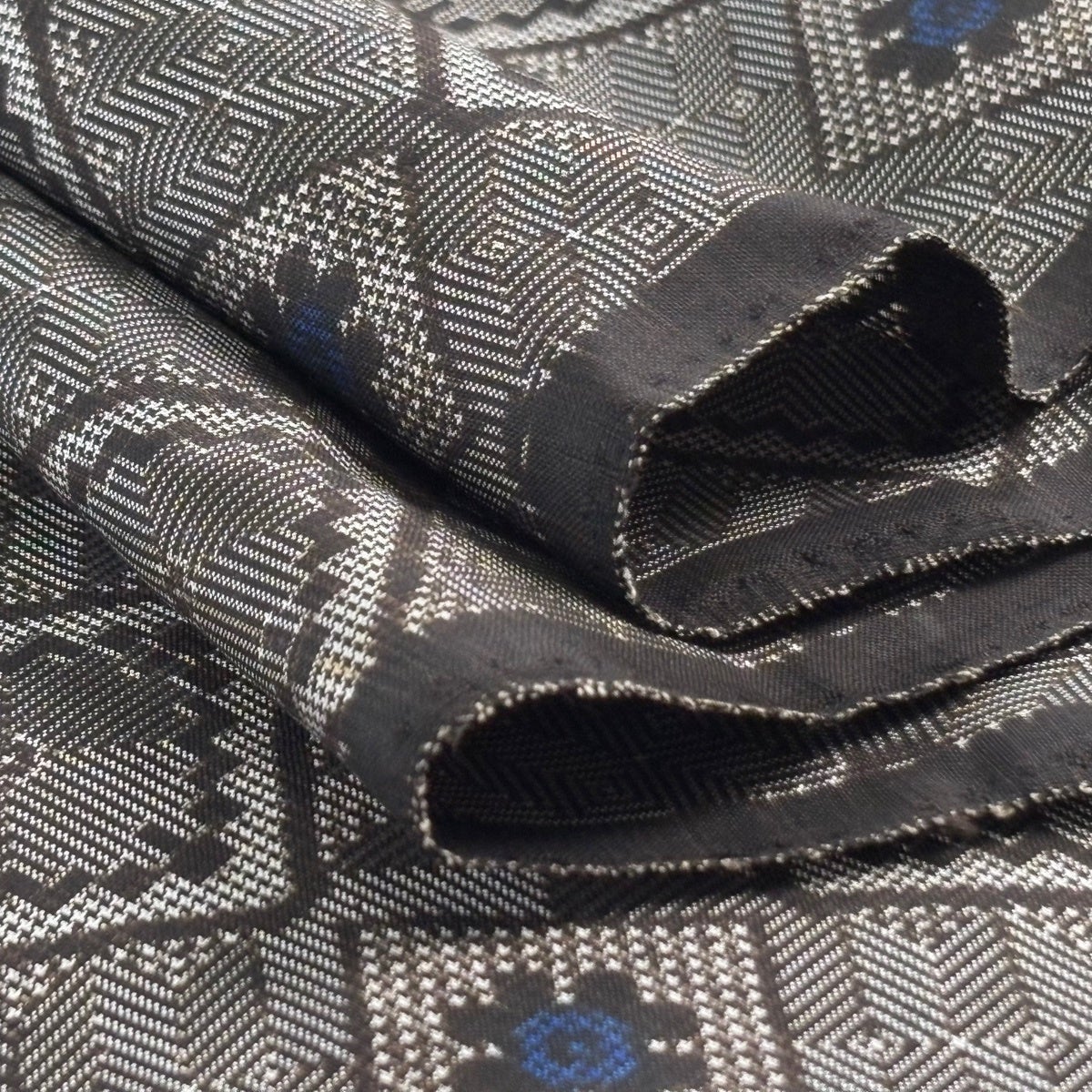 50%OFF 反物 秀品 紬 幾何学 灰茶 正絹 K50