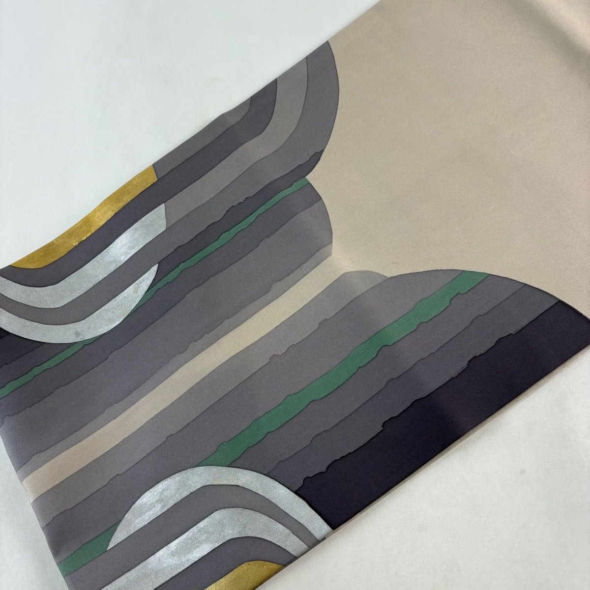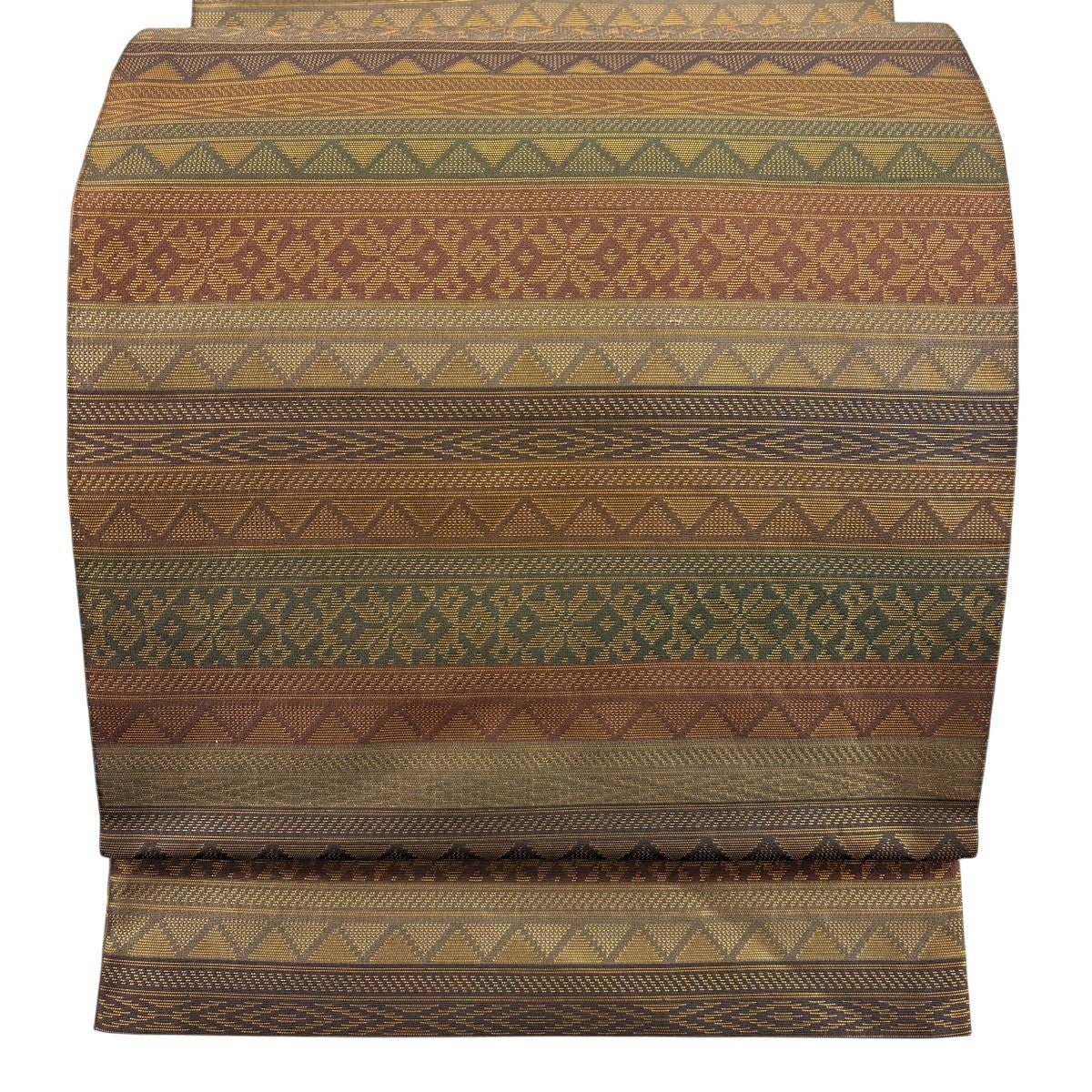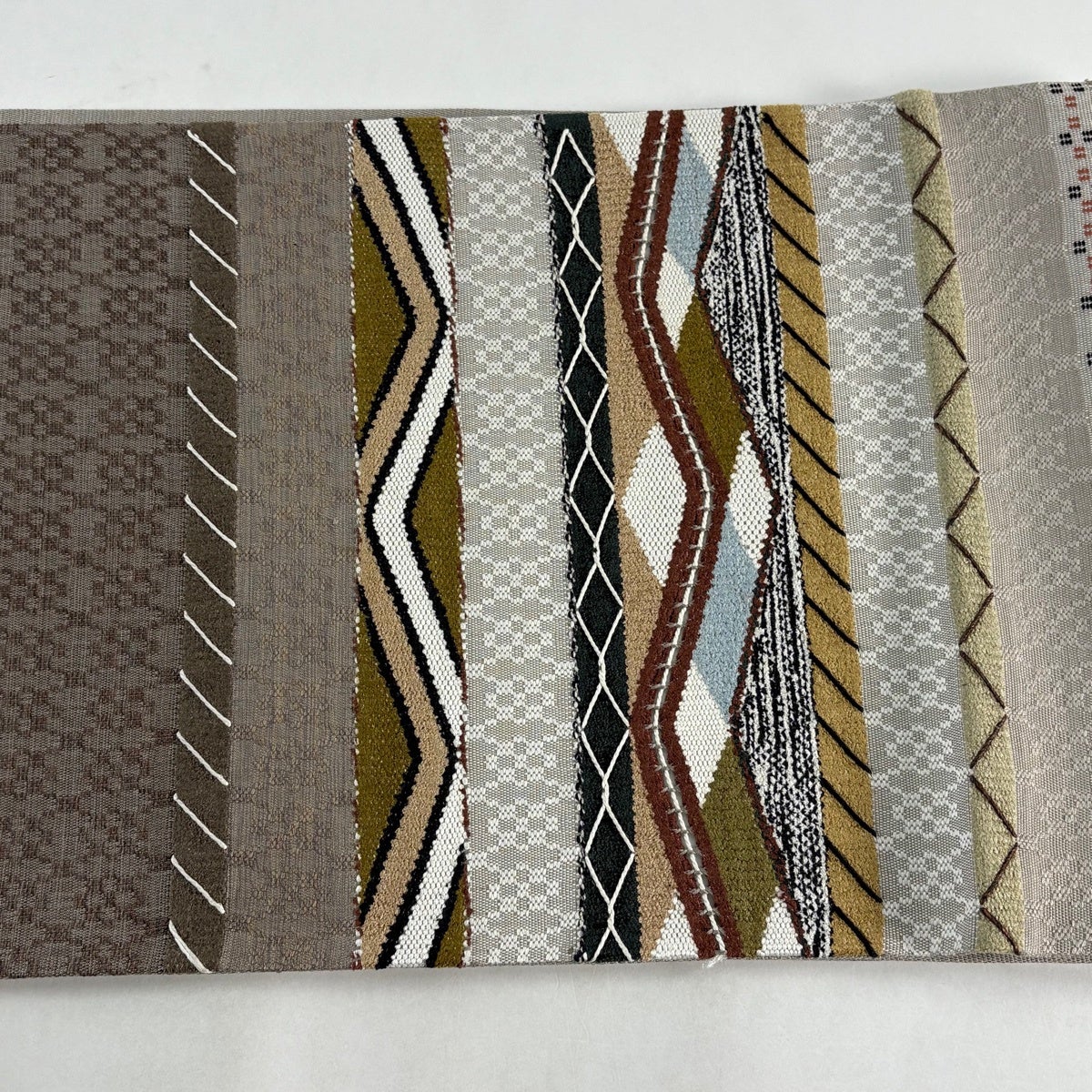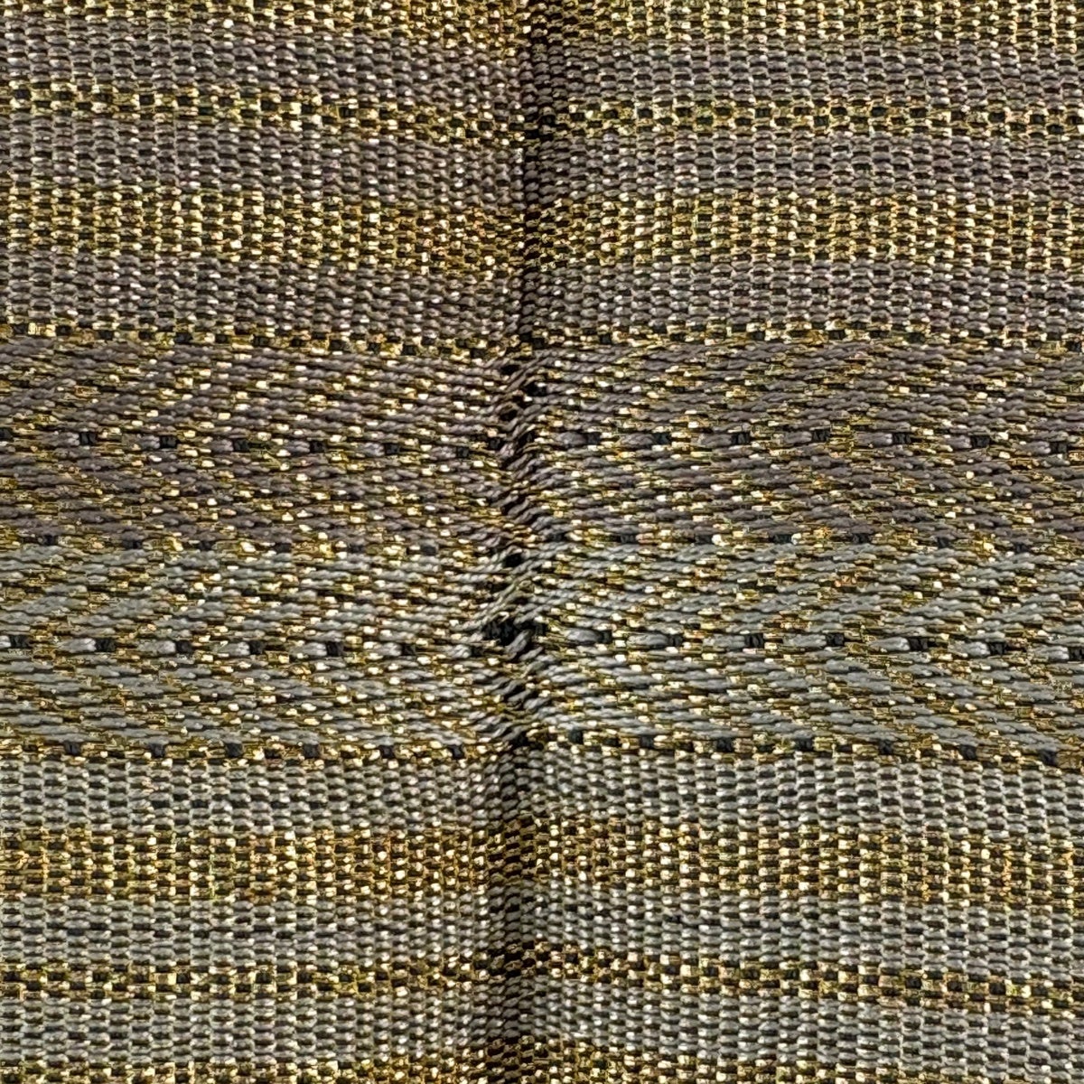 【美品】 袋帯 秀品 紬地 幾何学模様 灰茶 全通 正絹