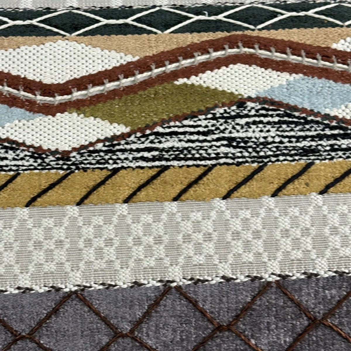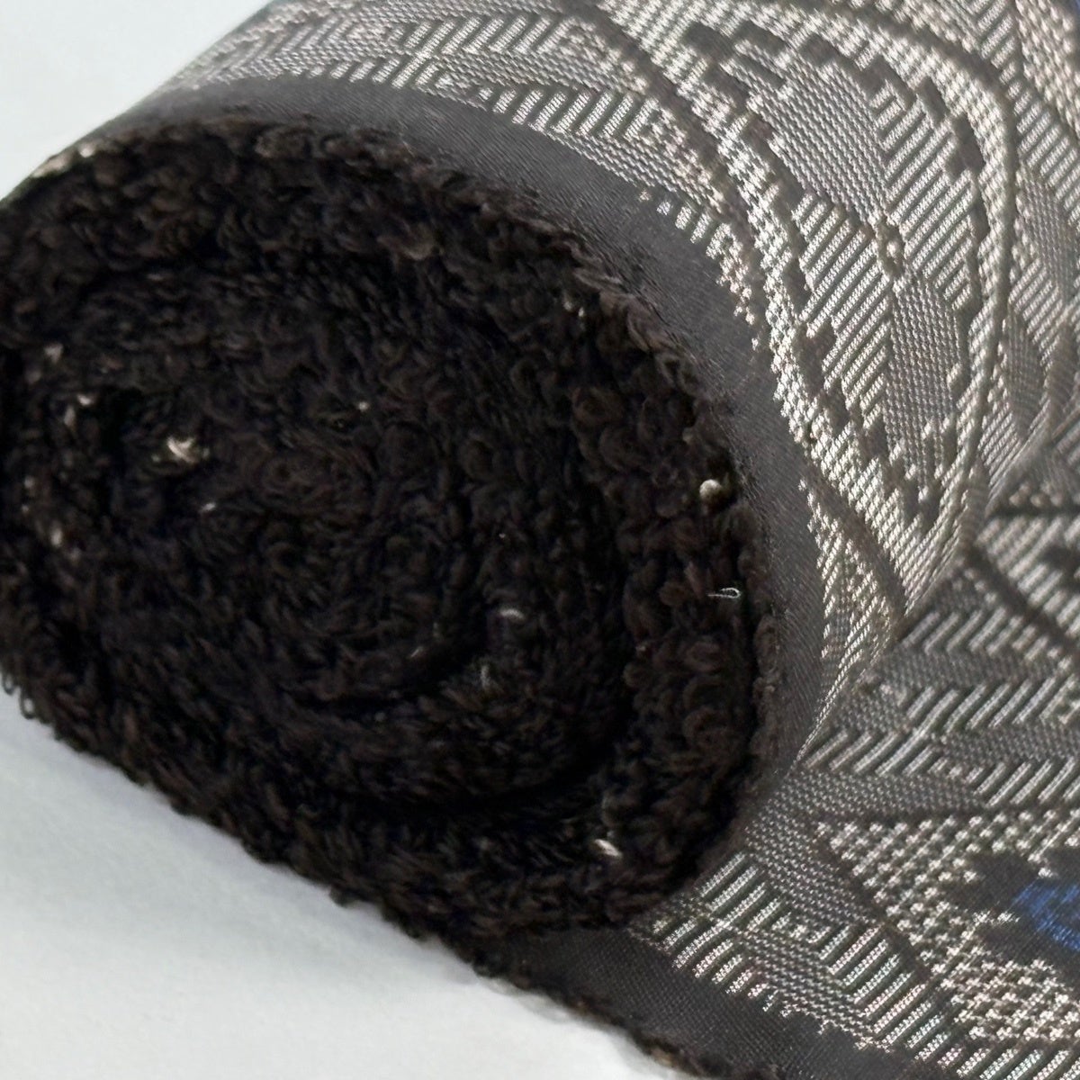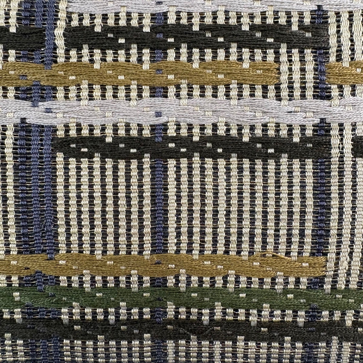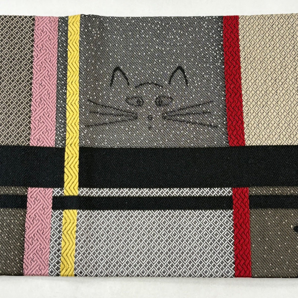 【美品】 袋帯 秀品 紬地 幾何学模様 灰茶 全通 正絹