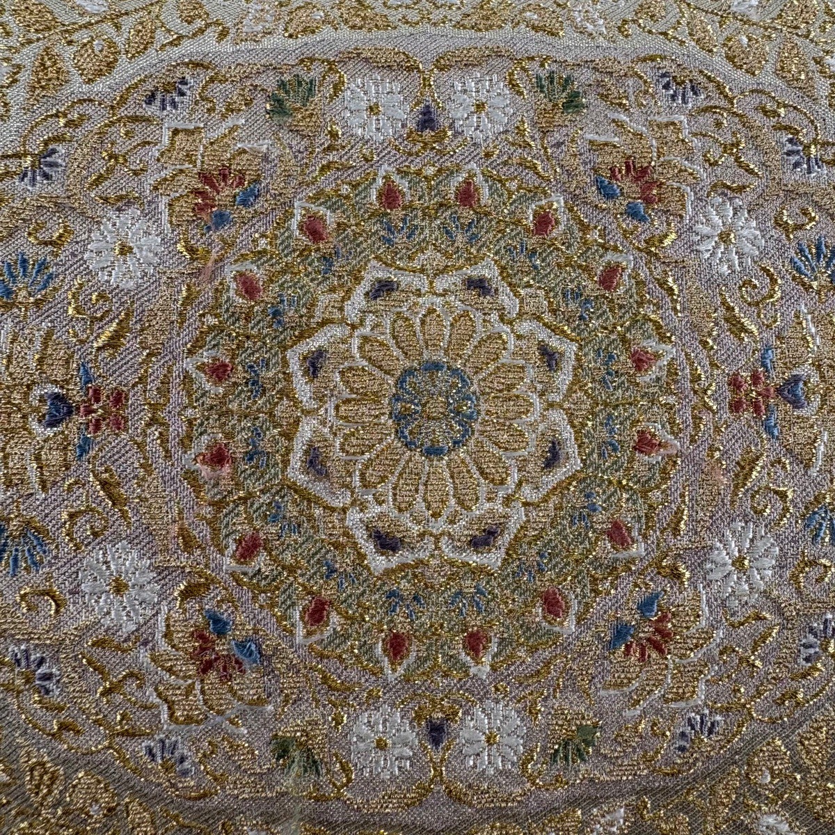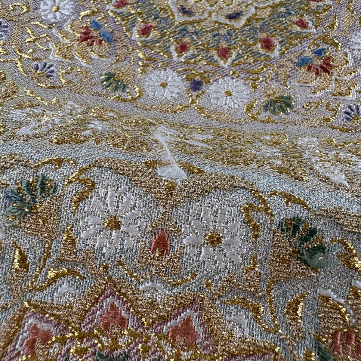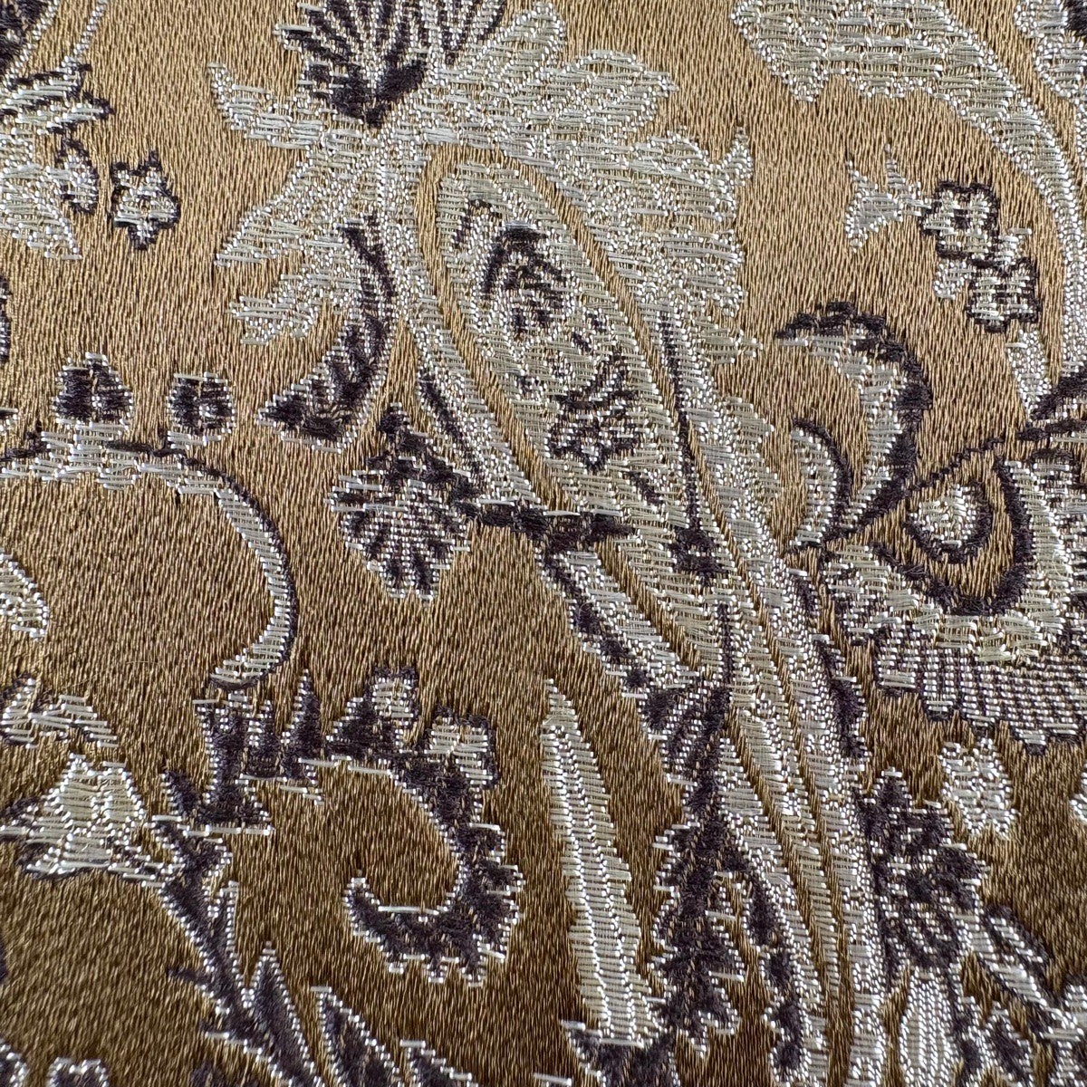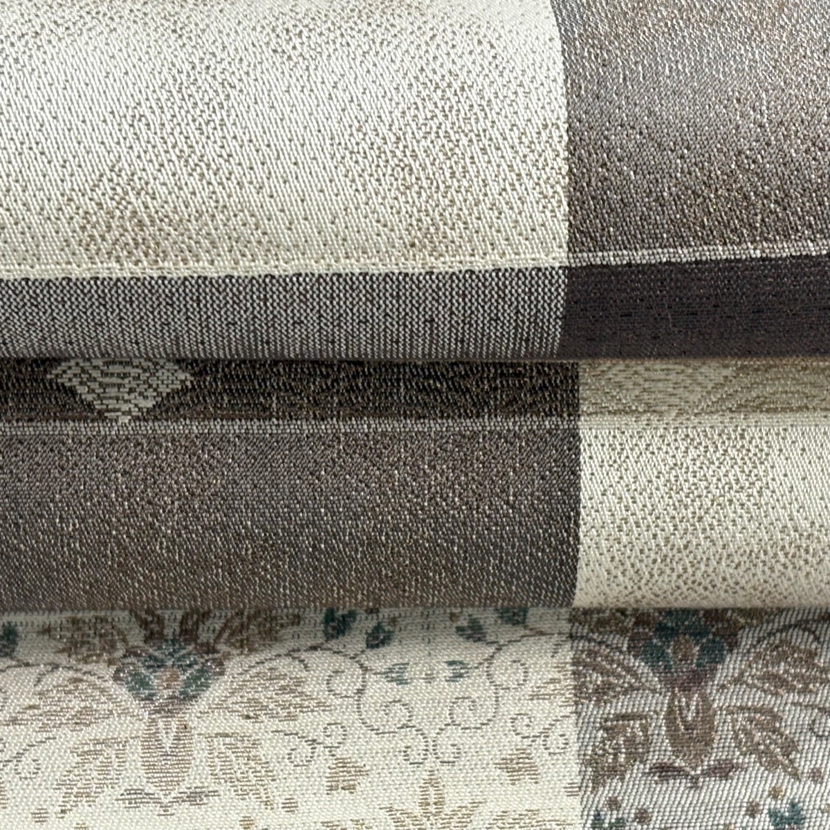 袋帯 秀品 花寿彩映文 金糸 ラメ糸 灰茶 六通 正絹