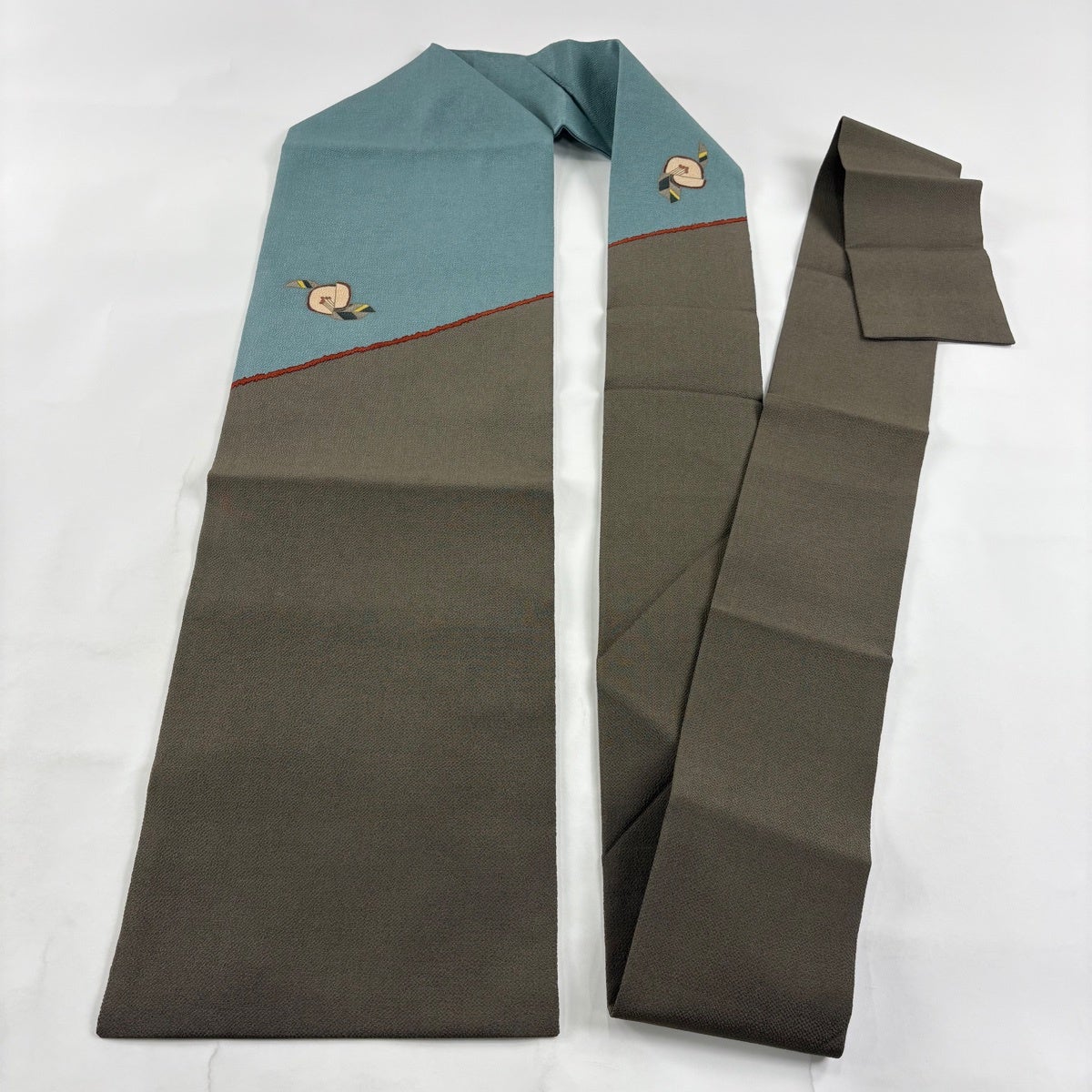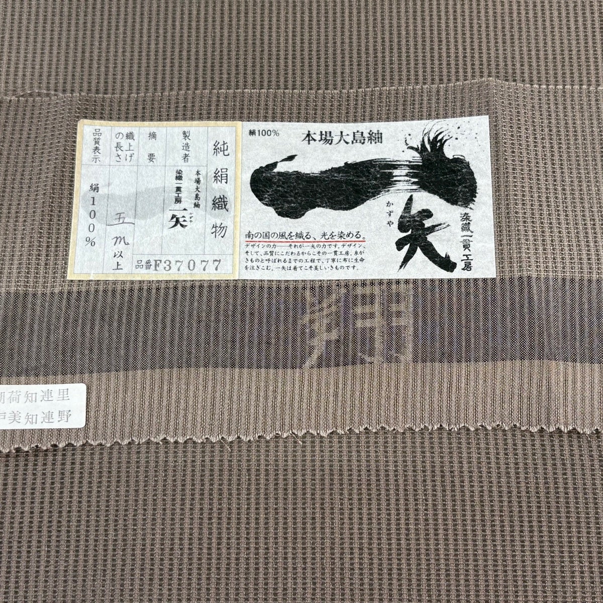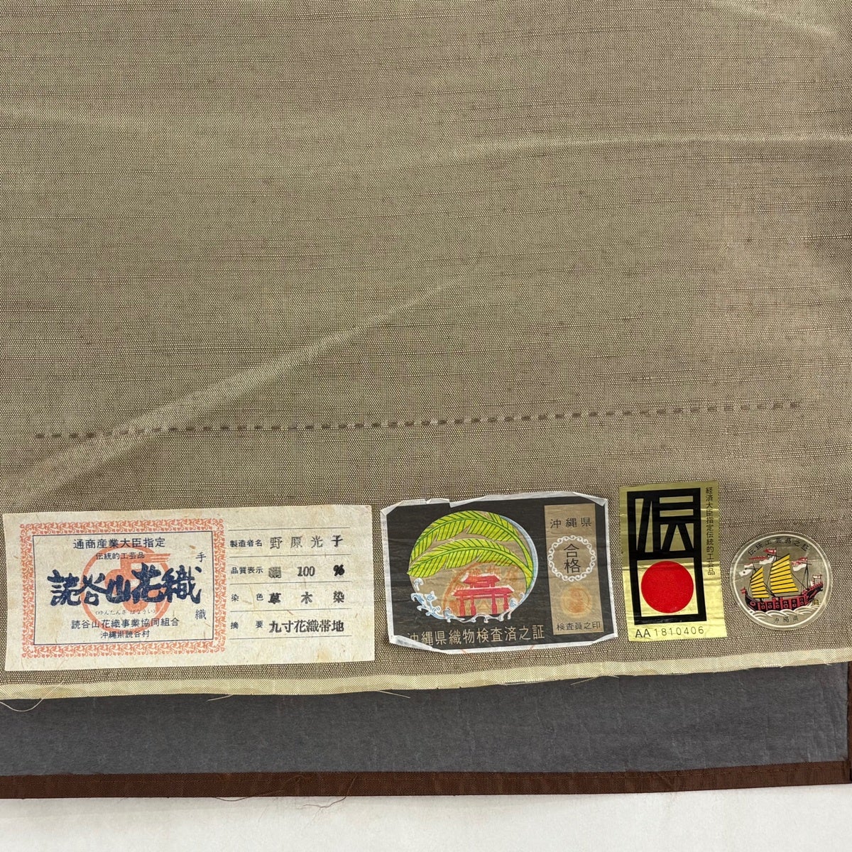 反物 逸品 帯反物 読谷山花織 証紙 琉球染織 灰茶 正絹