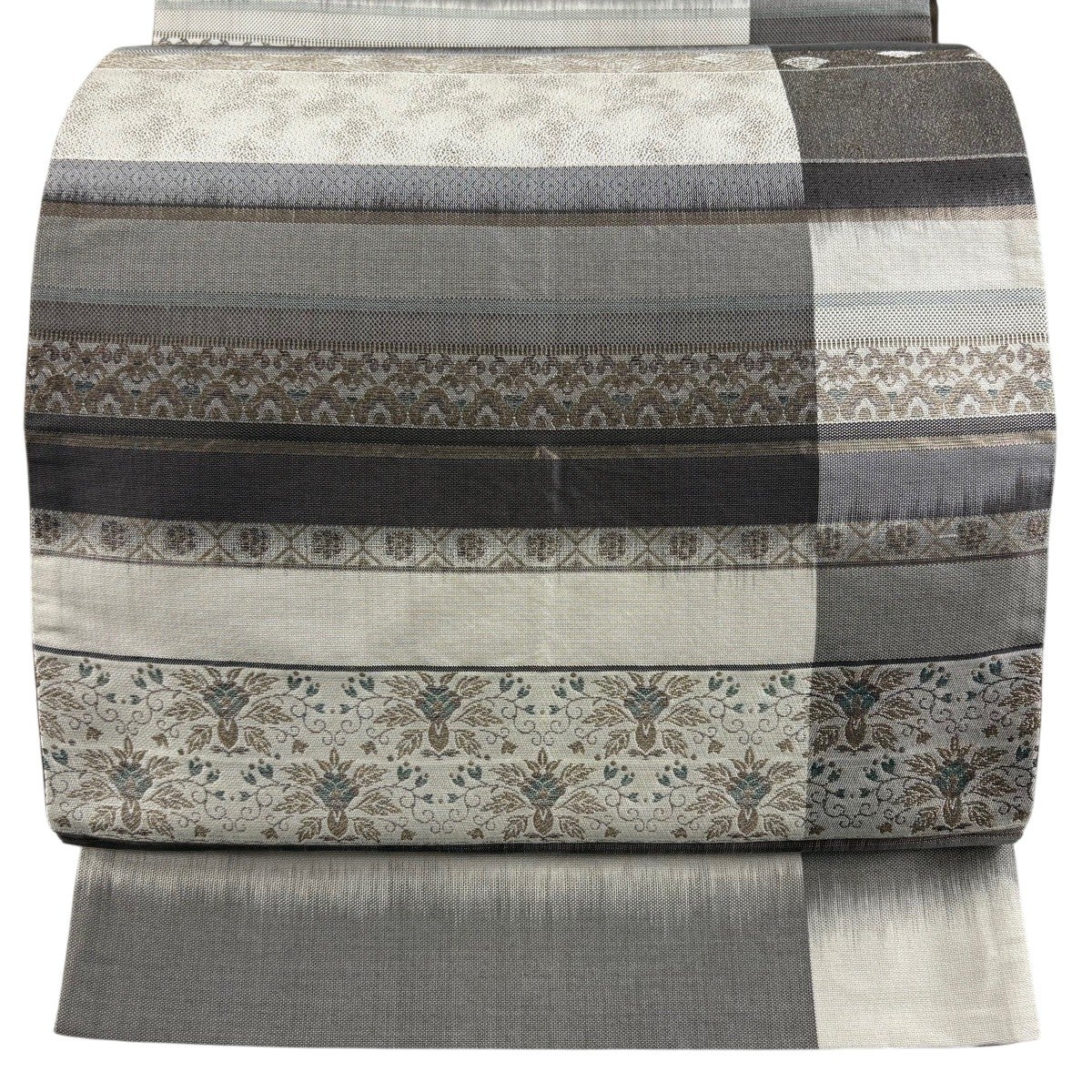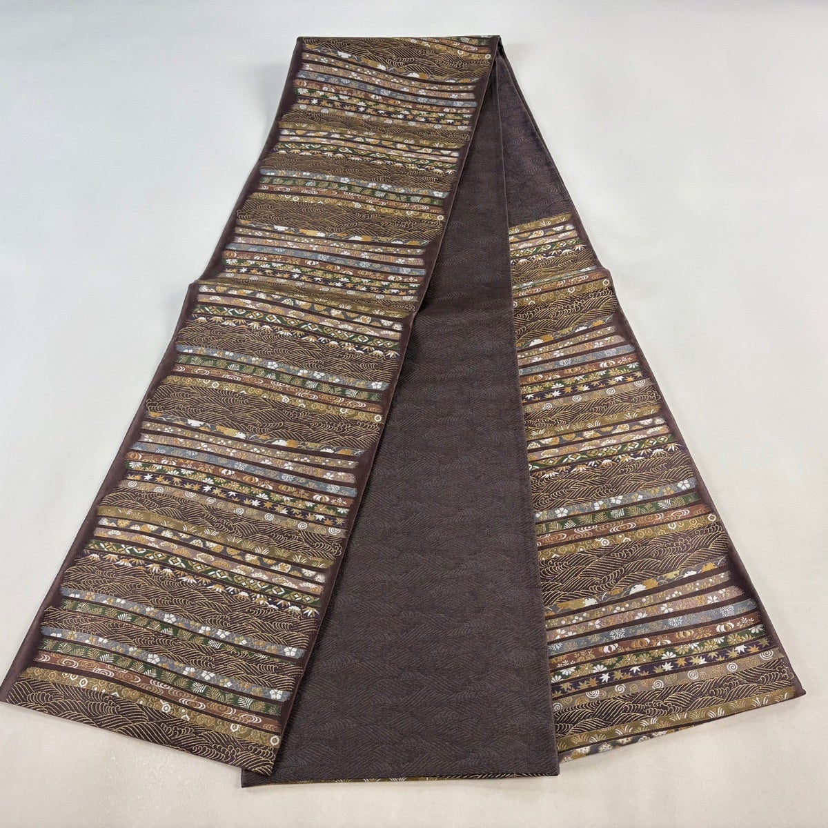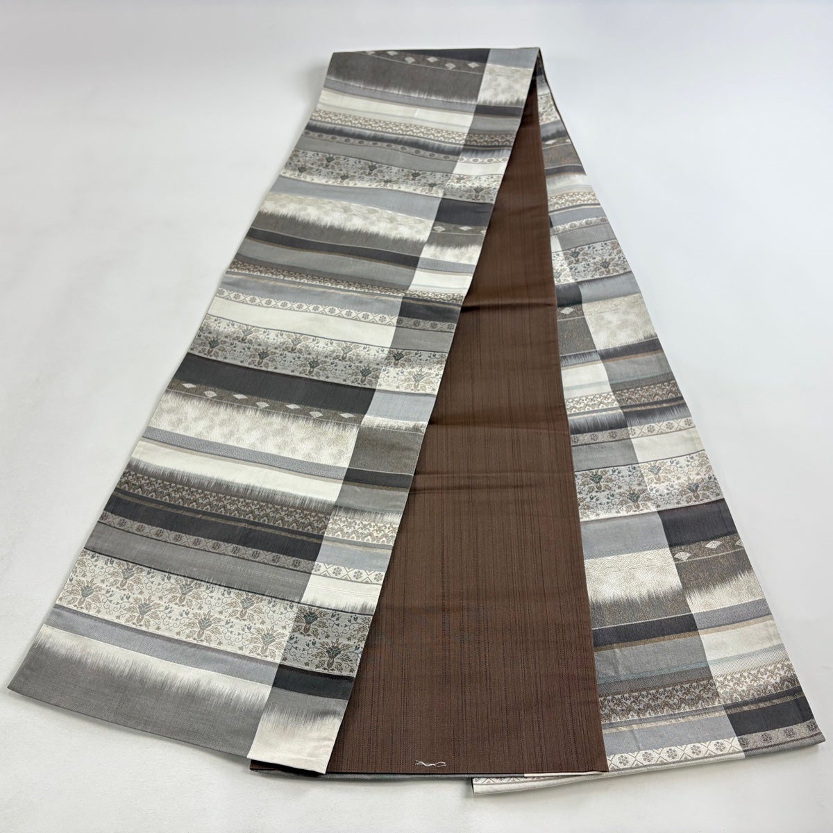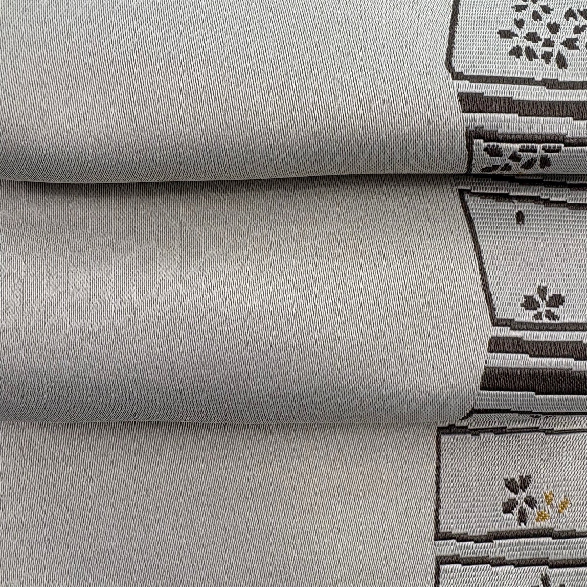 40%OFF 袋帯 逸品 縞 灰茶 全通 正絹 K30