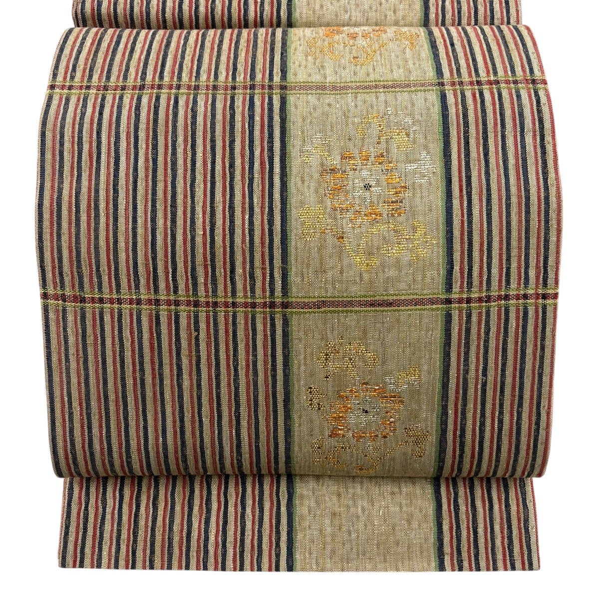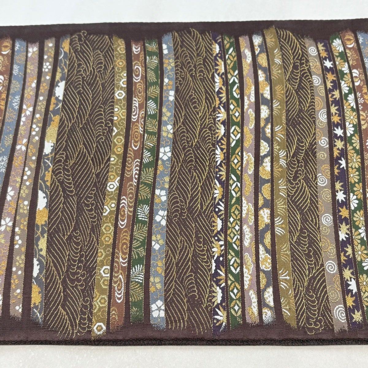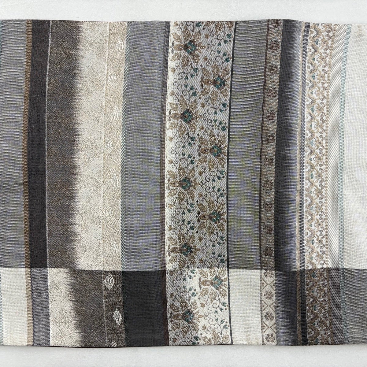 40%OFF 袋帯 逸品 縞 灰茶 全通 正絹 K30