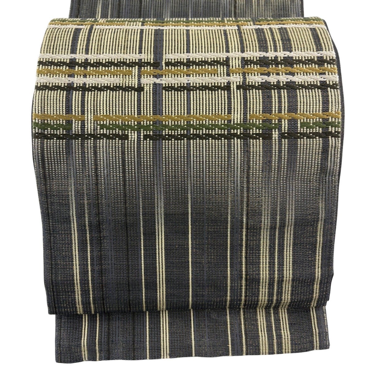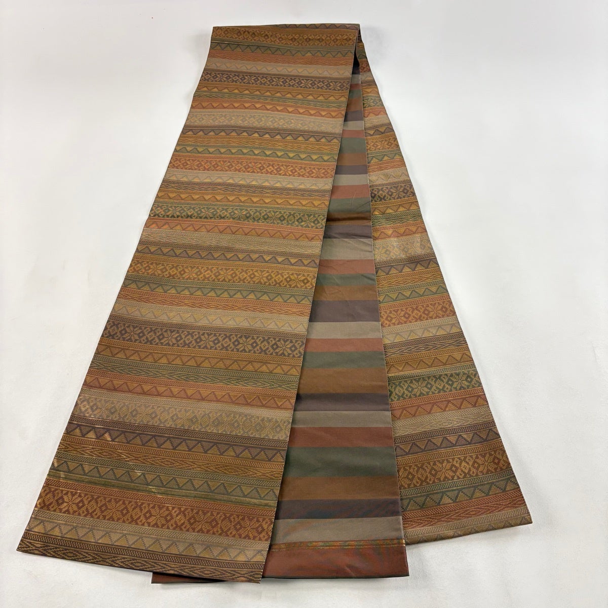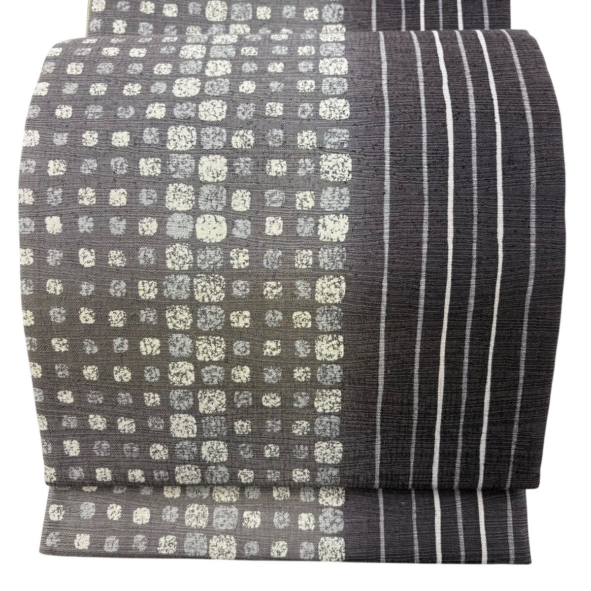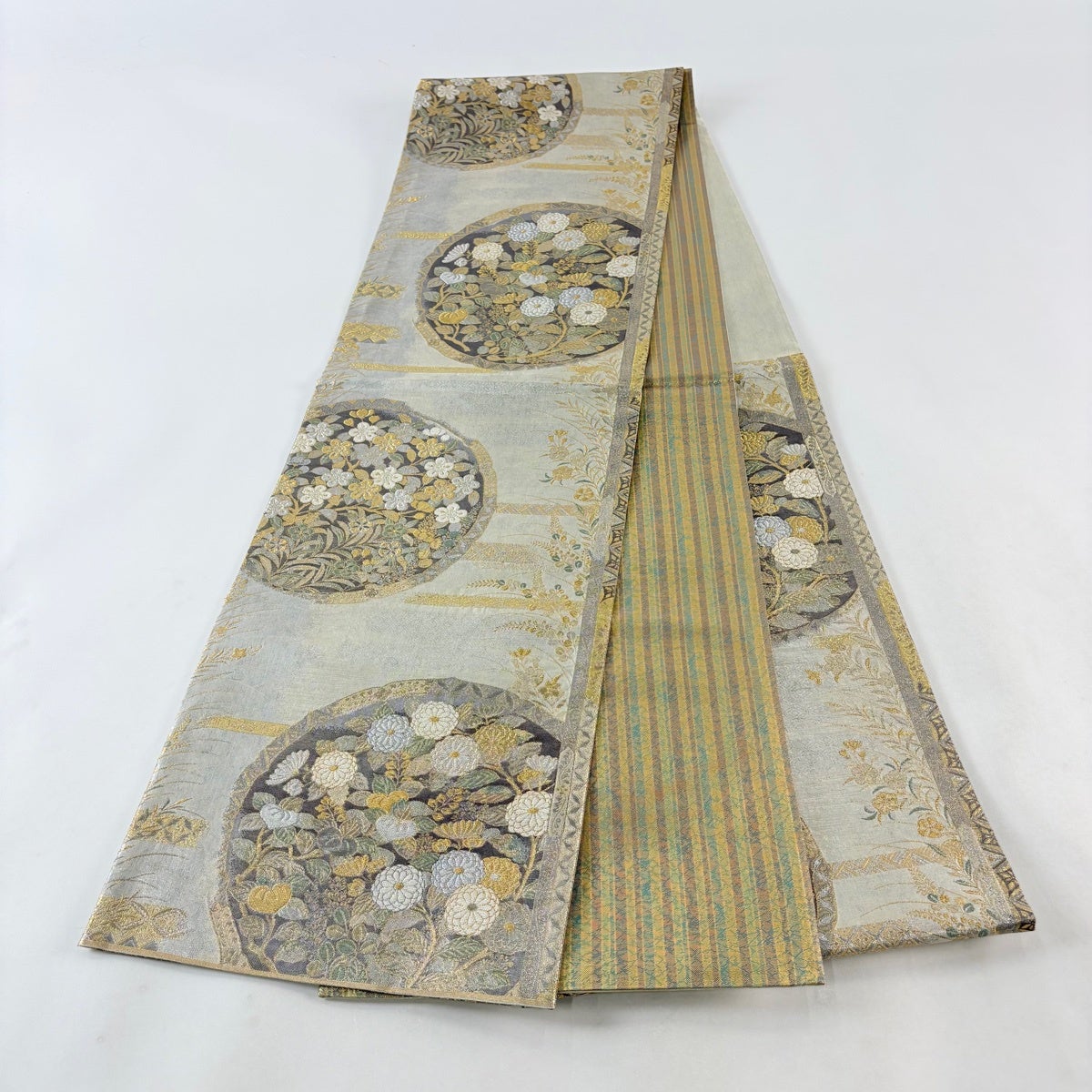 40%OFF 袋帯 逸品 縞 灰茶 全通 正絹 K30