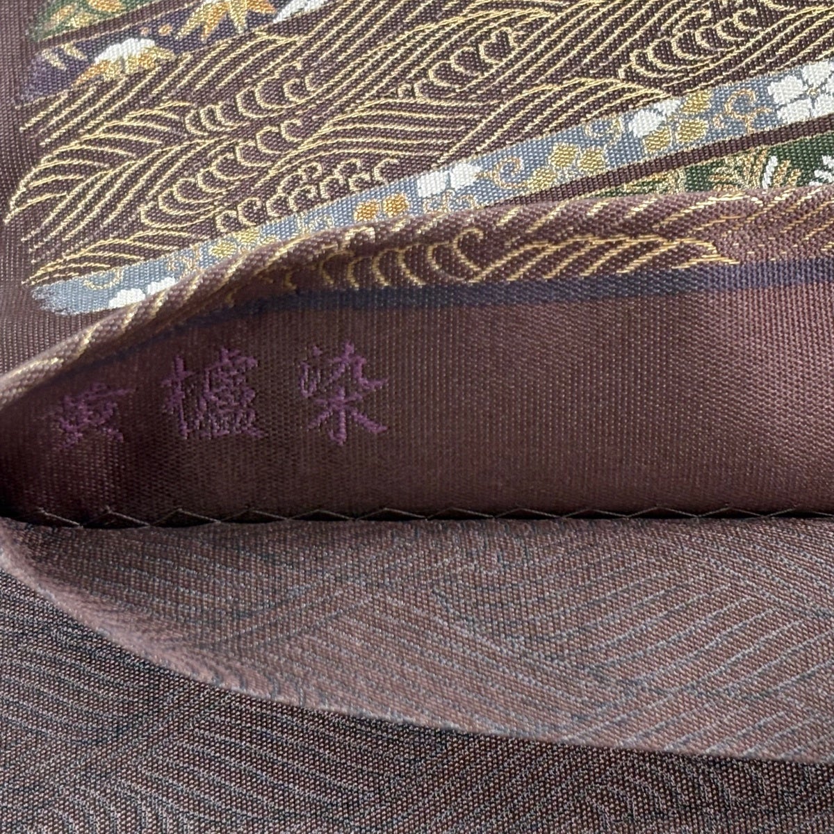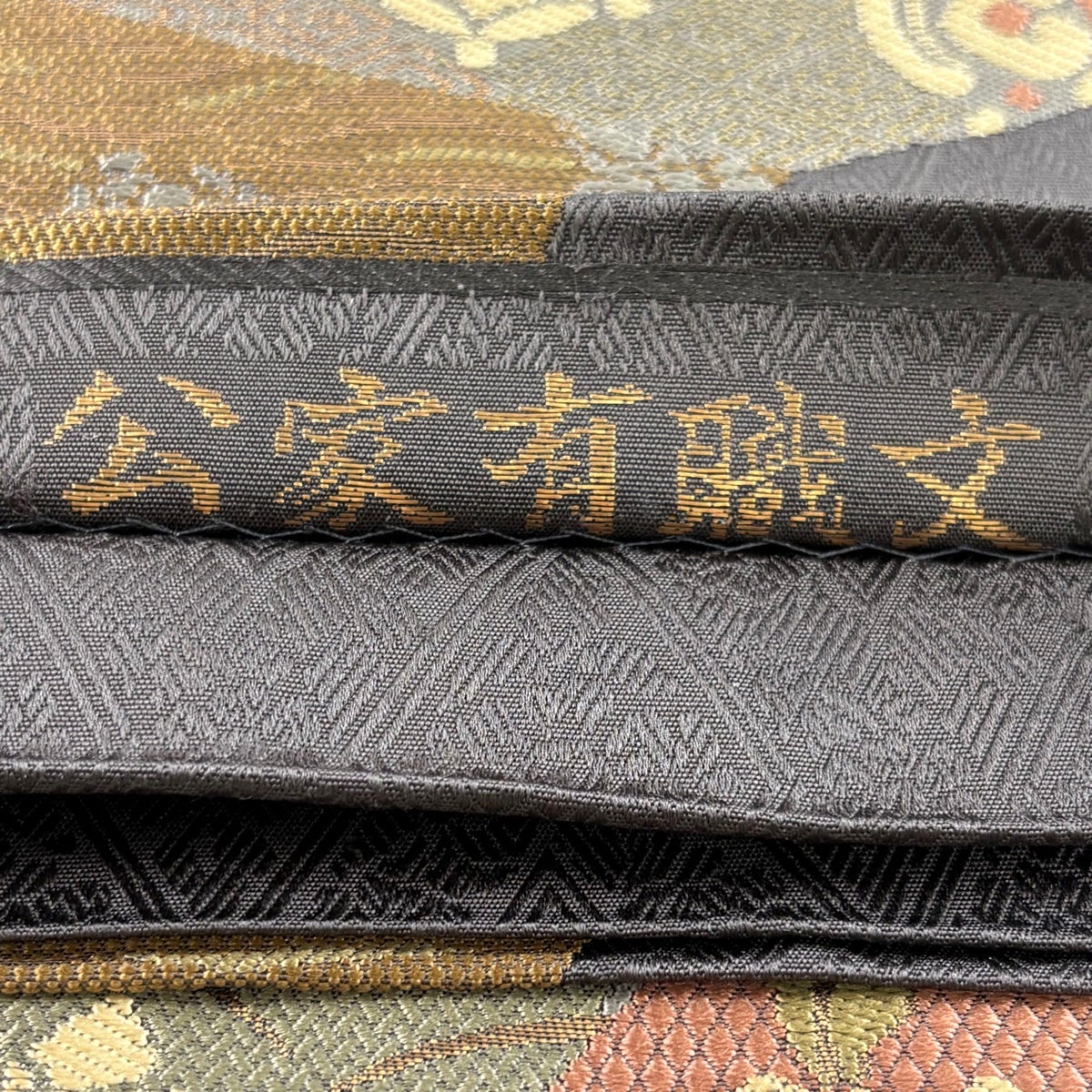 【美品】 袋帯 名品 公家有職文様 荒磯 灰茶 六通 正絹