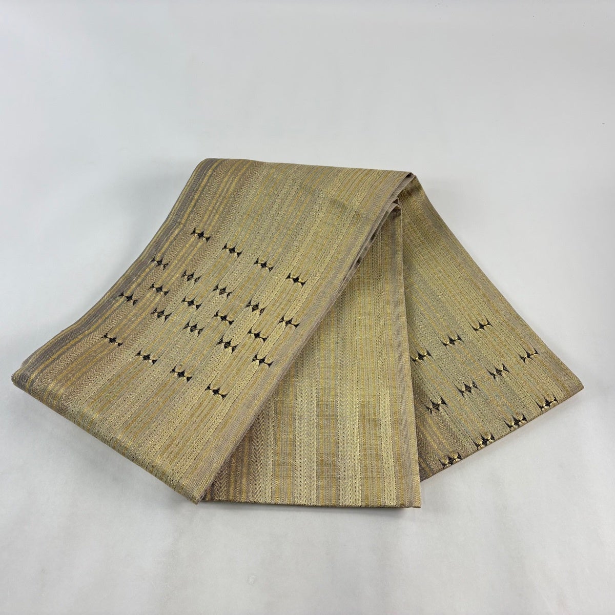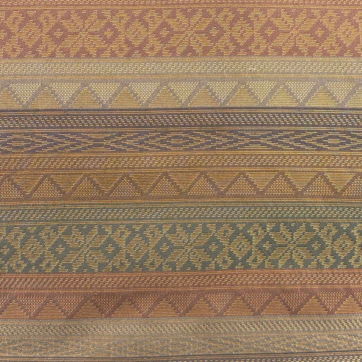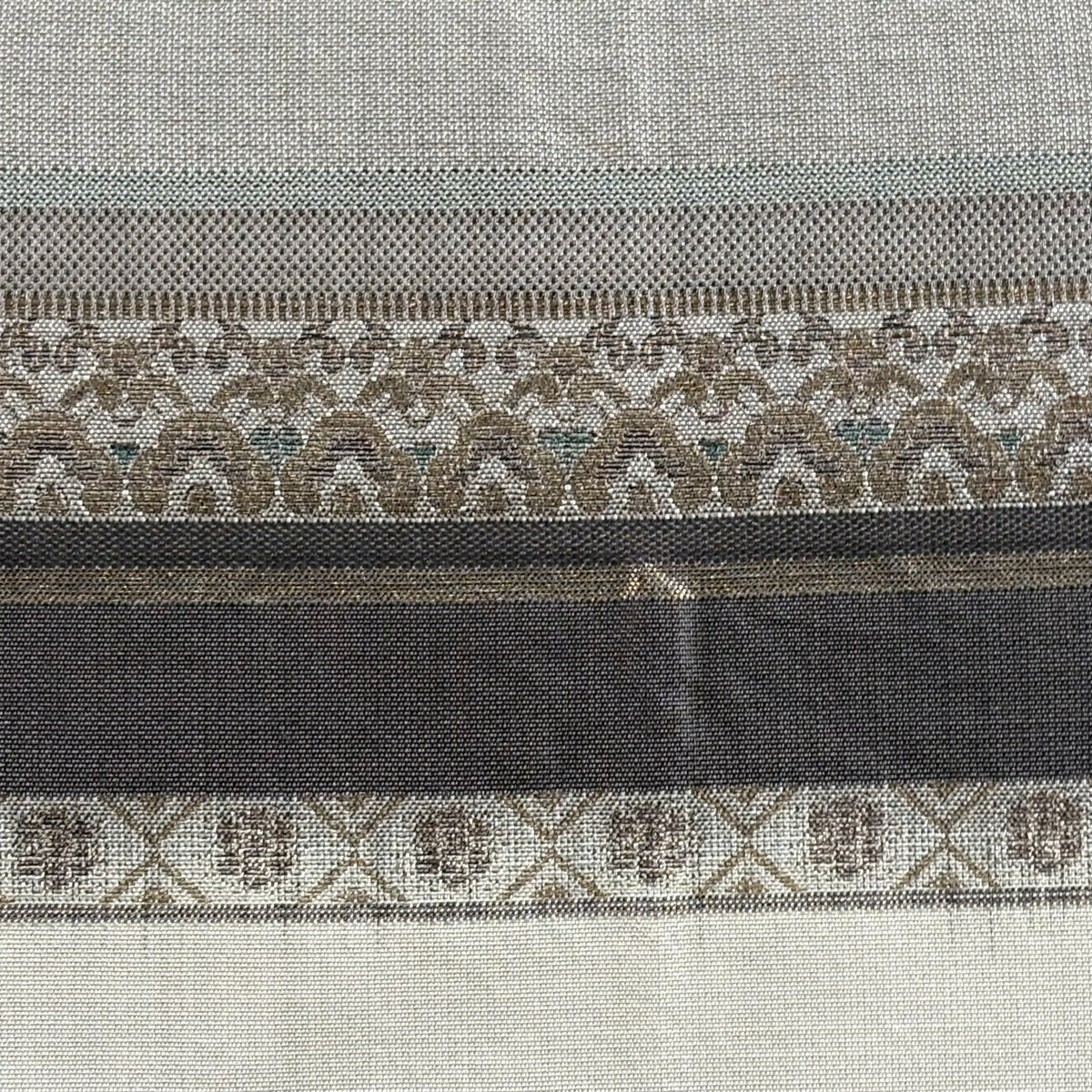 袋帯 秀品 縞 幾何学模様 金糸 灰茶 お太鼓柄 正絹