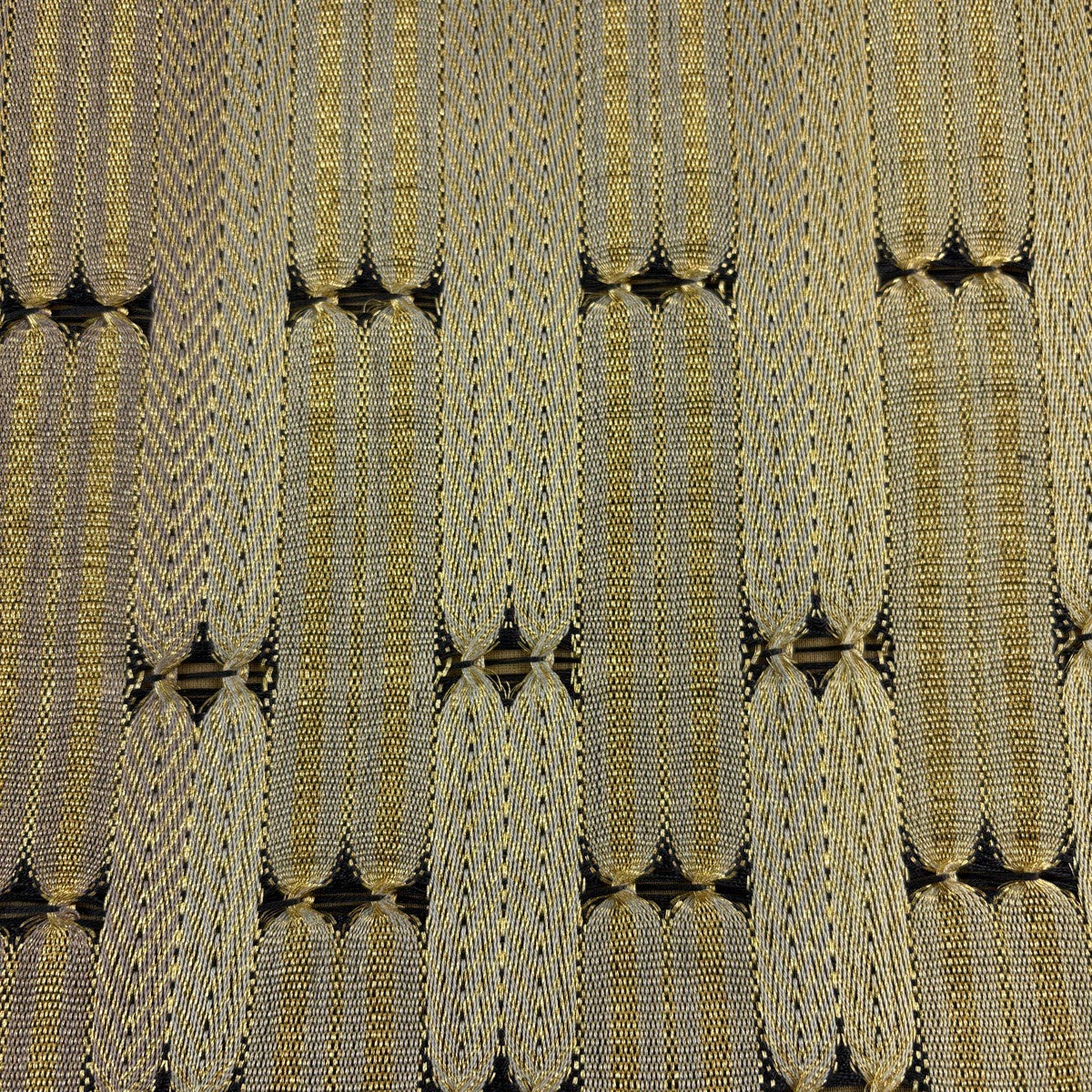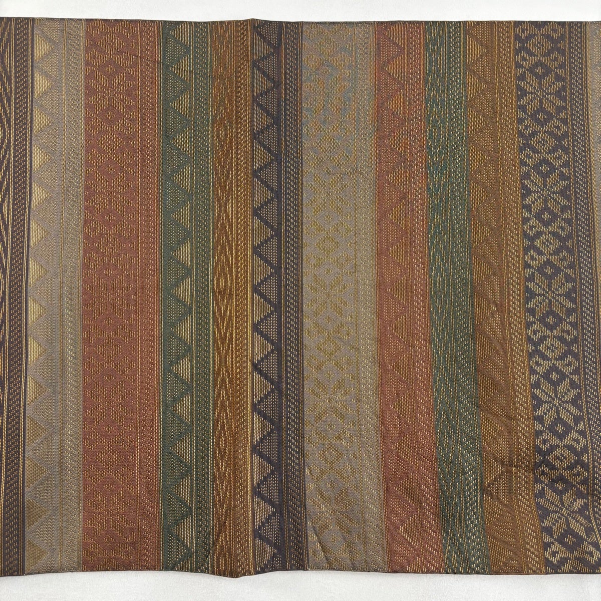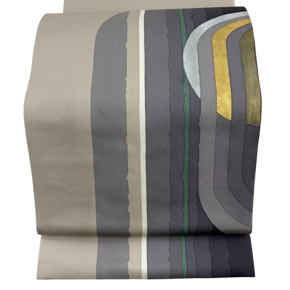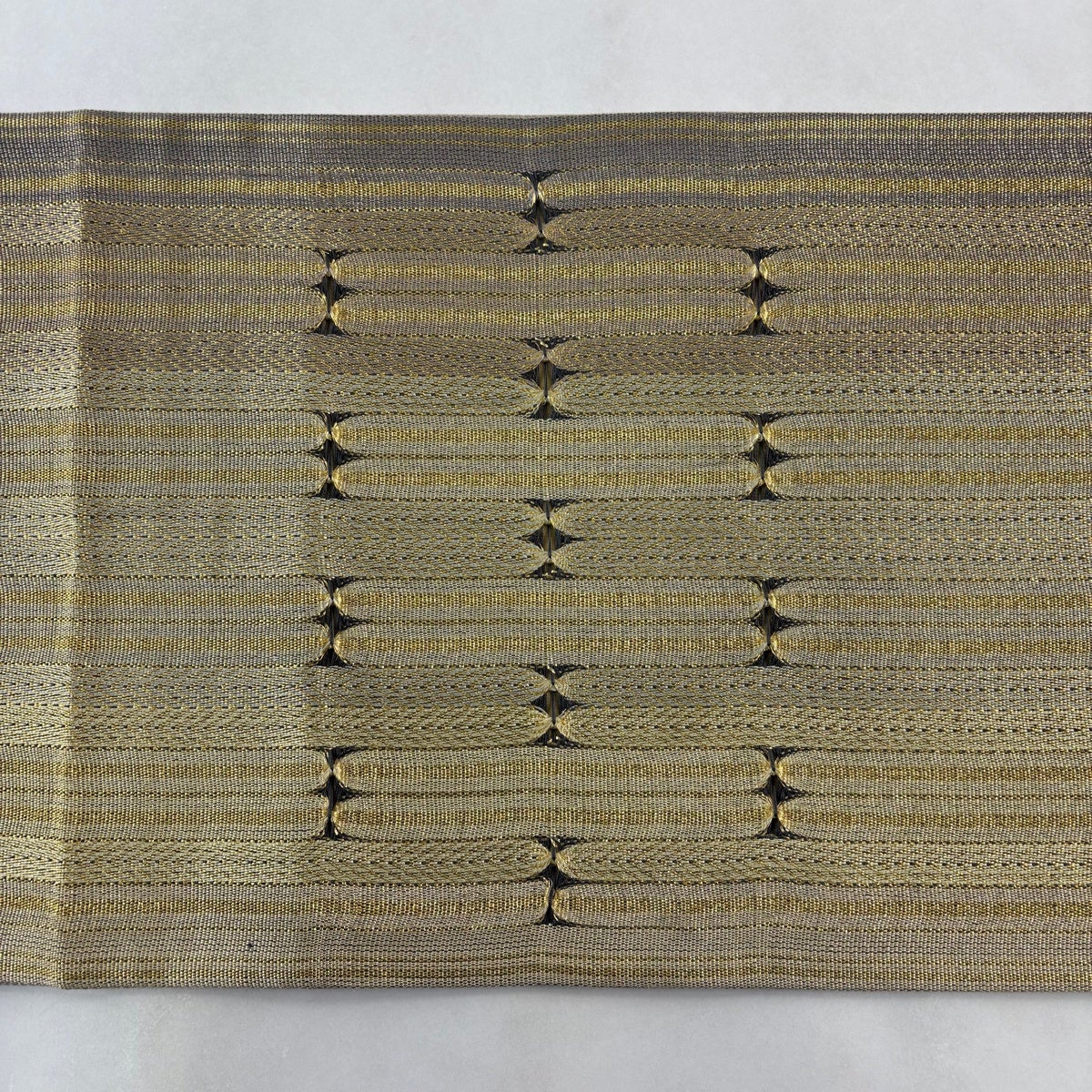 袋帯 秀品 縞 幾何学模様 金糸 灰茶 お太鼓柄 正絹