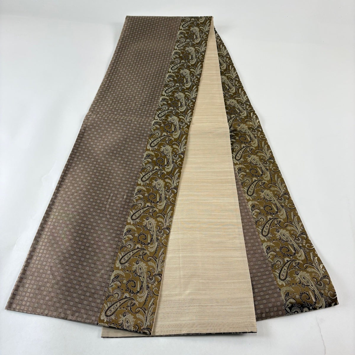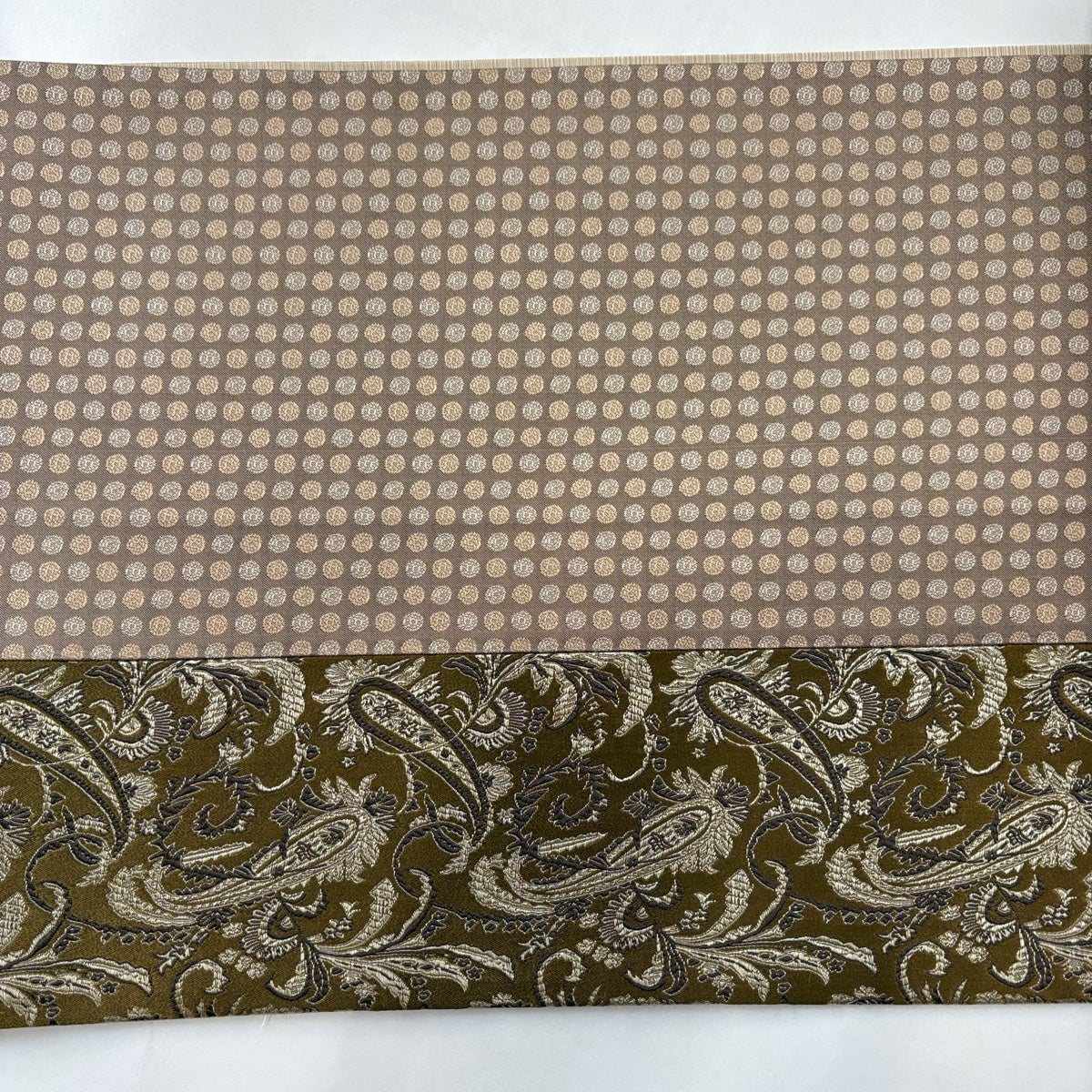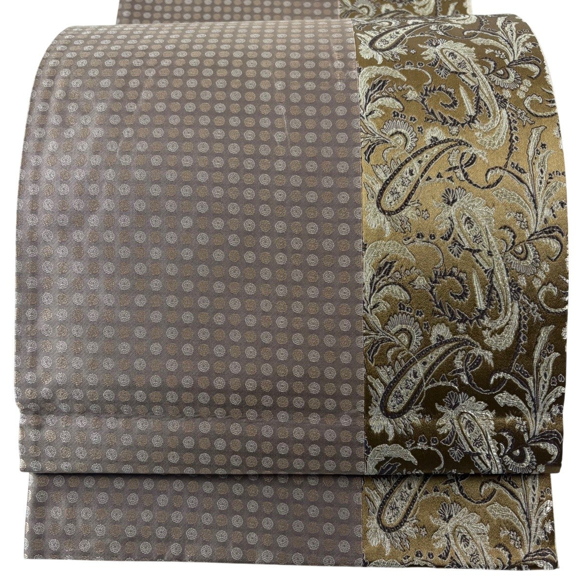 袋帯 秀品 ペイズリー ドット 灰茶 全通 正絹