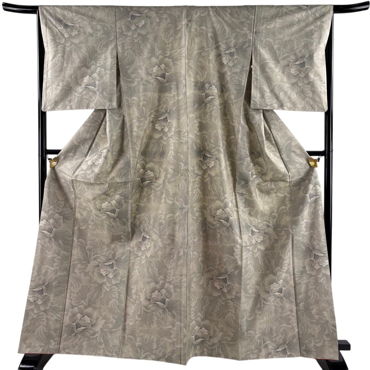 紬 身丈166cm 裄丈66cm M 袷 草花 灰茶 正絹 秀品