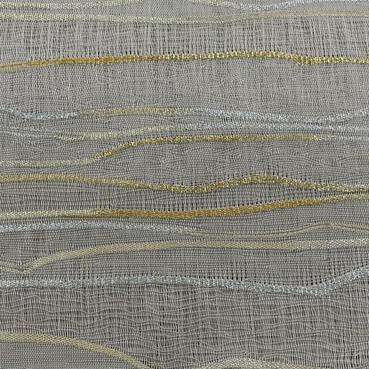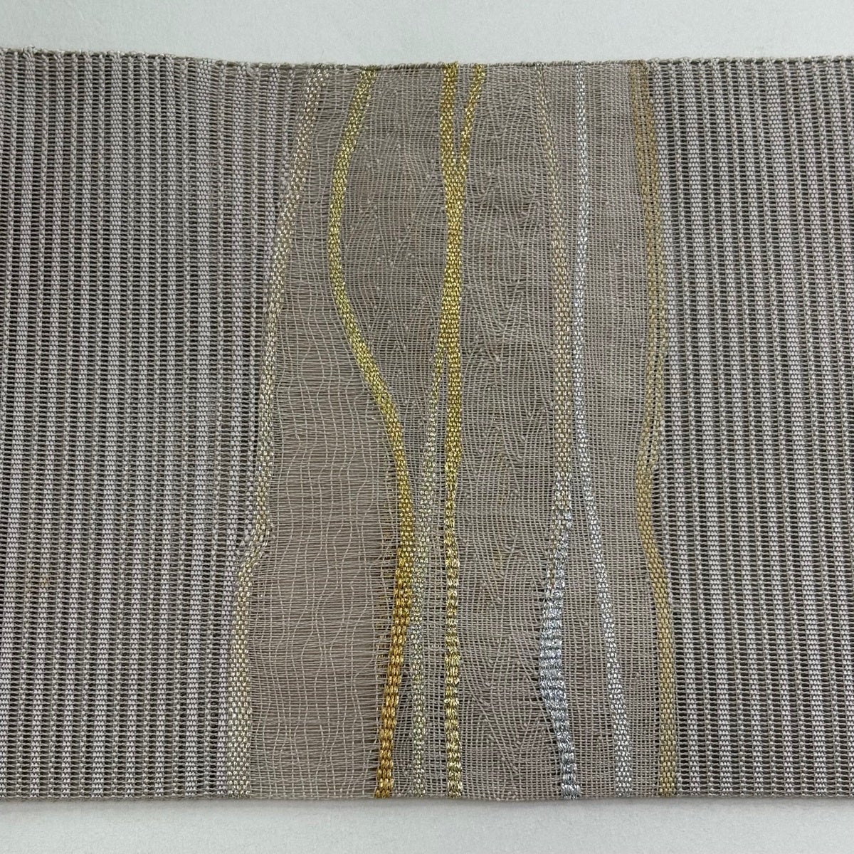 【美品】 名古屋帯 秀品 夏帯 絽 縞 金銀糸 灰茶 正絹