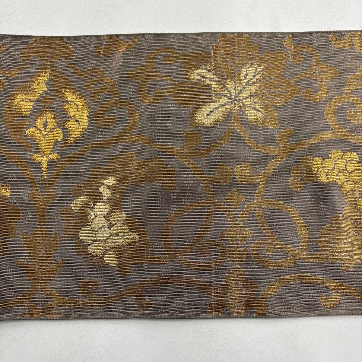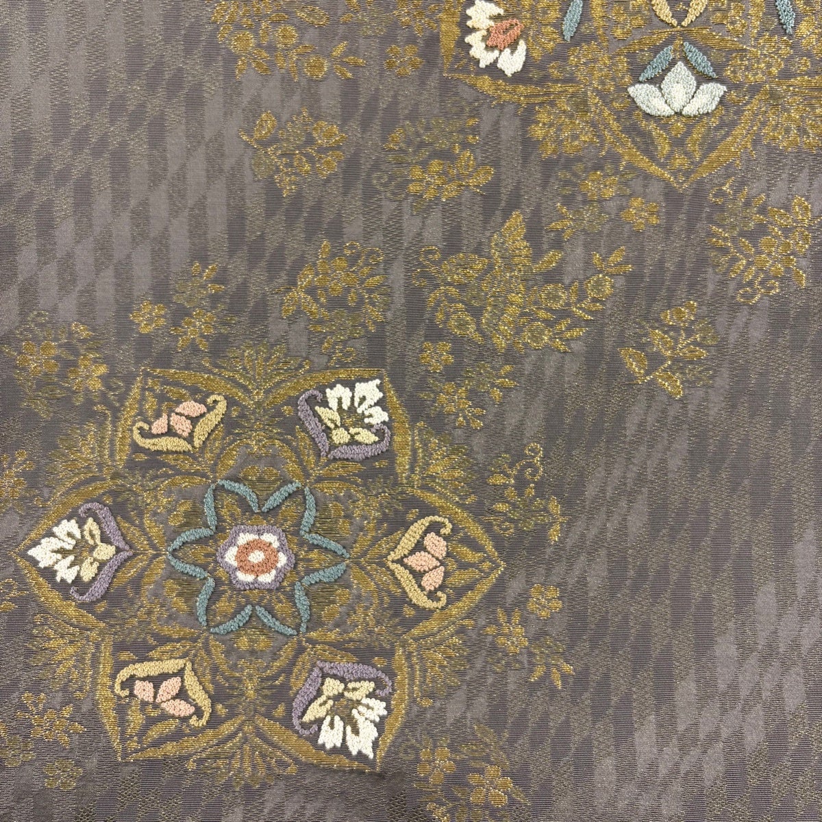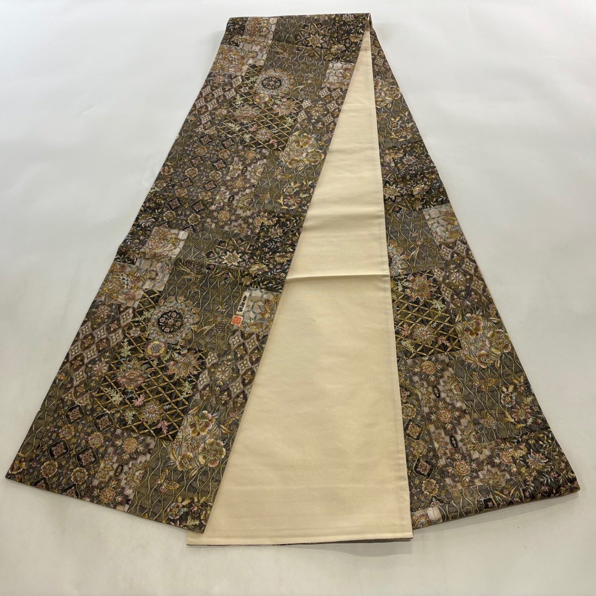 30%OFF 【美品】 袋帯 秀品 簪 花 金糸 唐織 灰茶 六通 正絹 K30