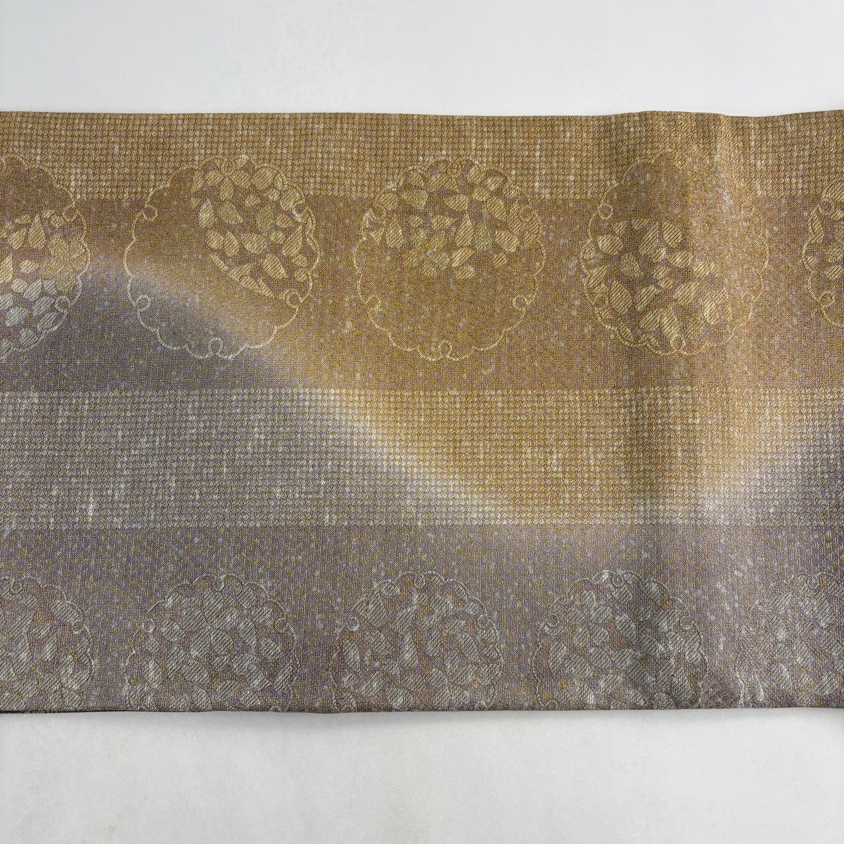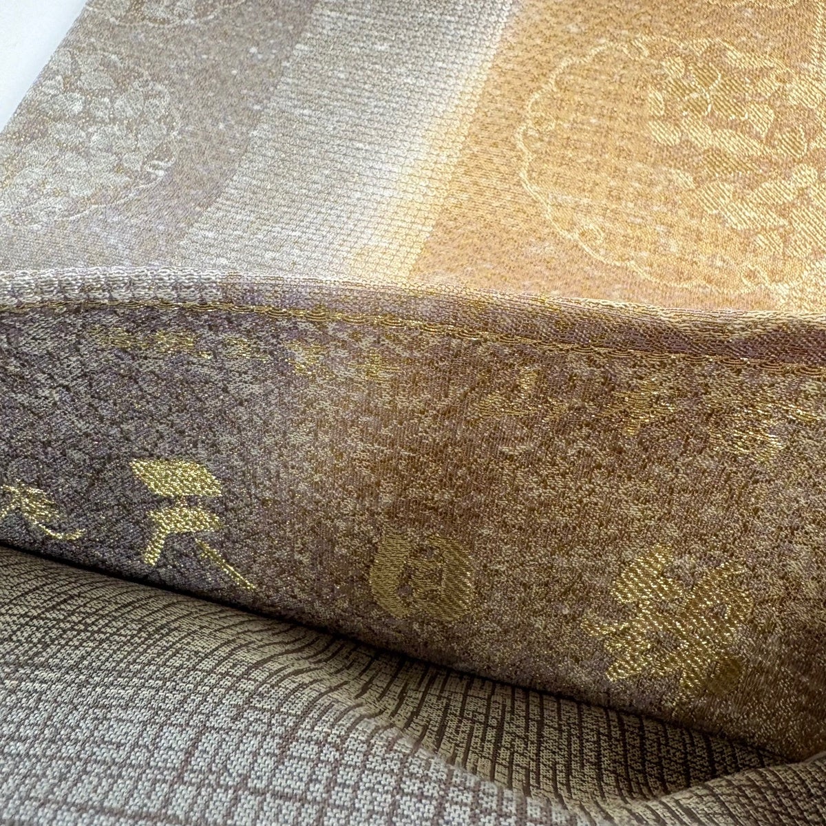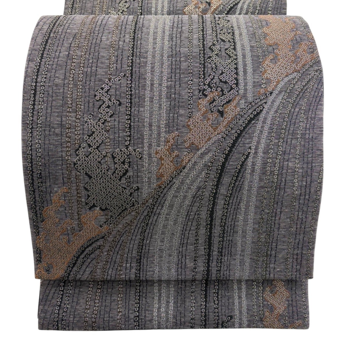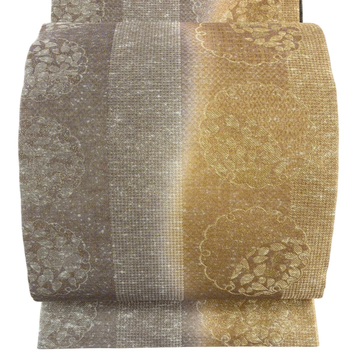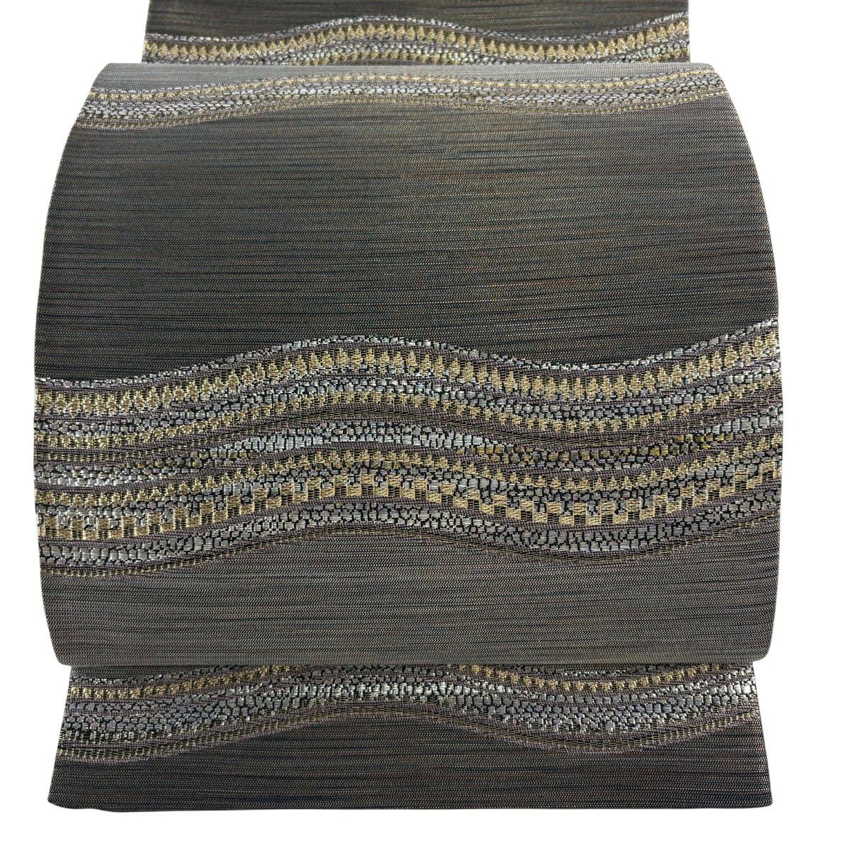 50%OFF 【美品】 名古屋帯 名品 雪輪笹青海波 唐織 箔 灰茶 正絹 K50