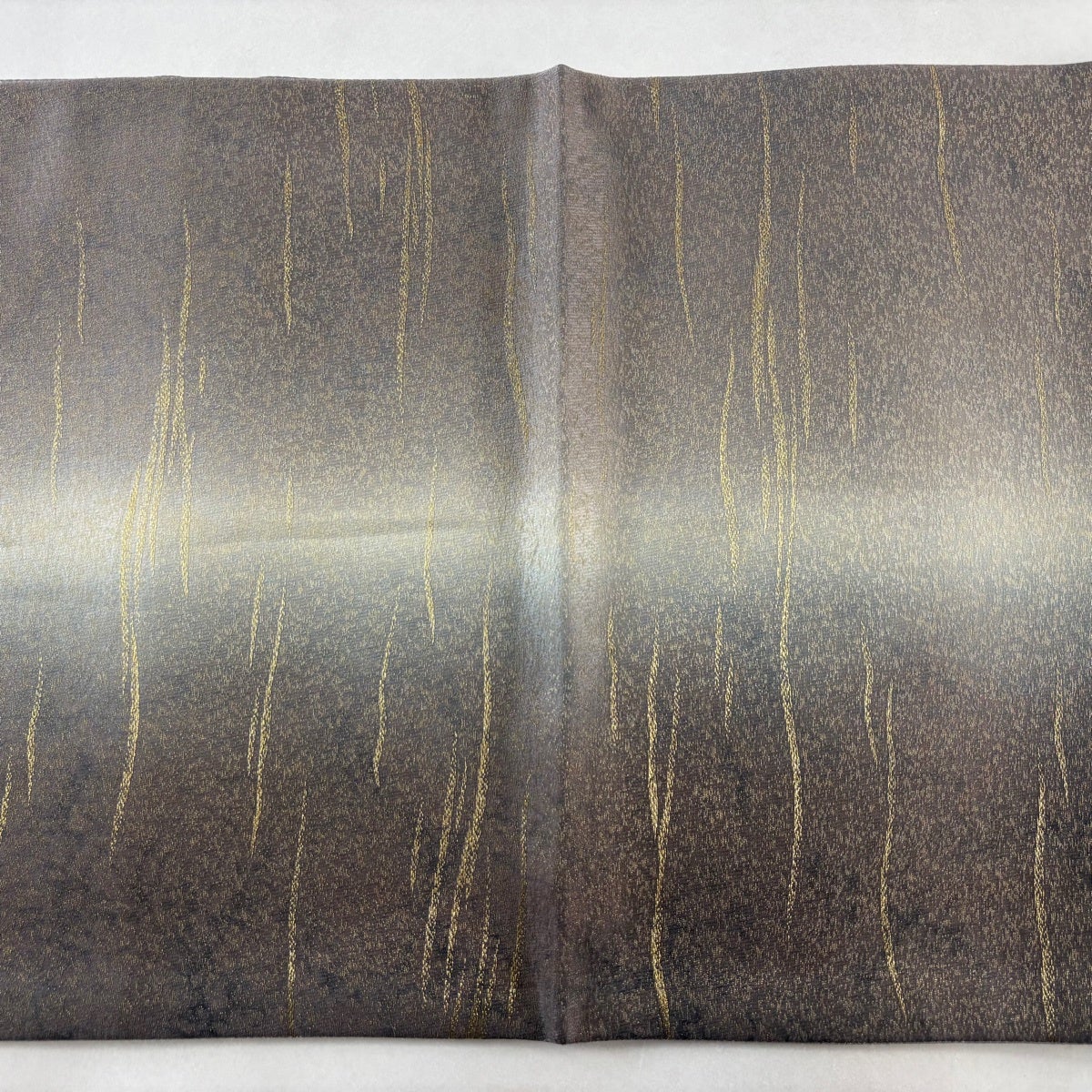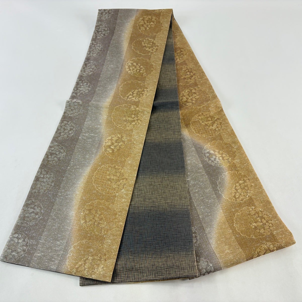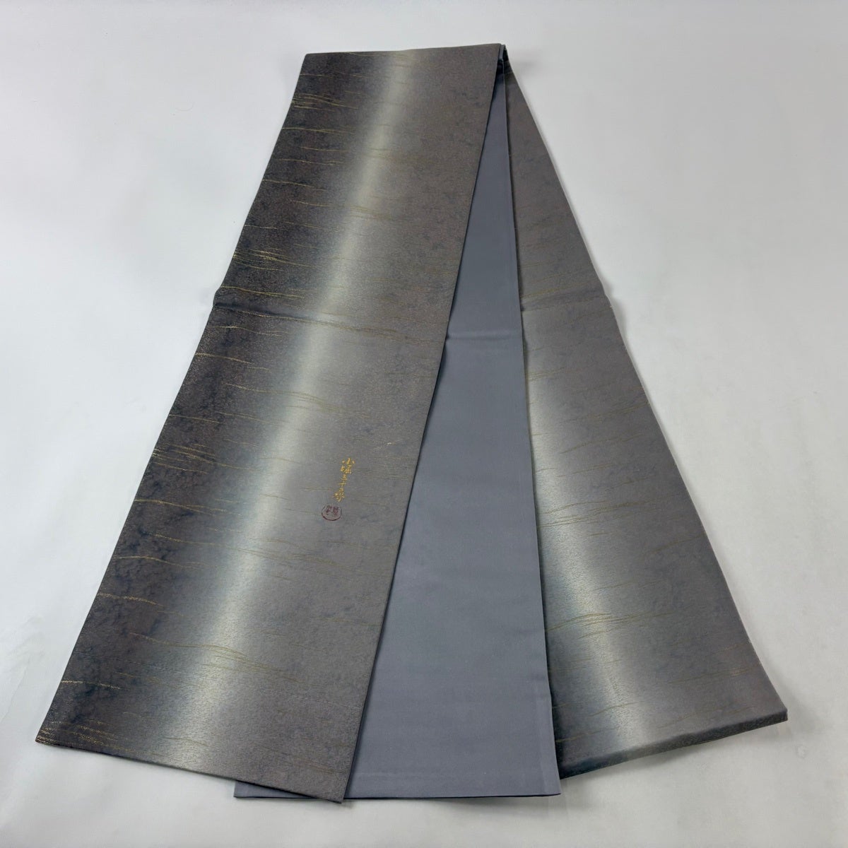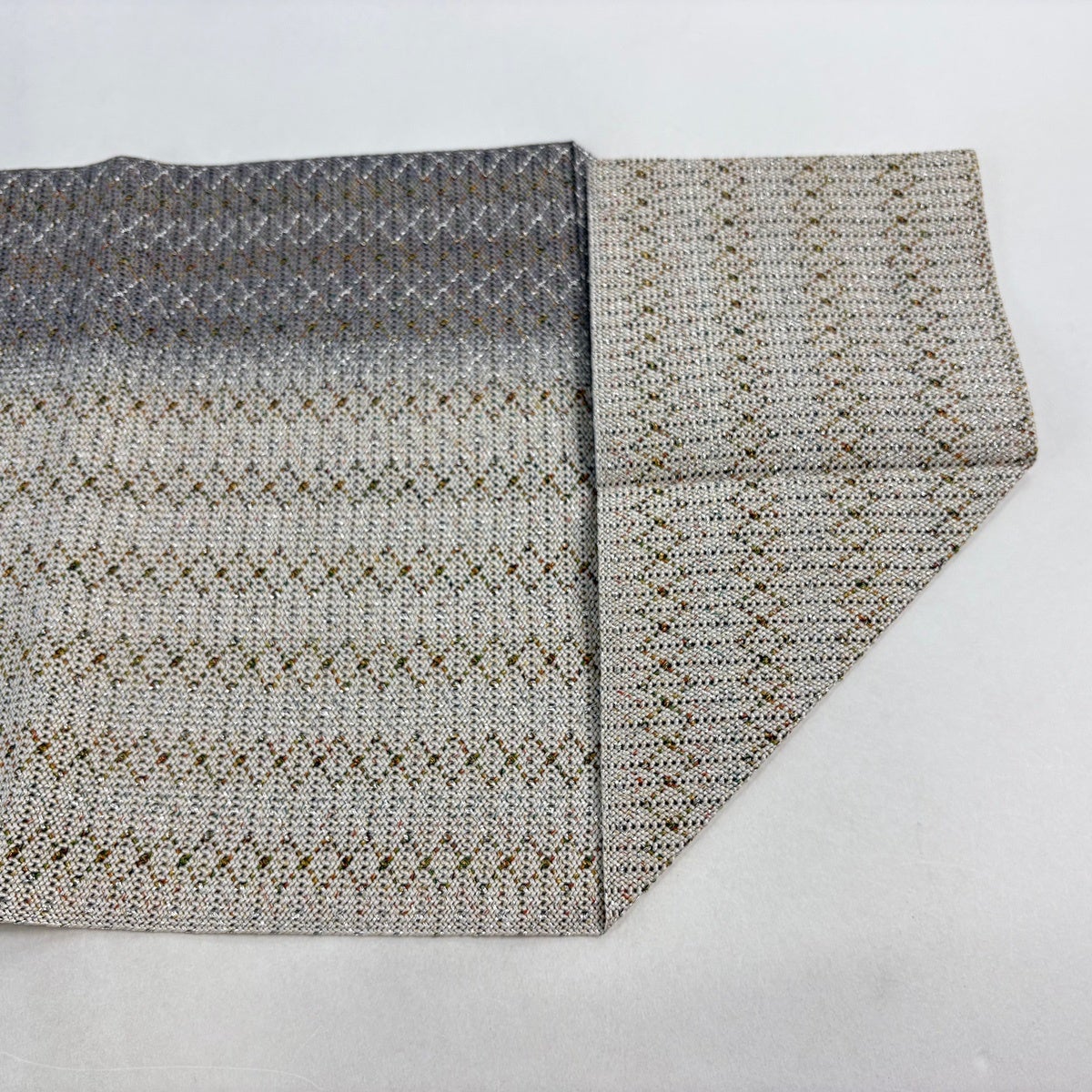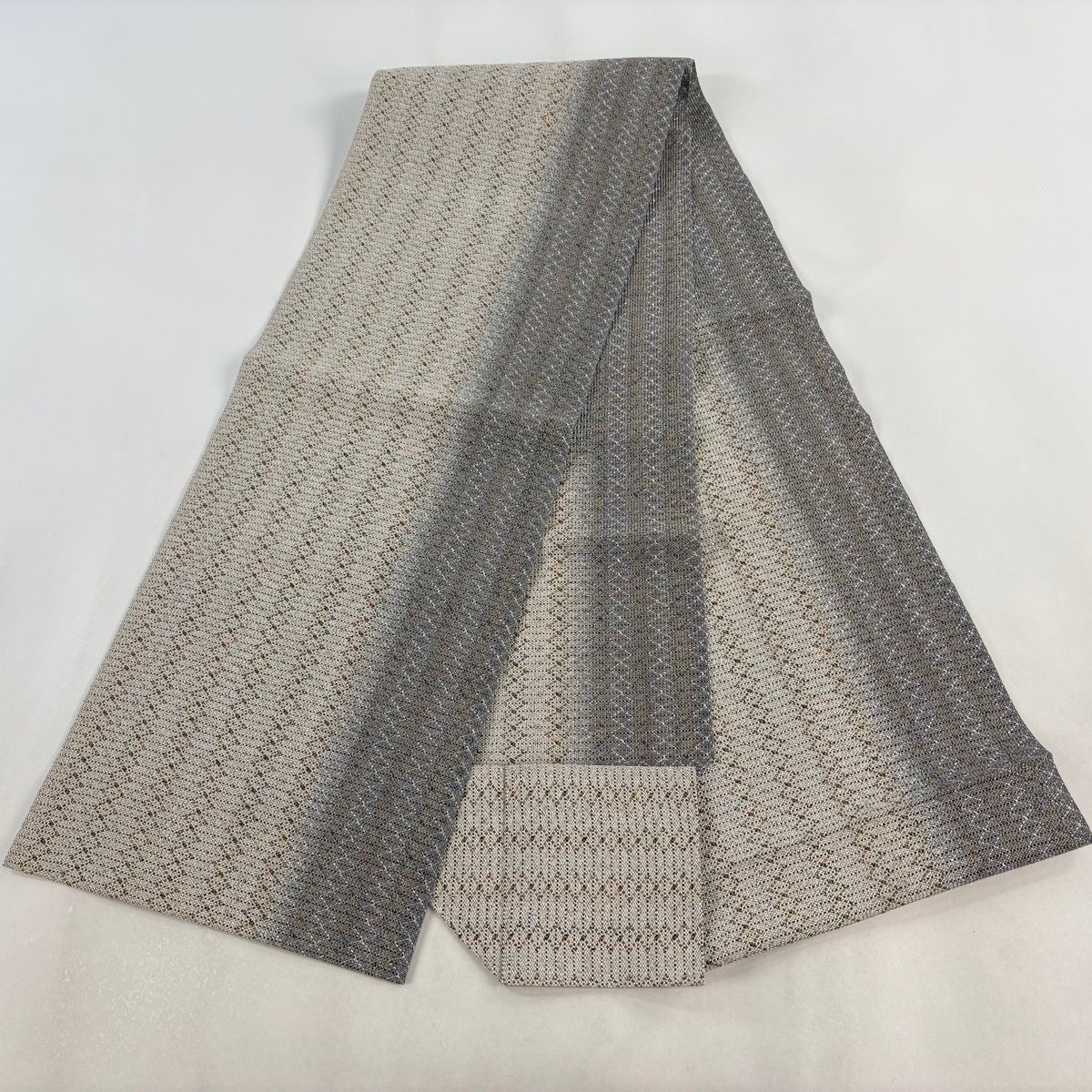 【最終価格】 70%OFF 袋帯 名品 横段 幾何学 灰茶 全通 正絹 K70