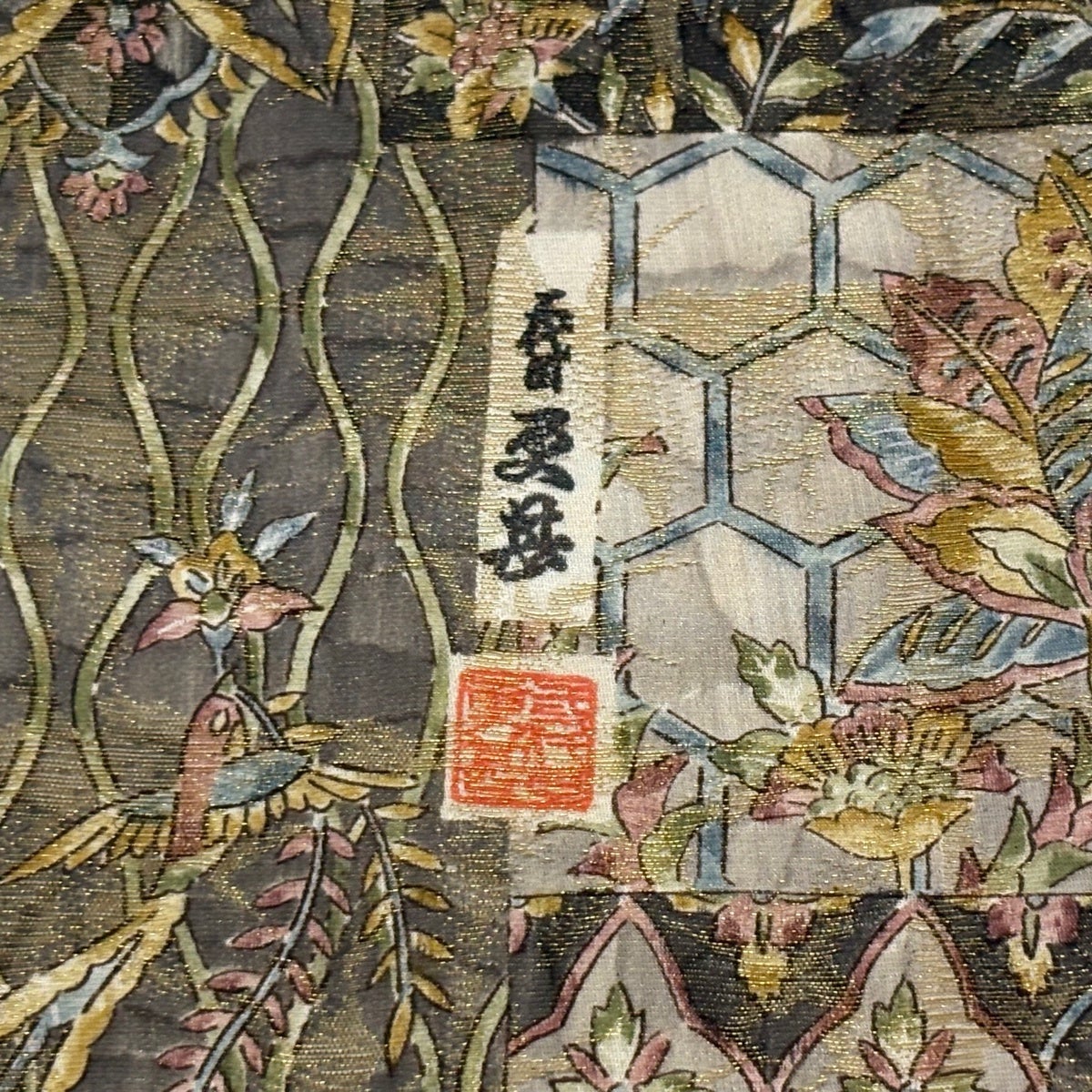 30%OFF 【美品】 袋帯 名品 華文 鳥 金糸 箔 灰茶 六通 正絹 K30