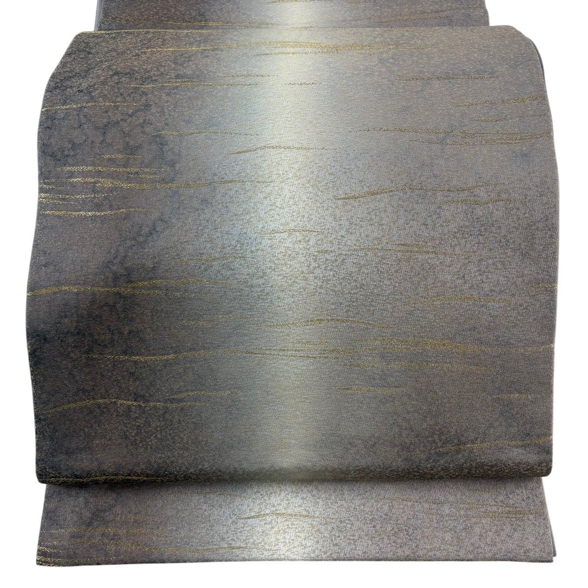 50%OFF 【美品】 袋帯 秀品 幾何学 箔 金糸 灰茶 六通 正絹 K50
