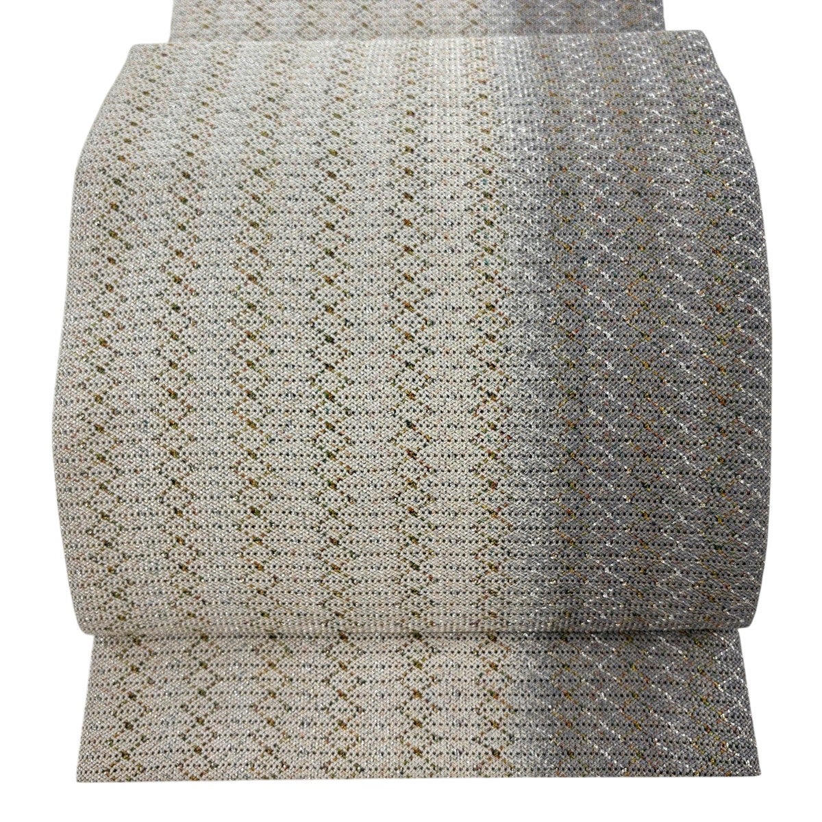 50%OFF 【美品】 名古屋帯 逸品 松葉仕立て 八寸名古屋帯 格子 灰茶 K50