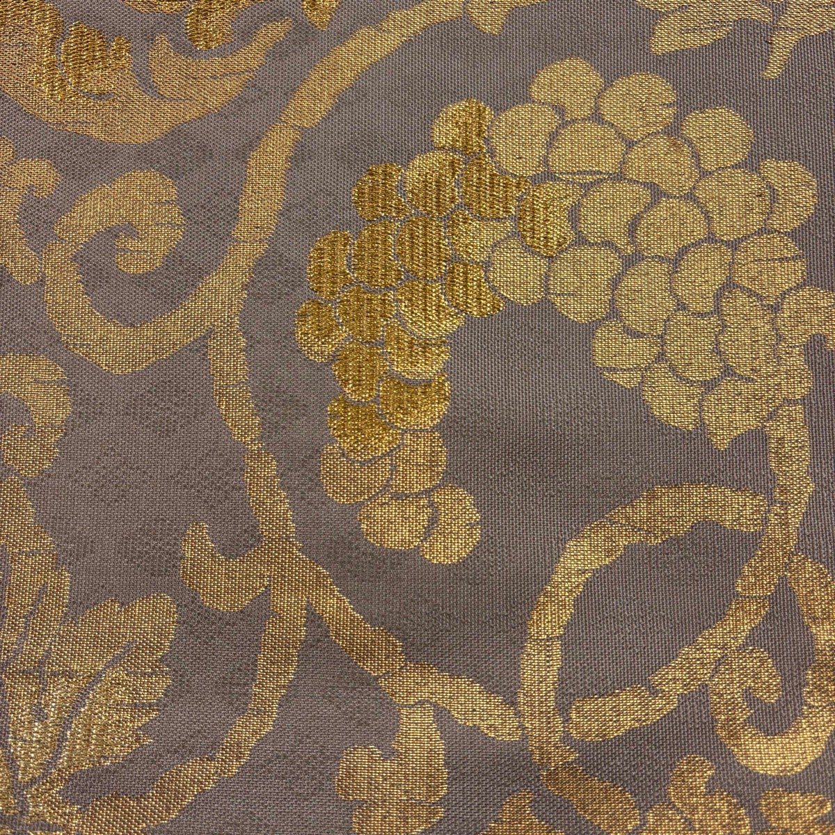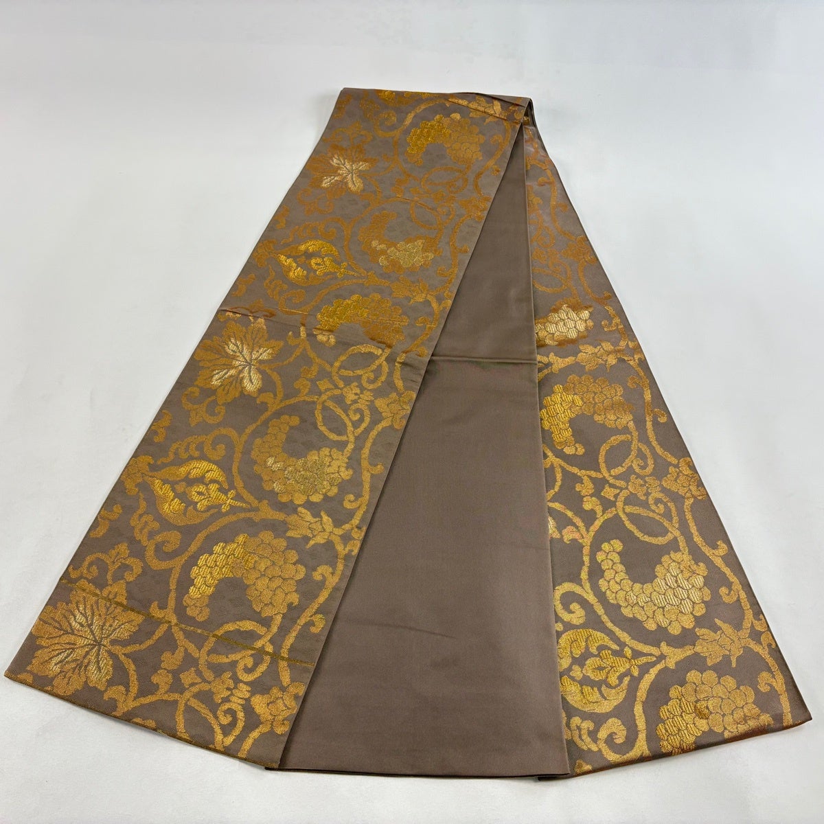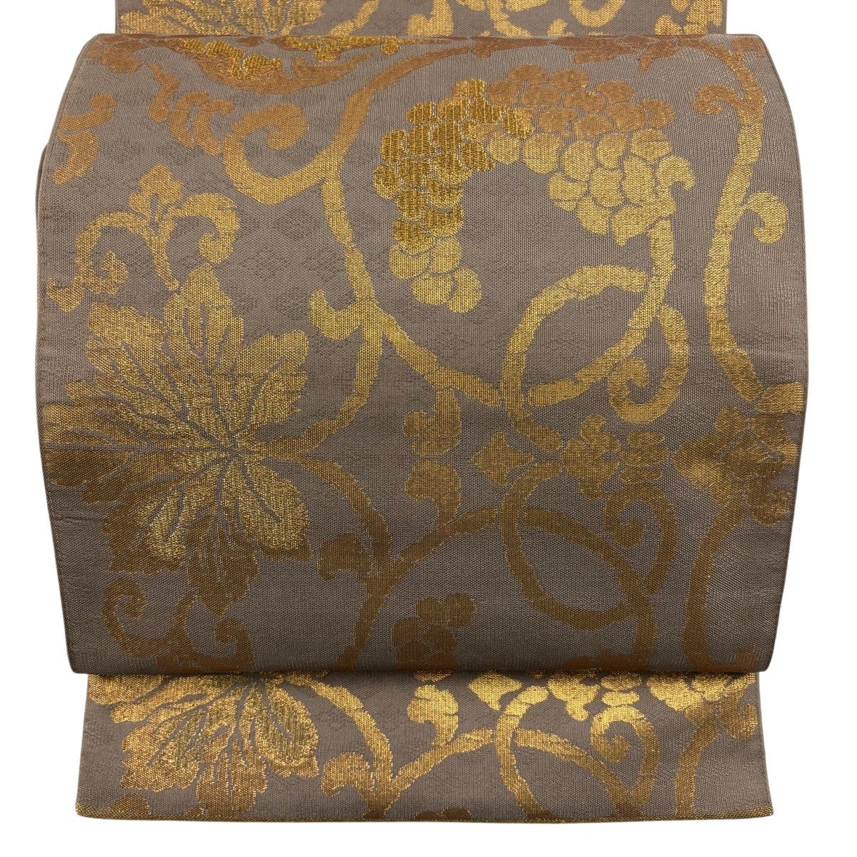 【美品】 袋帯 名品 本袋帯全通 関西仕立て 葡萄唐草 箔 金糸 灰茶 全通 正絹