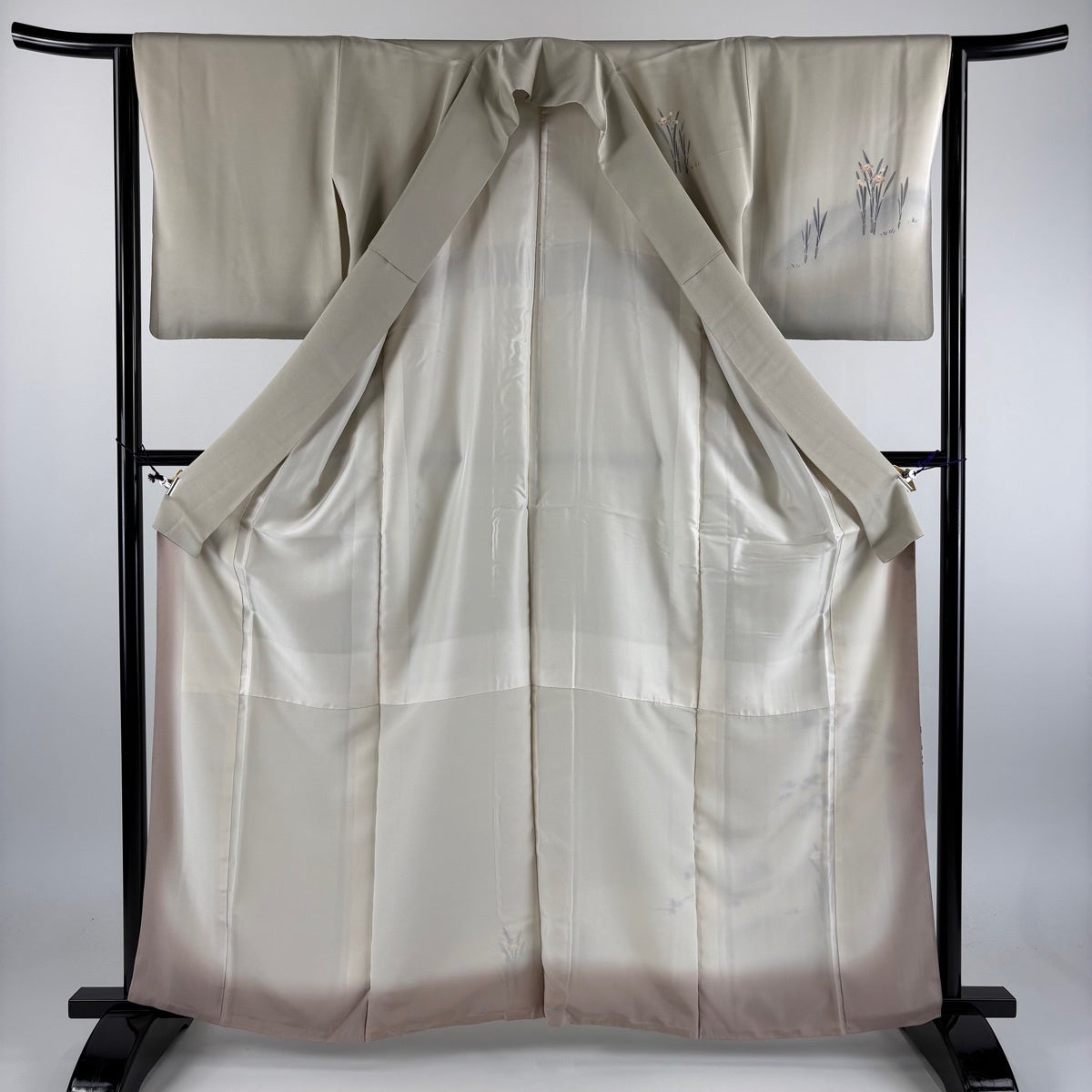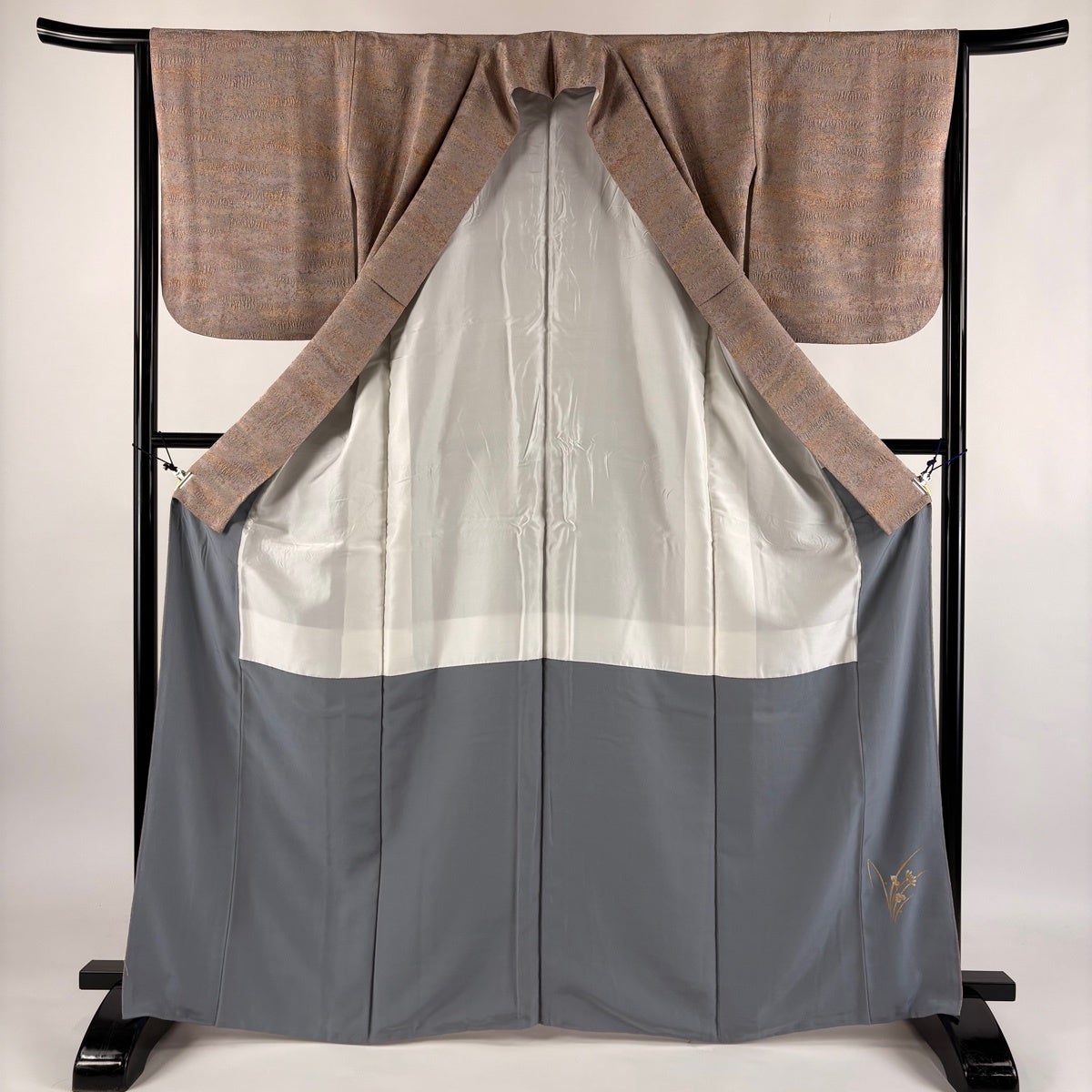 50%OFF 訪問着 身丈156cm 裄丈63.5cm S 袷 草花 鳥 刺繍 ぼかし 灰茶 正絹 秀品 K50