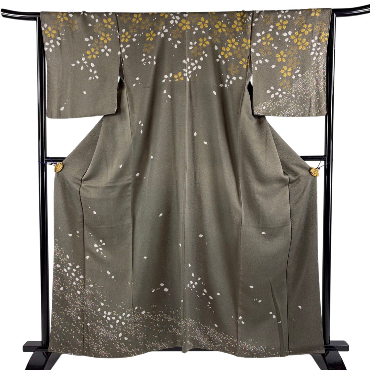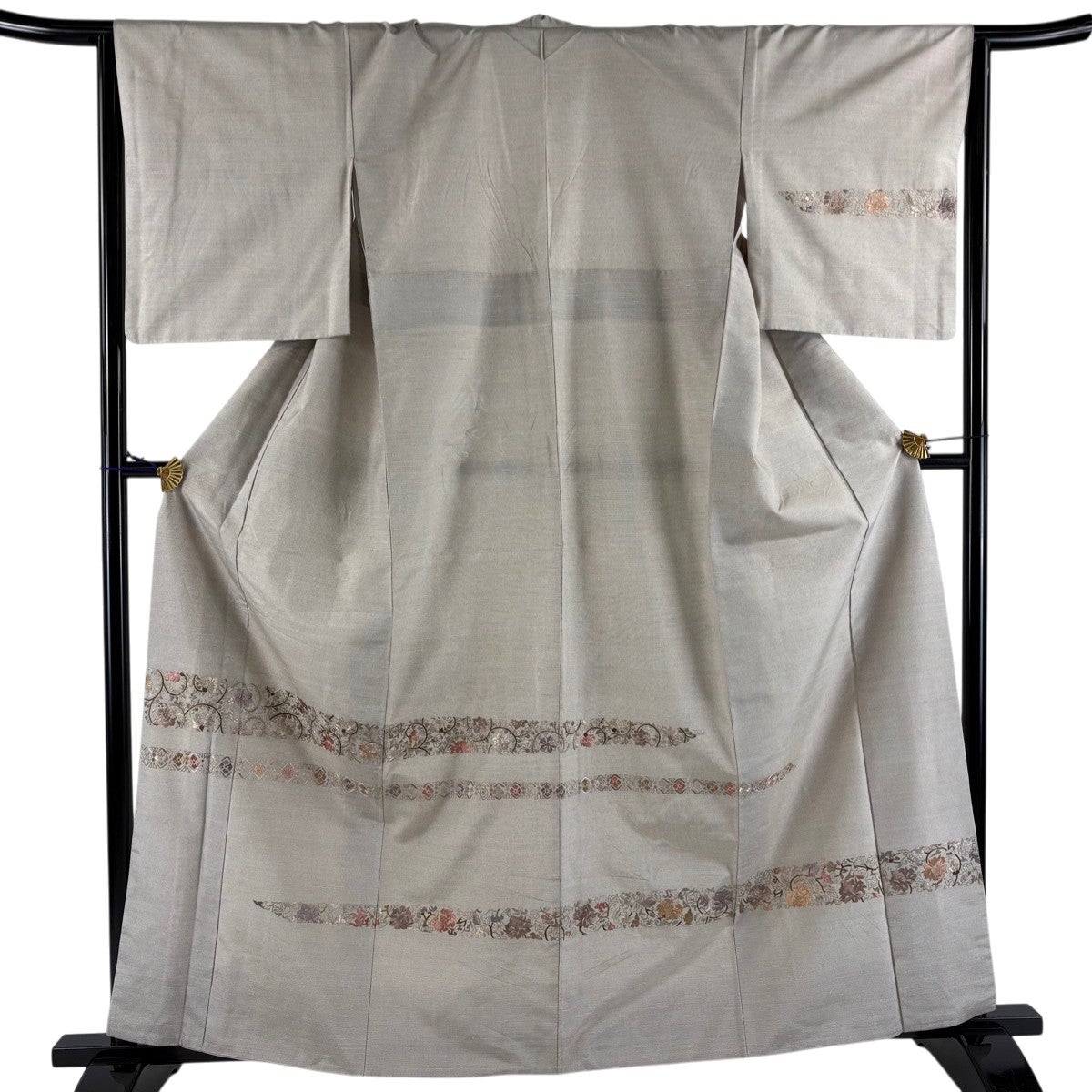 50%OFF 訪問着 身丈160cm 裄丈65cm M 袷 宝尽くし 松竹梅 金糸 金彩 灰茶 正絹 秀品 K50