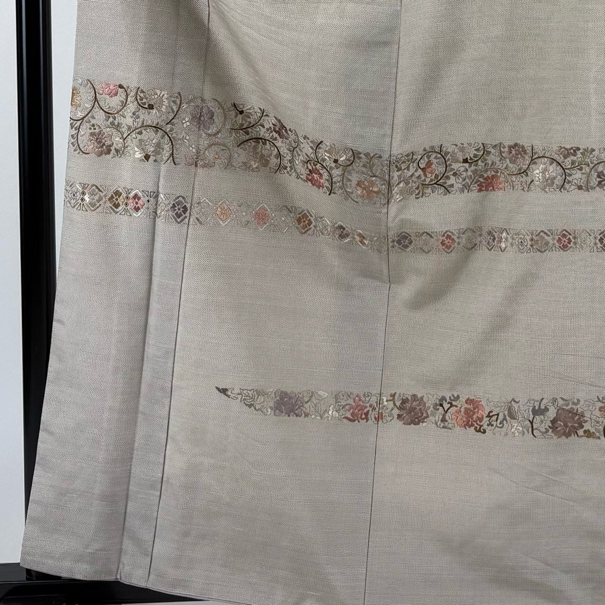 30%OFF 【美品】 訪問着 身丈155cm 裄丈62cm S 薄物 紗 草花 金糸 灰茶 正絹 秀品 K30