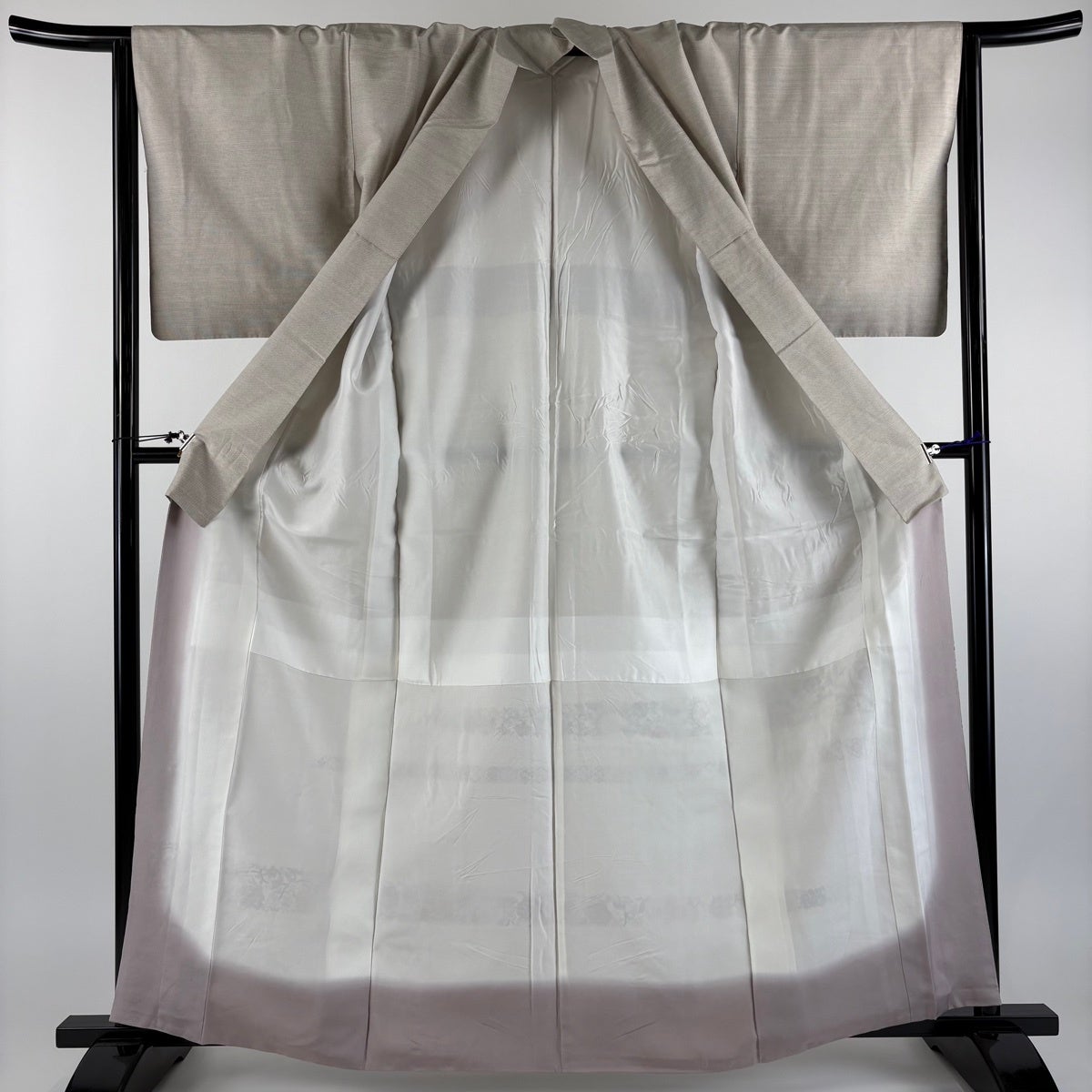 50%OFF 【美品】 小紋 身丈167cm 裄丈67cm M 袷 墨流し ぼかし 灰茶 正絹 名品 一つ紋 K50