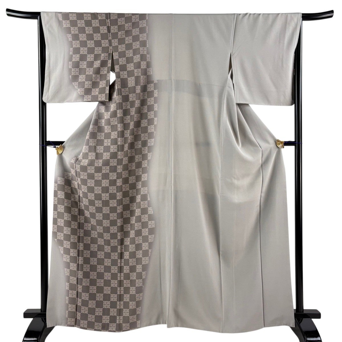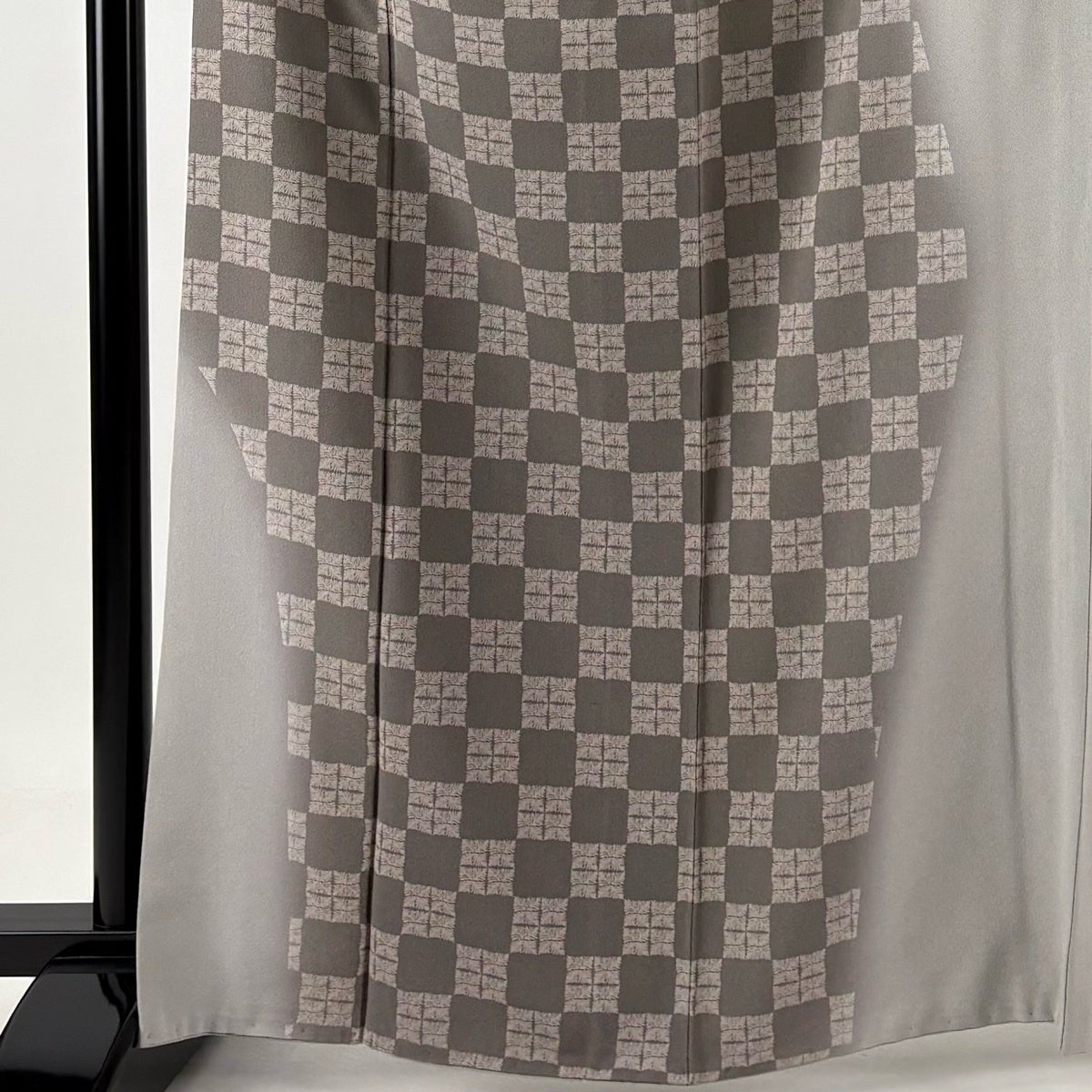 40%OFF 【美品】 道中着 身丈102cm 裄丈67.5cm L 和装コート 格子 灰茶 正絹 逸品 K30