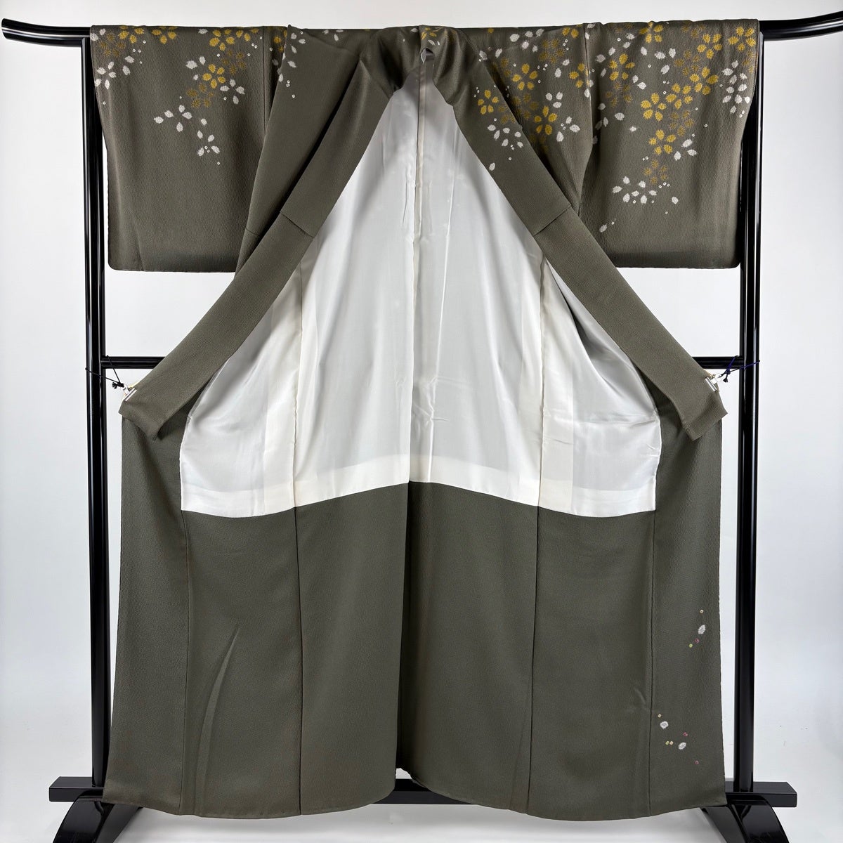 30%OFF 付下げ 身丈157cm 裄丈65.5cm M 袷 草花 生り物 刺繍 金糸 灰茶 正絹 秀品 K30