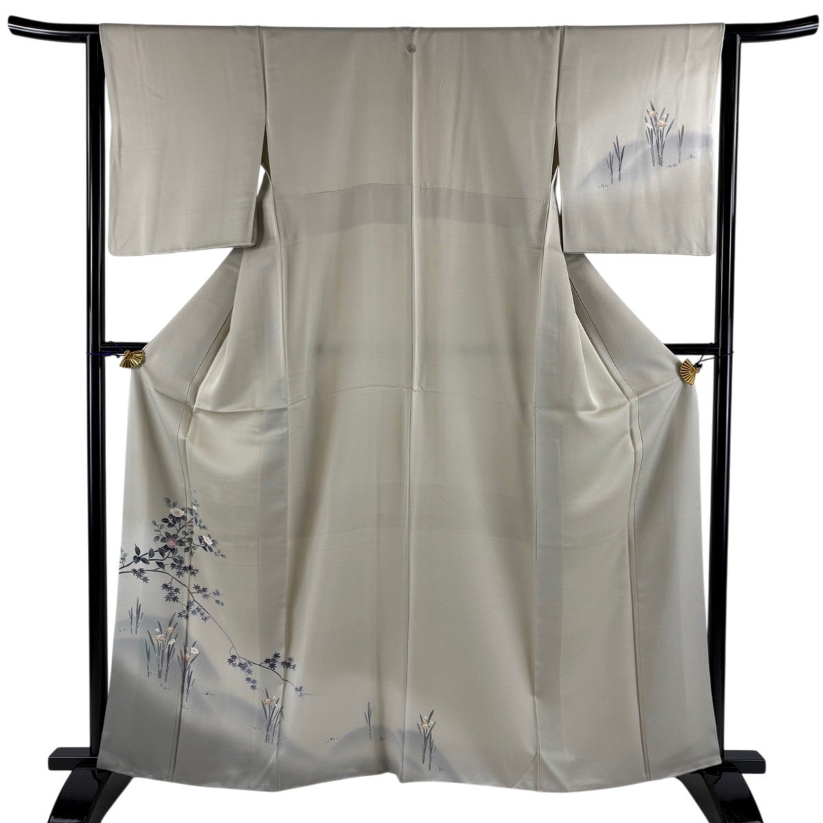 30%OFF 訪問着 身丈164.5cm 裄丈66cm M 袷 蔓帯 草花 金彩 ぼかし 灰茶 正絹 秀品 K30