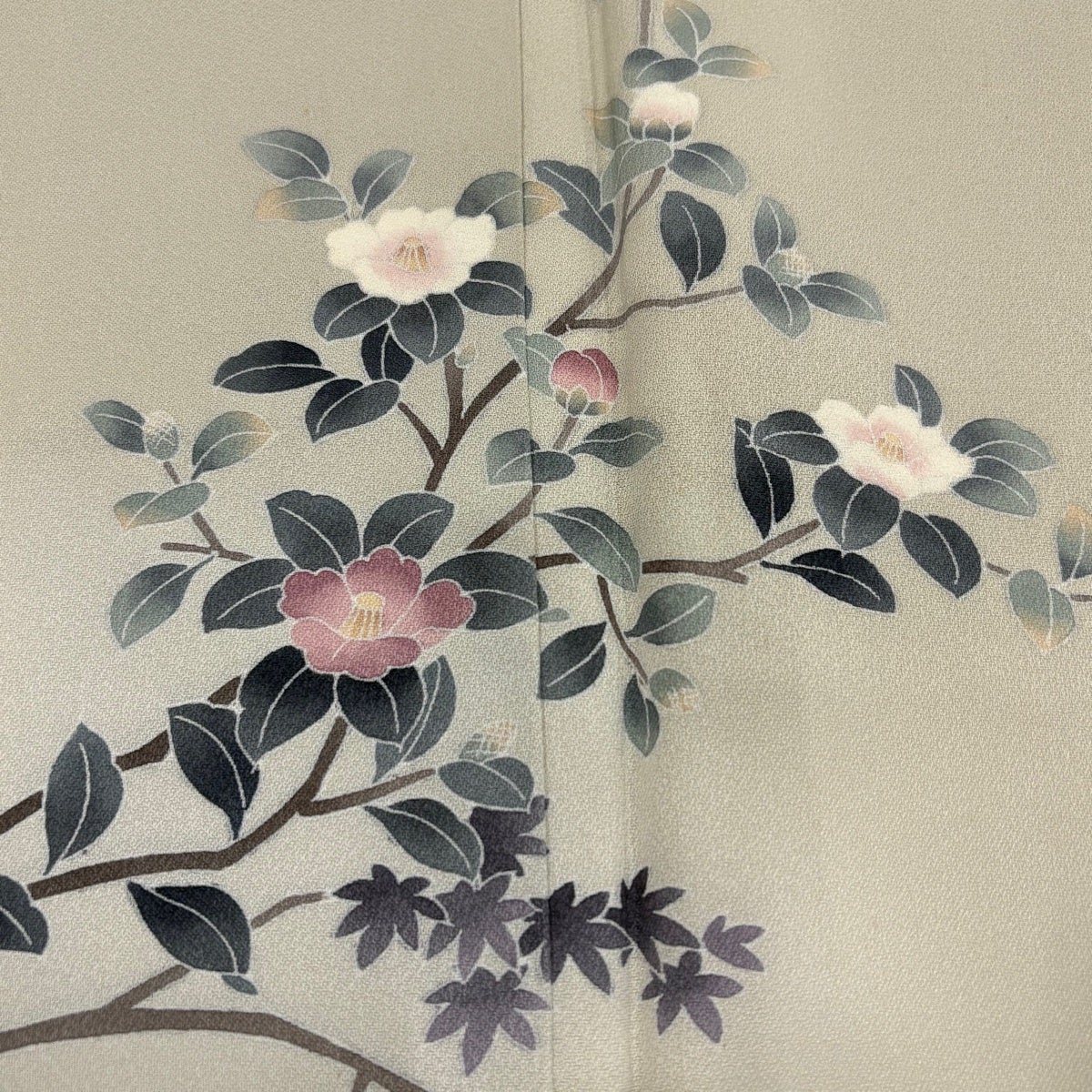 30%OFF 付下げ 身丈162cm 裄丈64.5cm M 袷 椿 水仙 ぼかし 灰茶 正絹 秀品 一つ紋 K30
