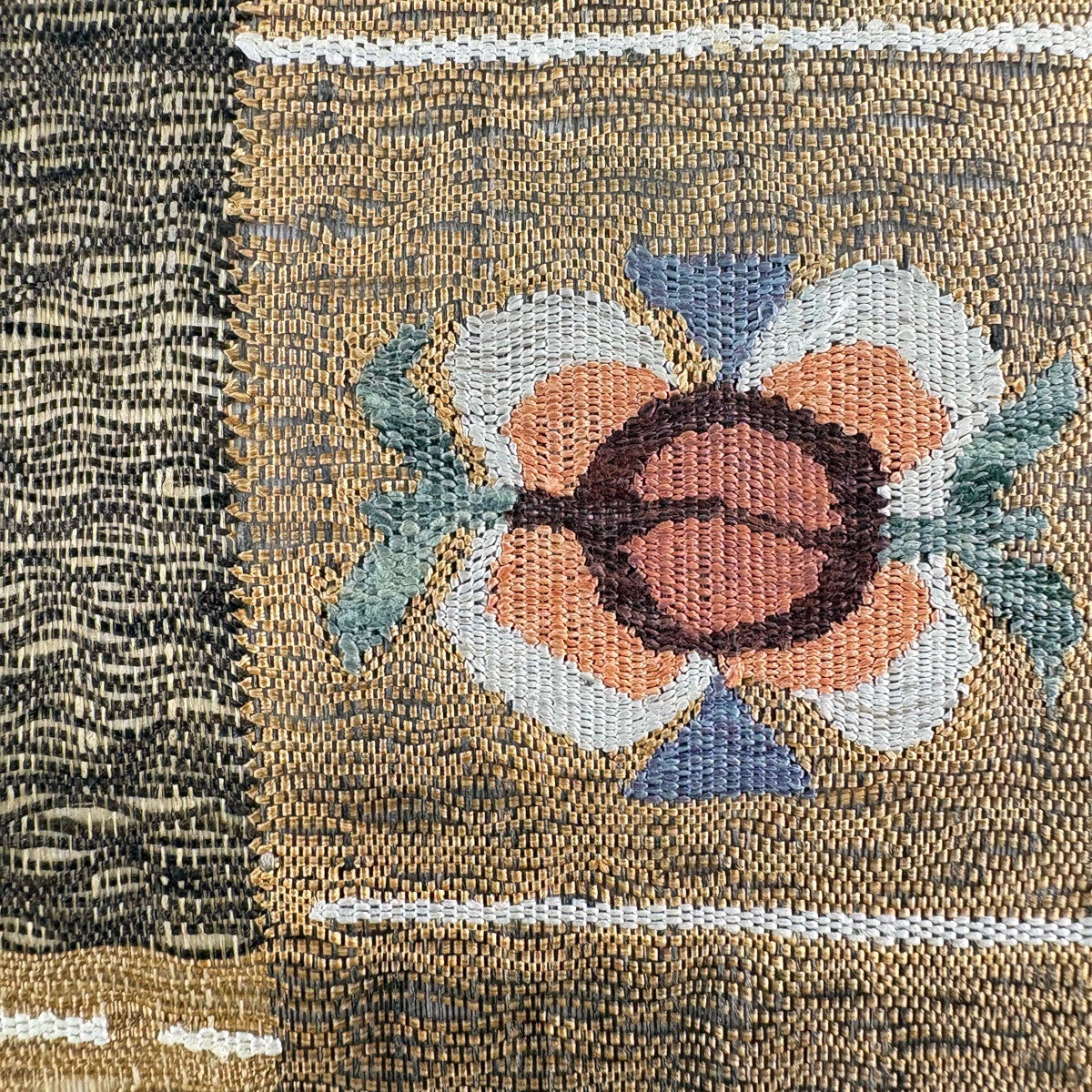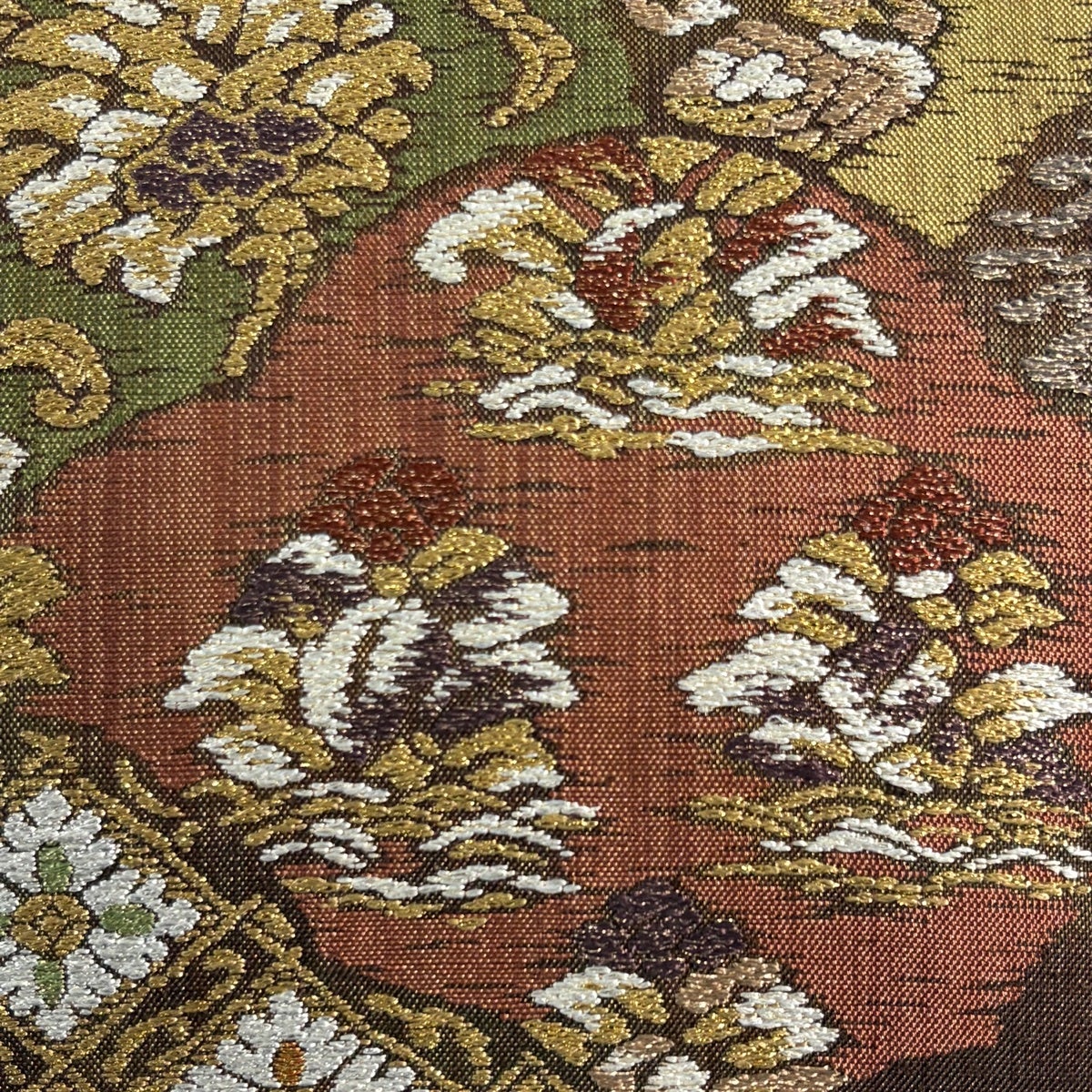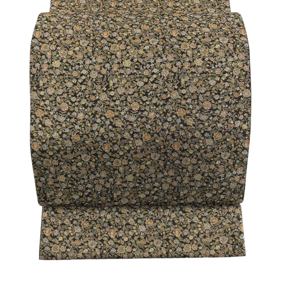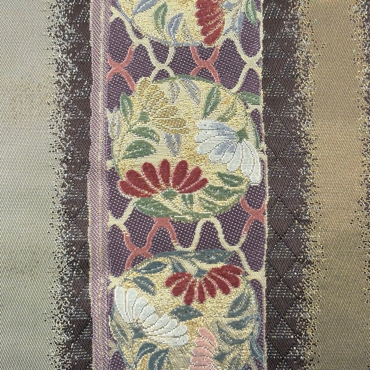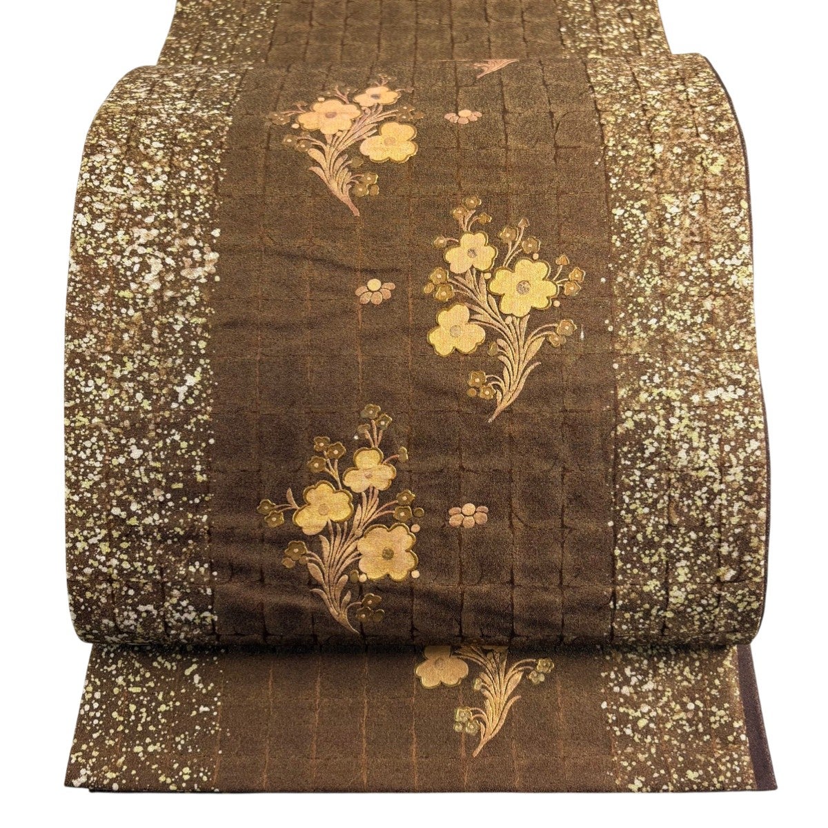 【美品】 袋帯 秀品 華文 草花 金糸 箔 焦茶色 六通 正絹