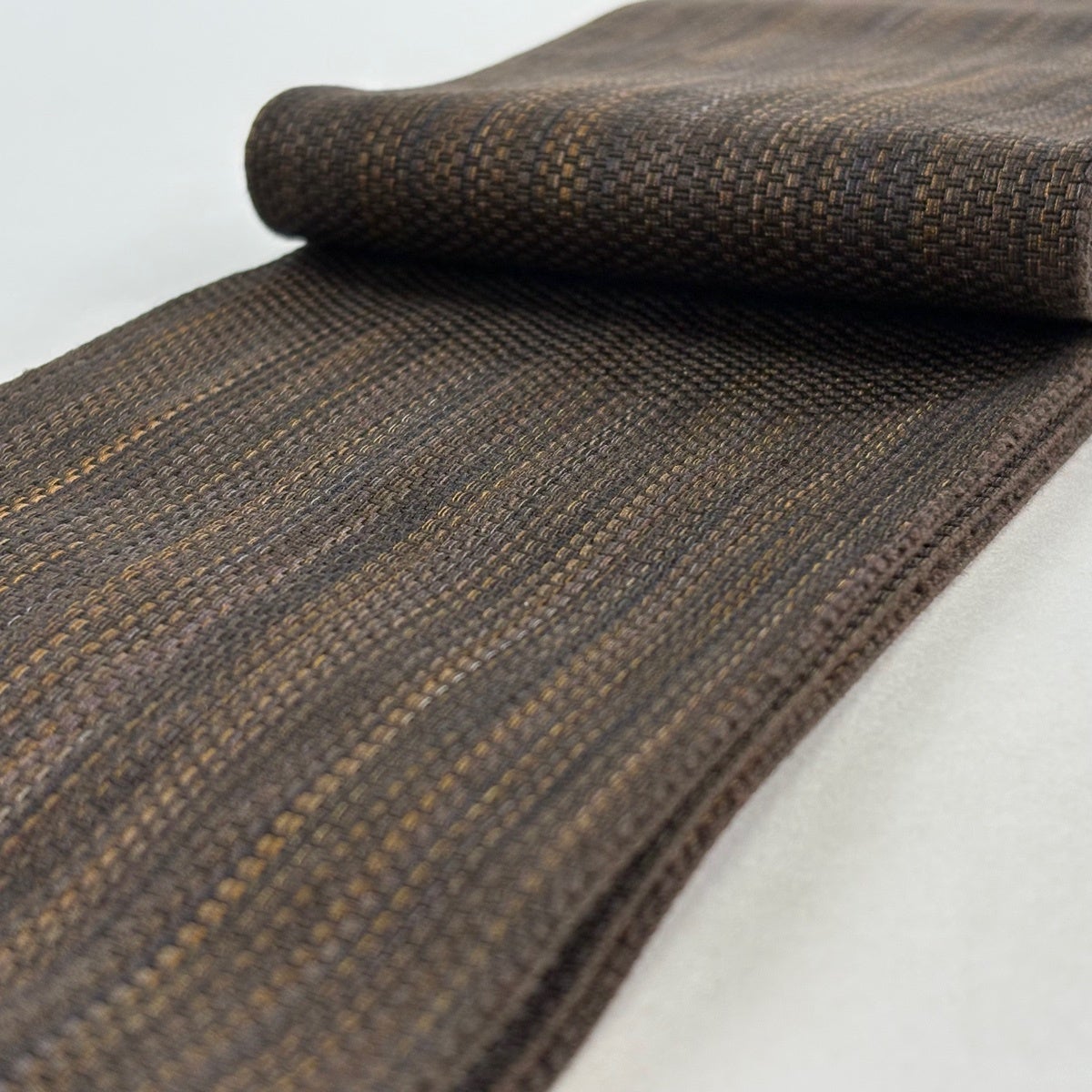 【美品】 名古屋帯 秀品 夏帯 八寸名古屋帯 紬地 霞 焦茶色 正絹