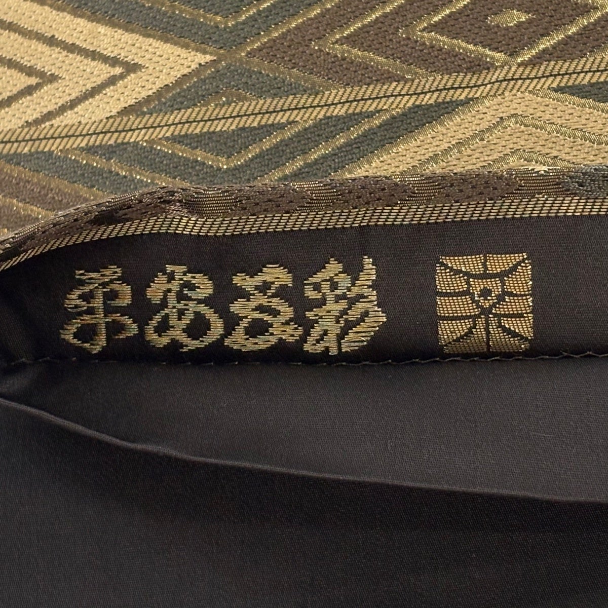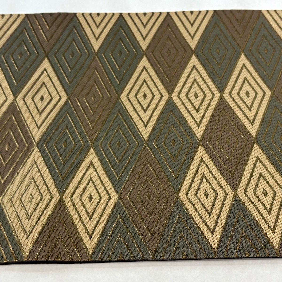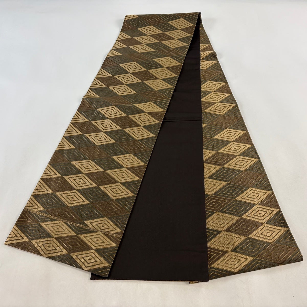 【美品】 袋帯 秀品 幾何学 金糸 箔 焦茶色 お太鼓柄 正絹