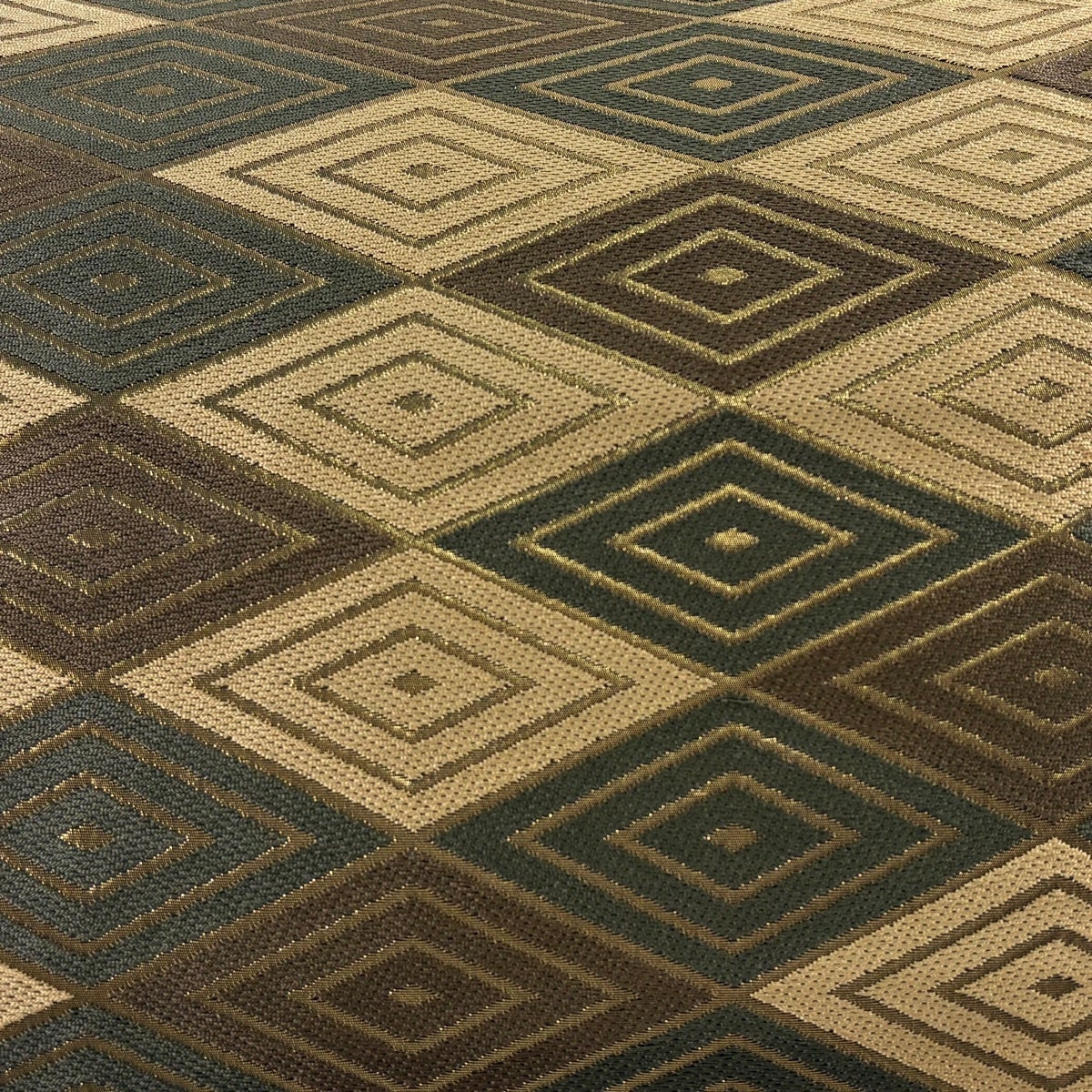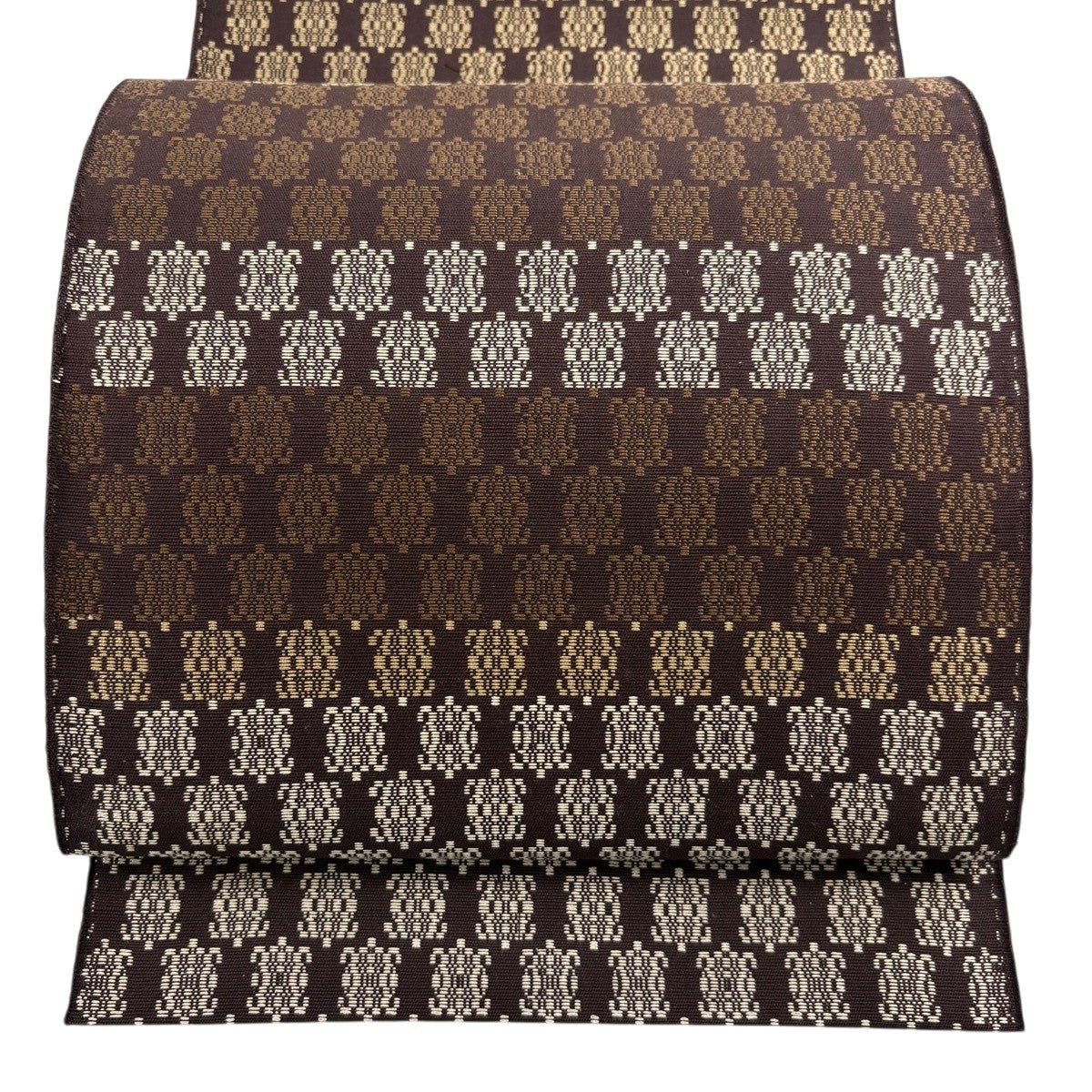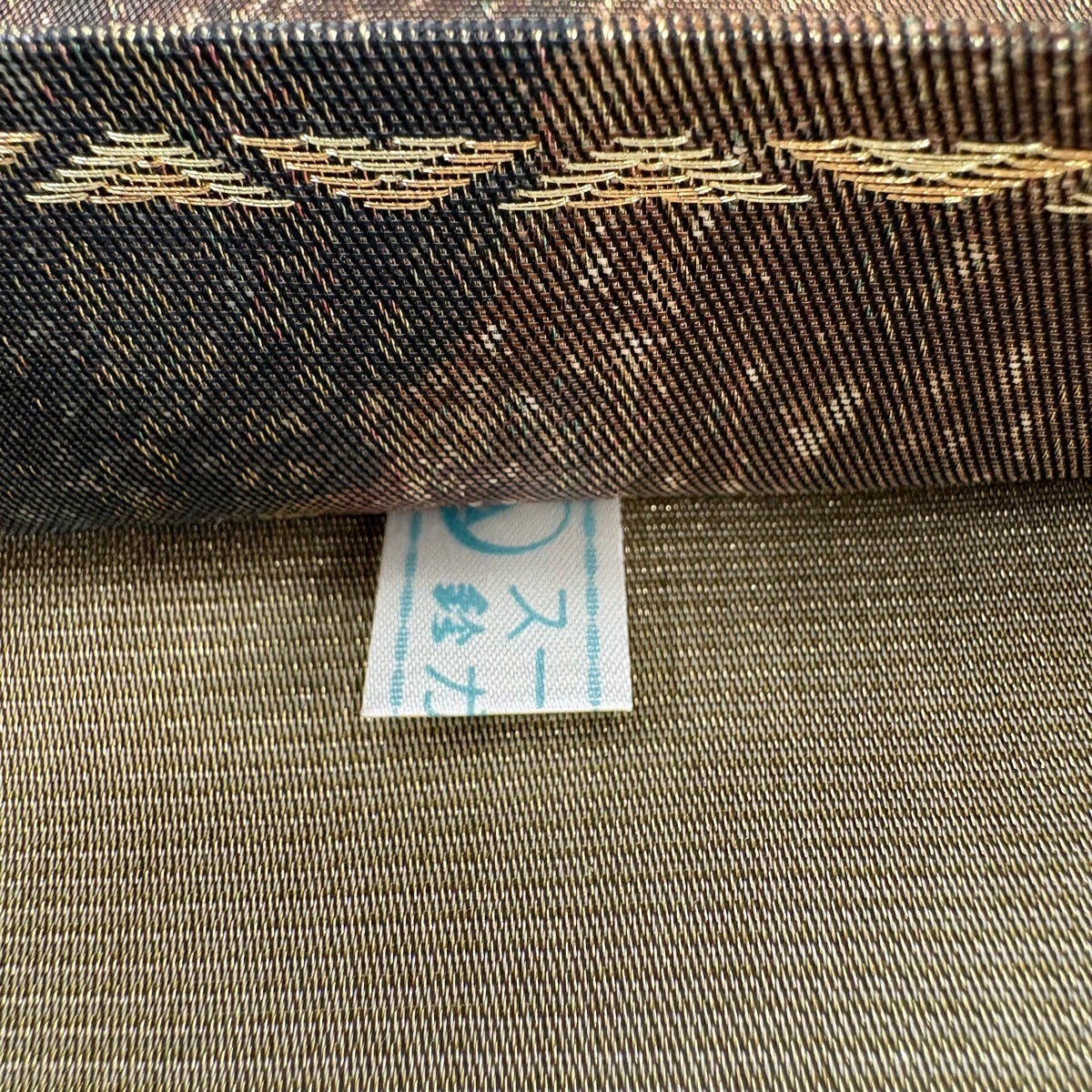 【美品】 袋帯 秀品 幾何学 金糸 箔 焦茶色 お太鼓柄 正絹
