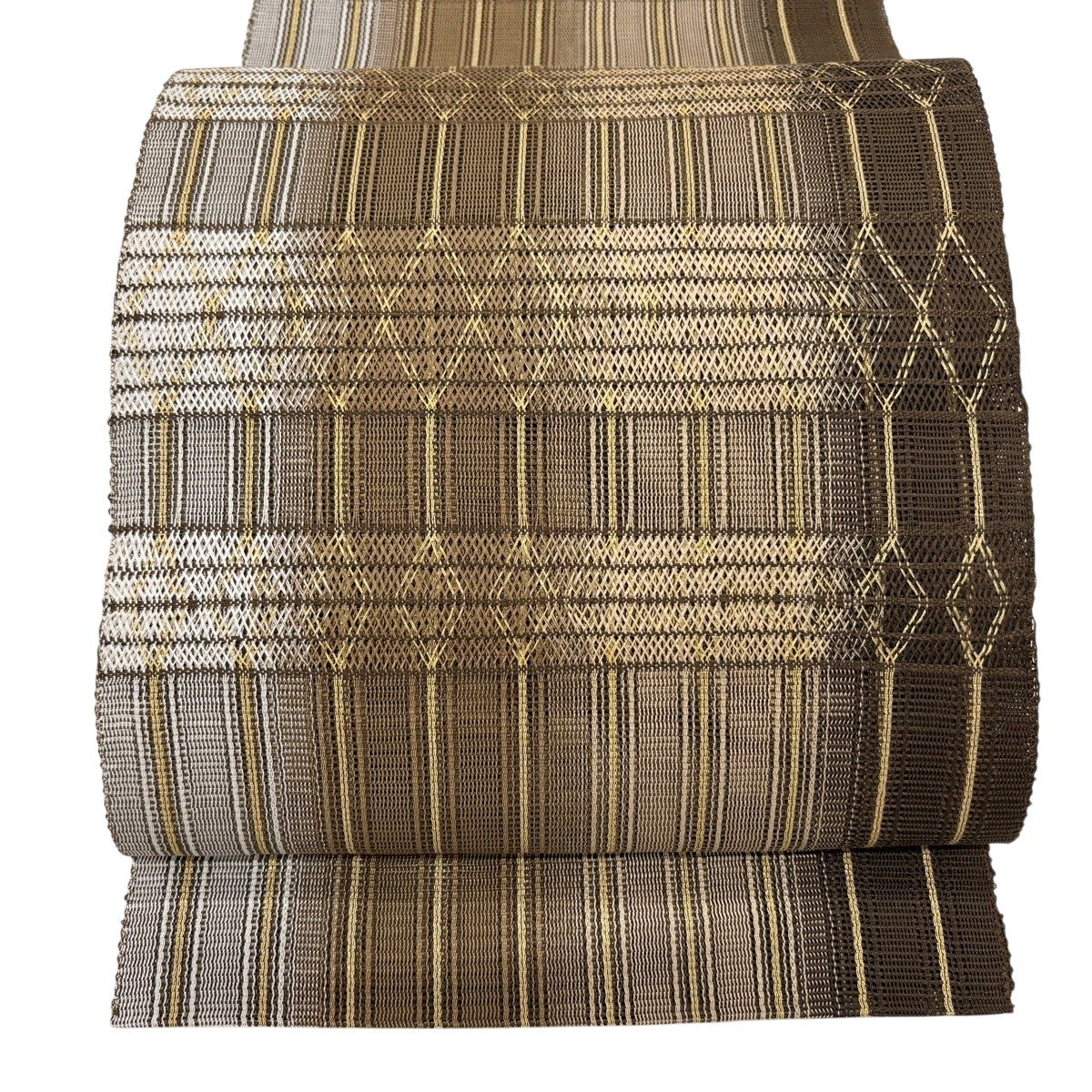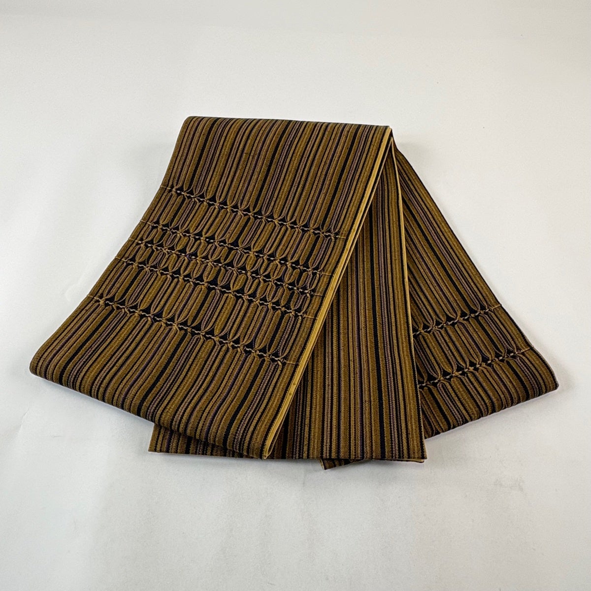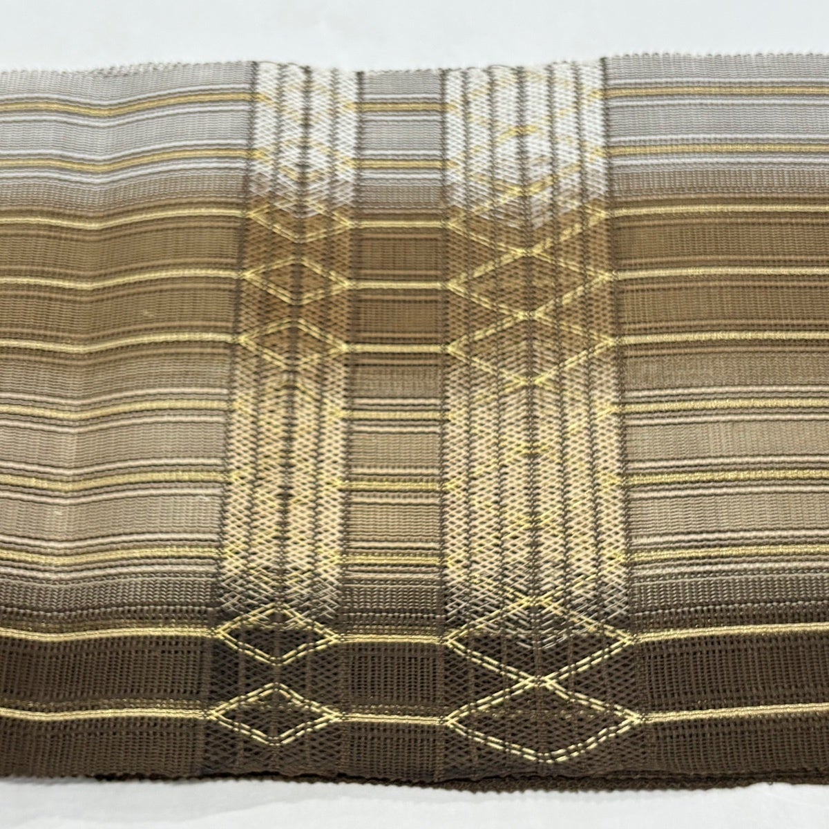 【美品】 袋帯 秀品 幾何学模様 縞 焦茶色 お太鼓柄 正絹